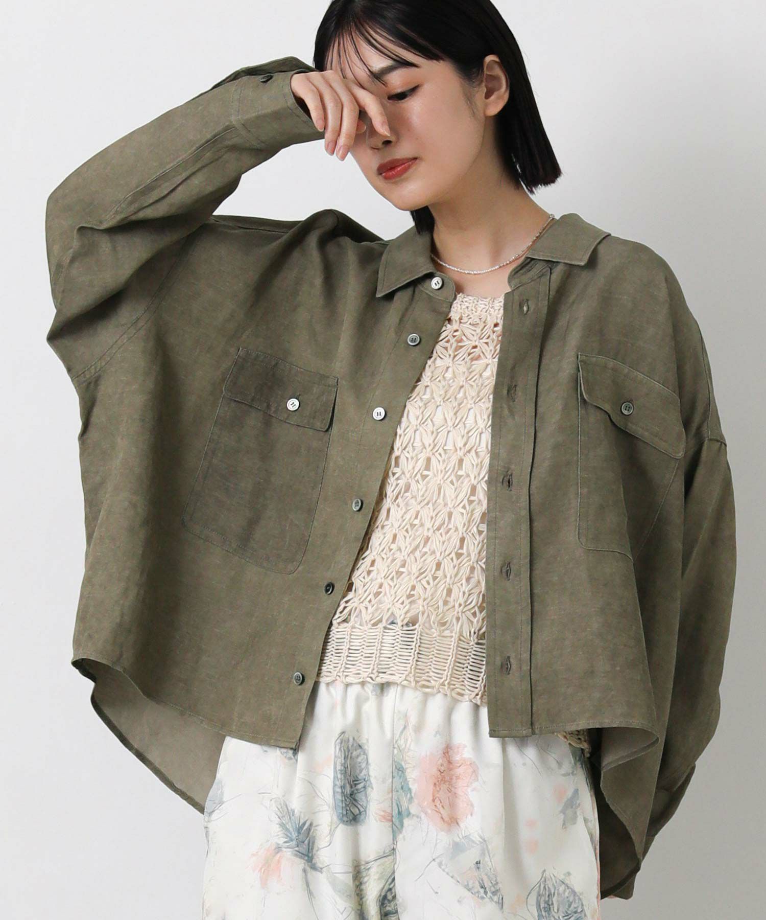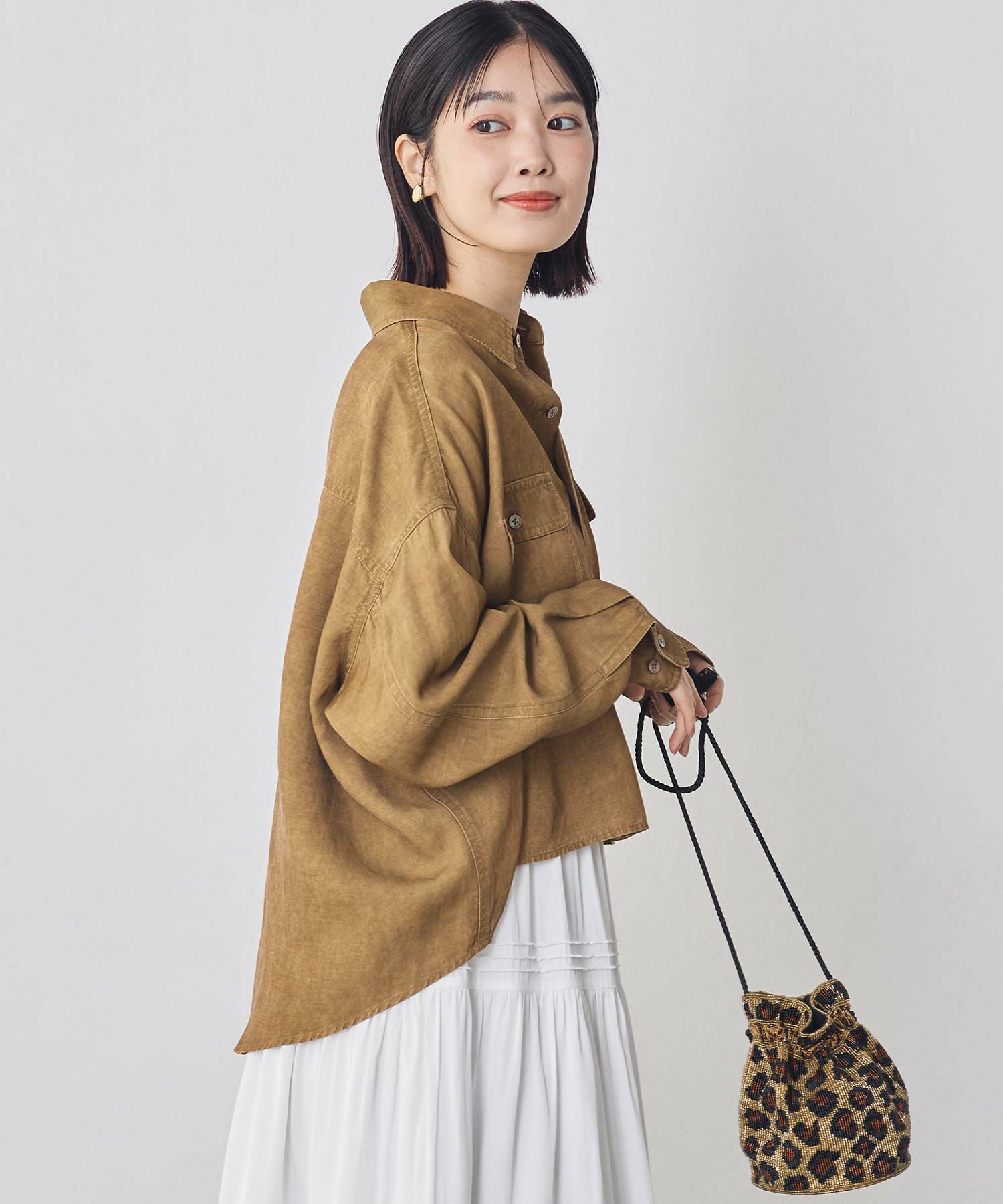 同素材の顔料染めバイアスフレアスカート(OEO1034425002)とのセットアップでの着こなしもオススメ。