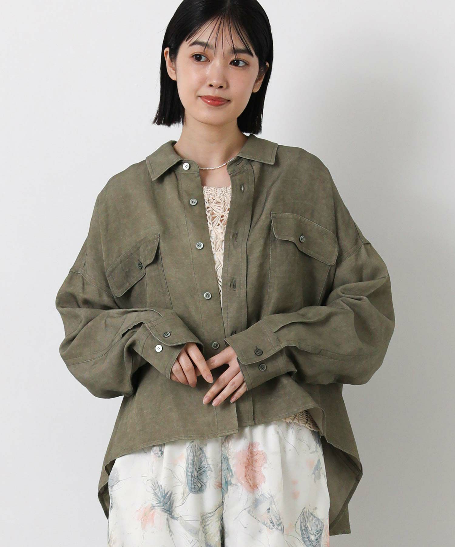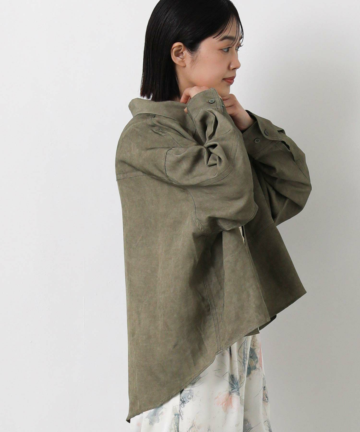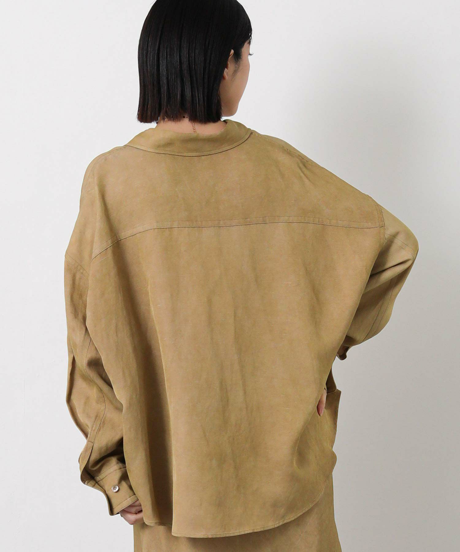 落ち感のある生地に顔料染めのカジュアルな加工を施すことで、エレガントさがありながらも大人のカジュアル感のある雰囲気に仕上がっています。
