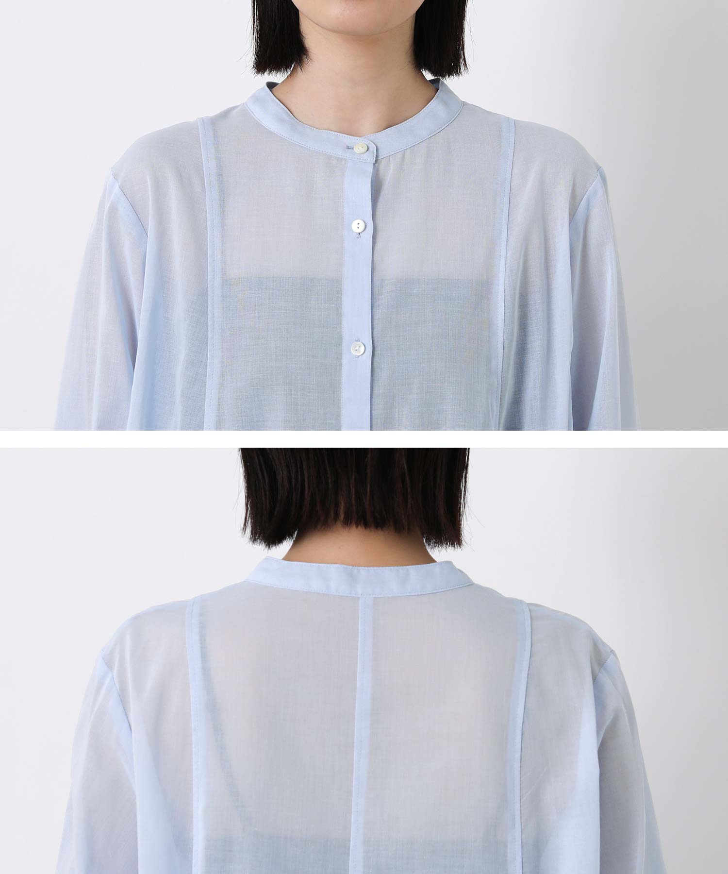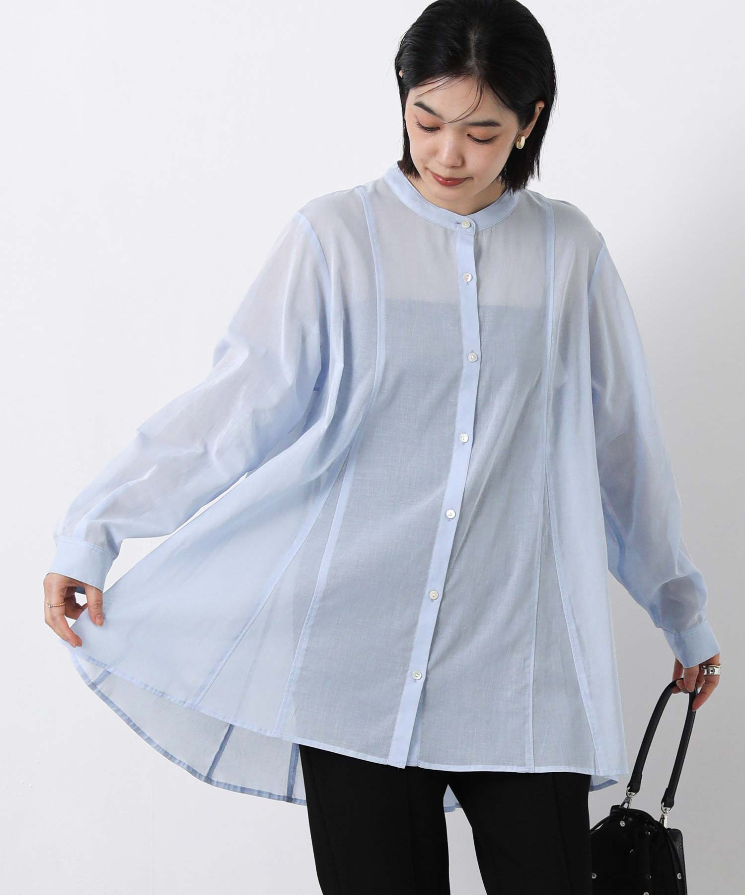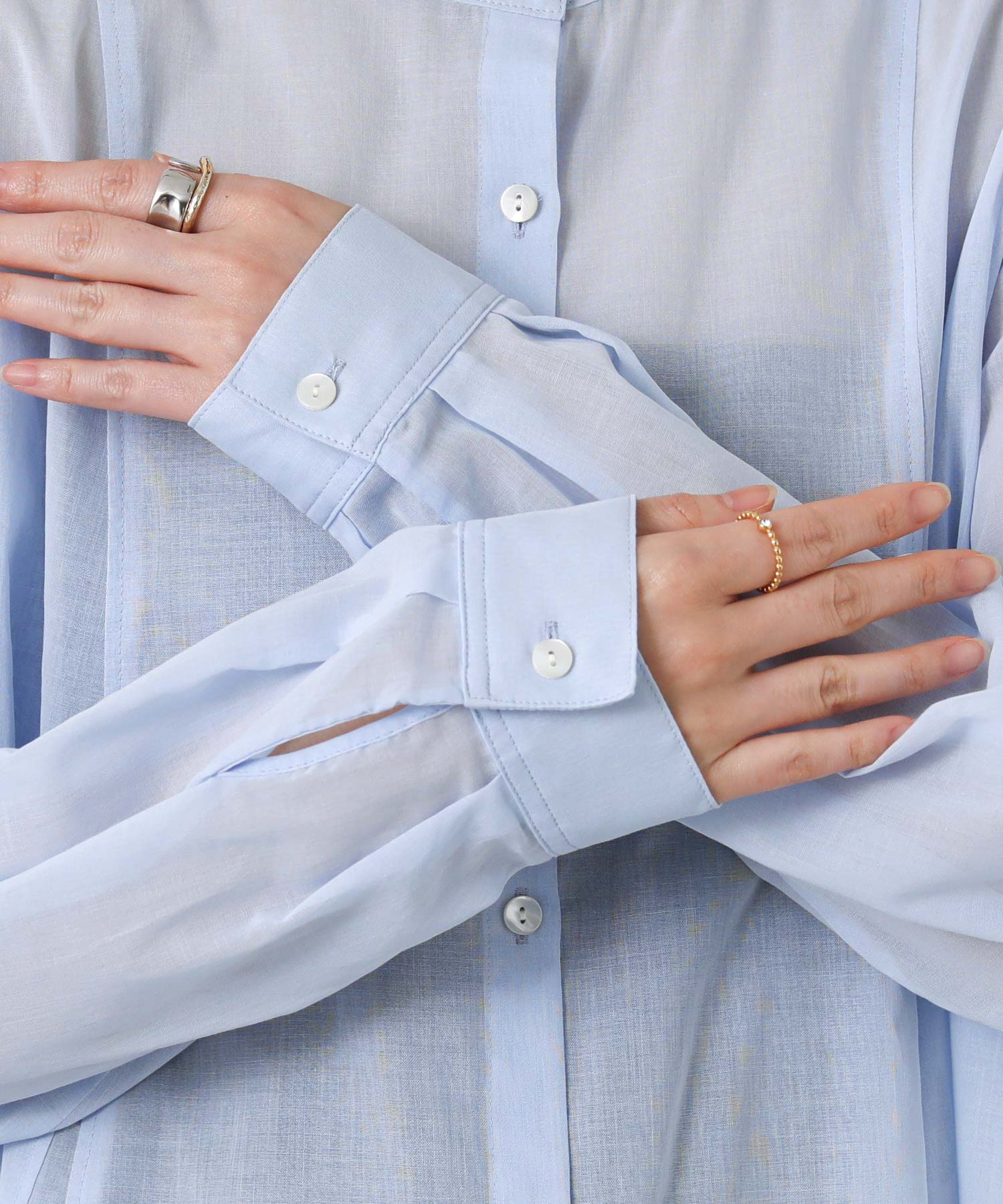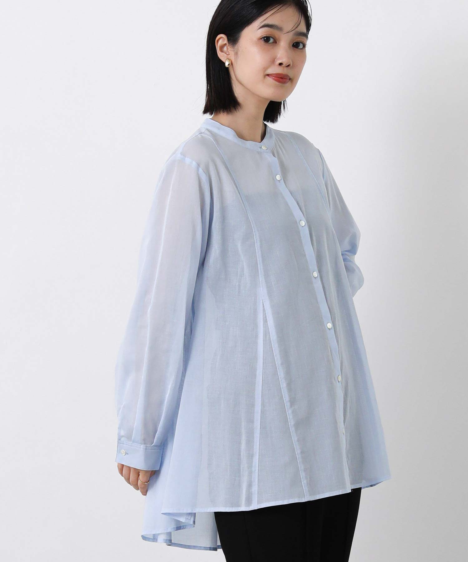 さらりとした肌触りが心地の良い綿ボイル素材のシアーシャツ。