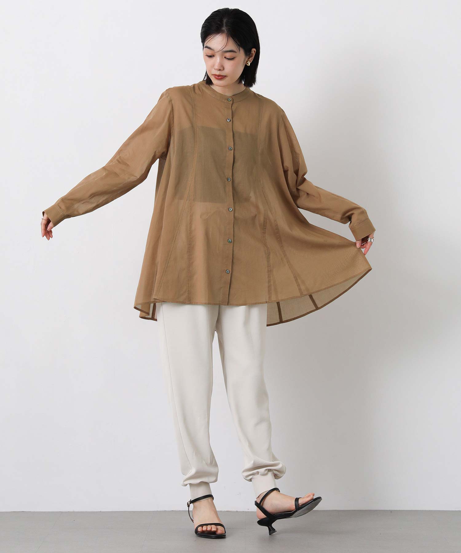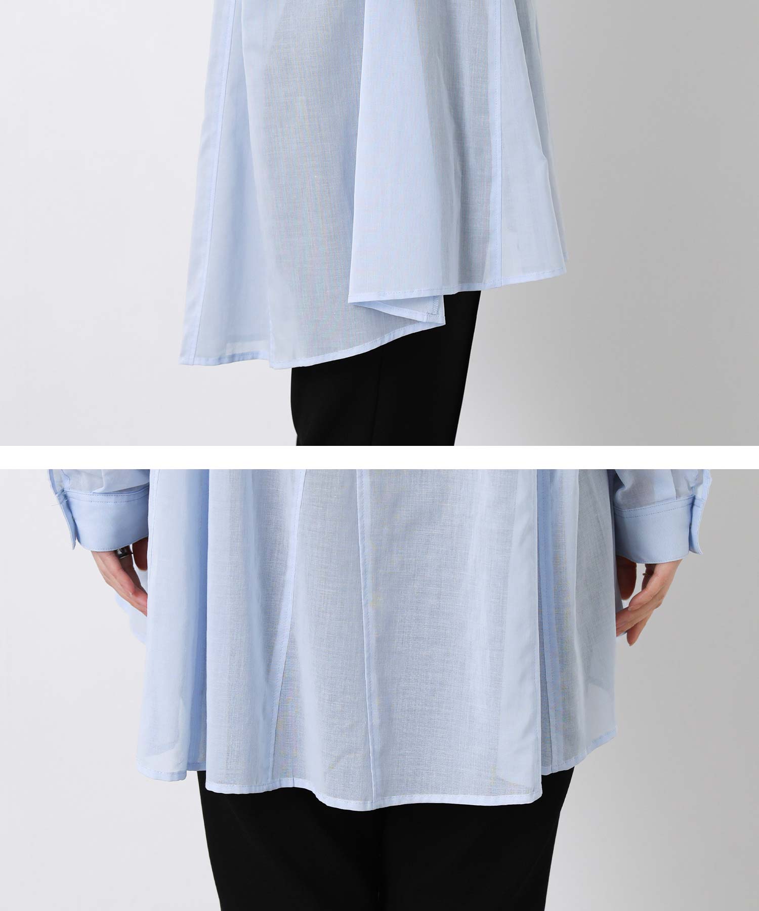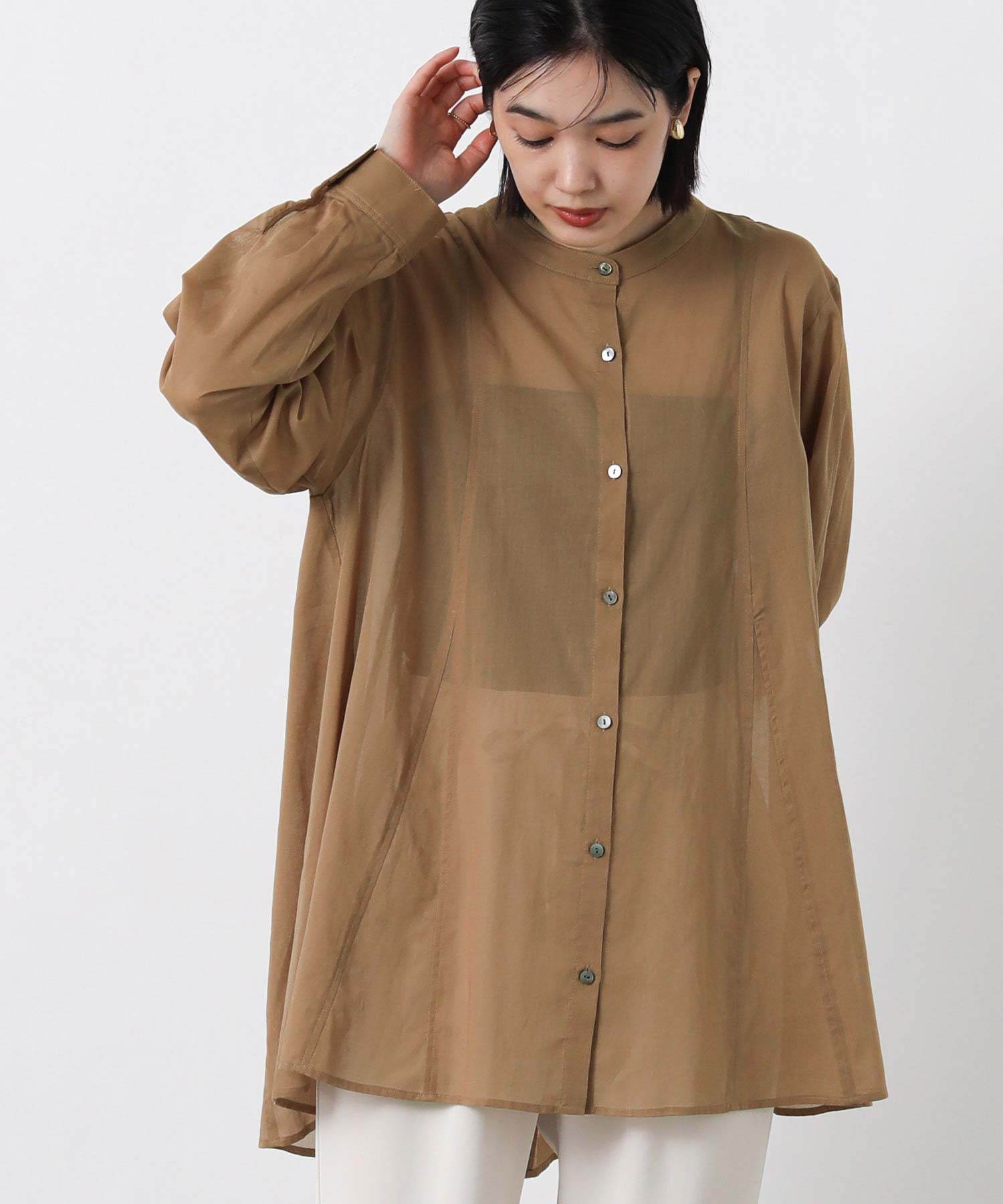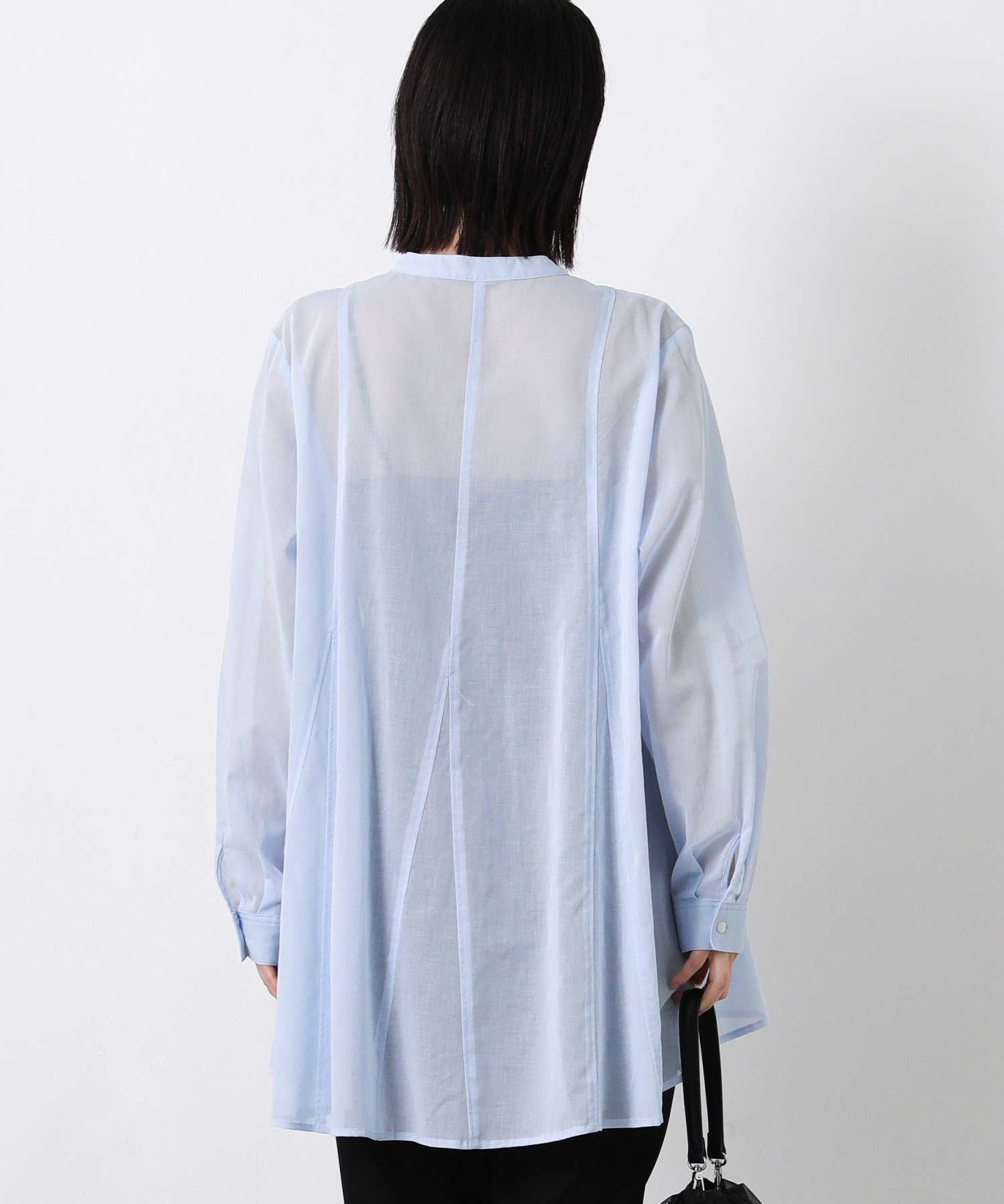 さらりとした肌触りが心地の良い綿ボイル素材のシアーシャツ。