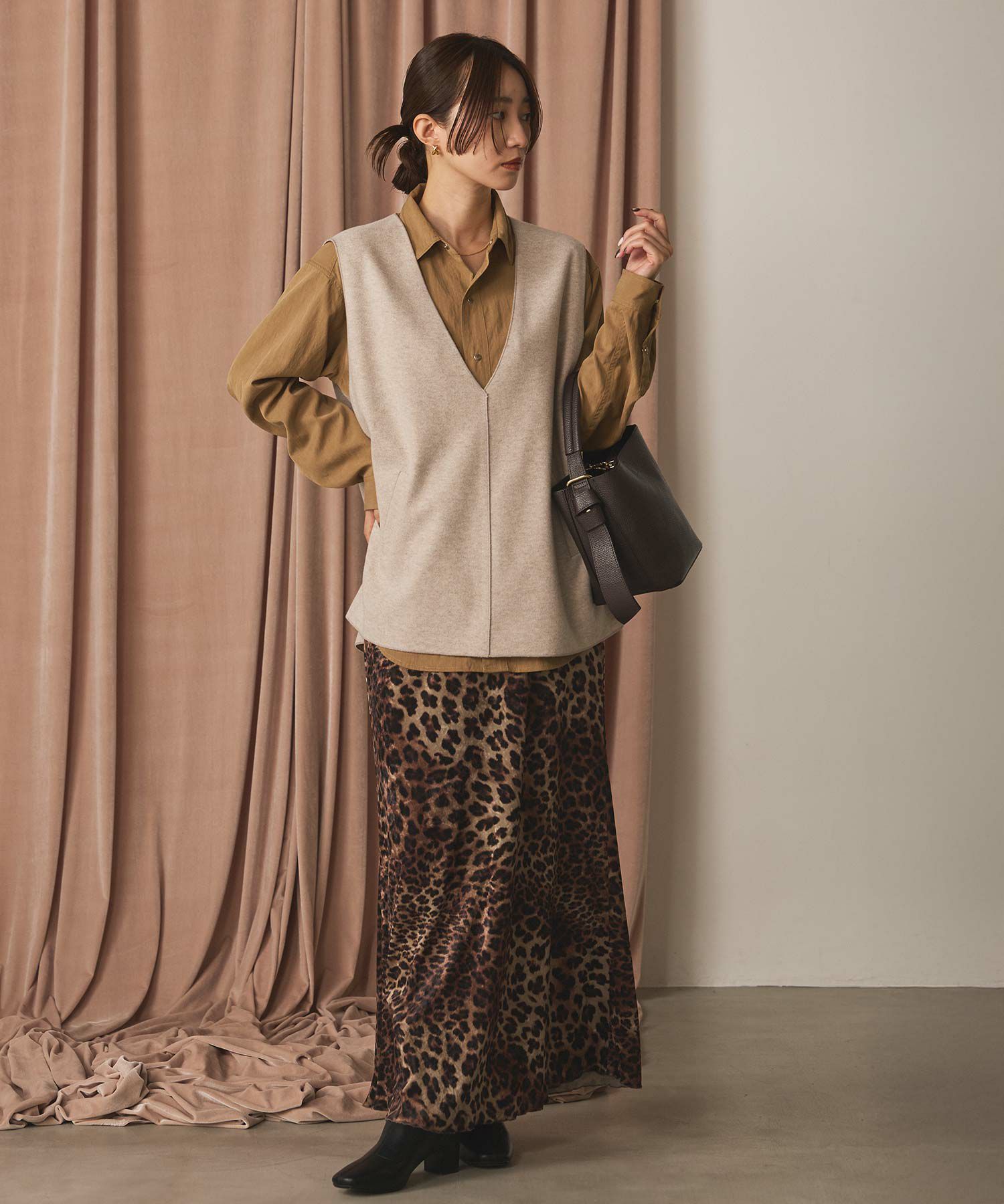 スタイリングにメリハリをつけてくれるベスト。