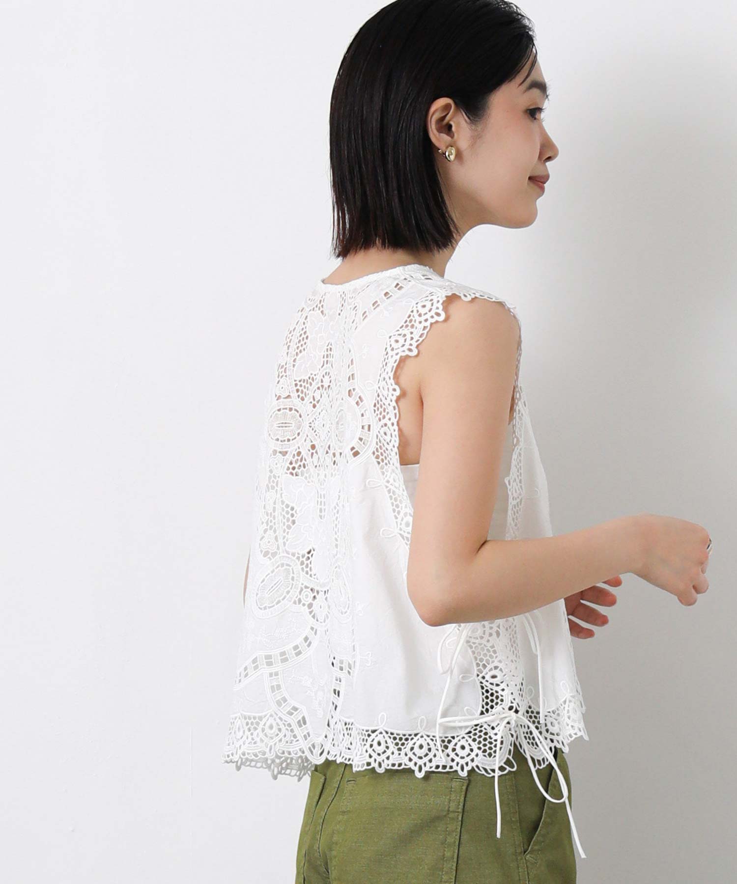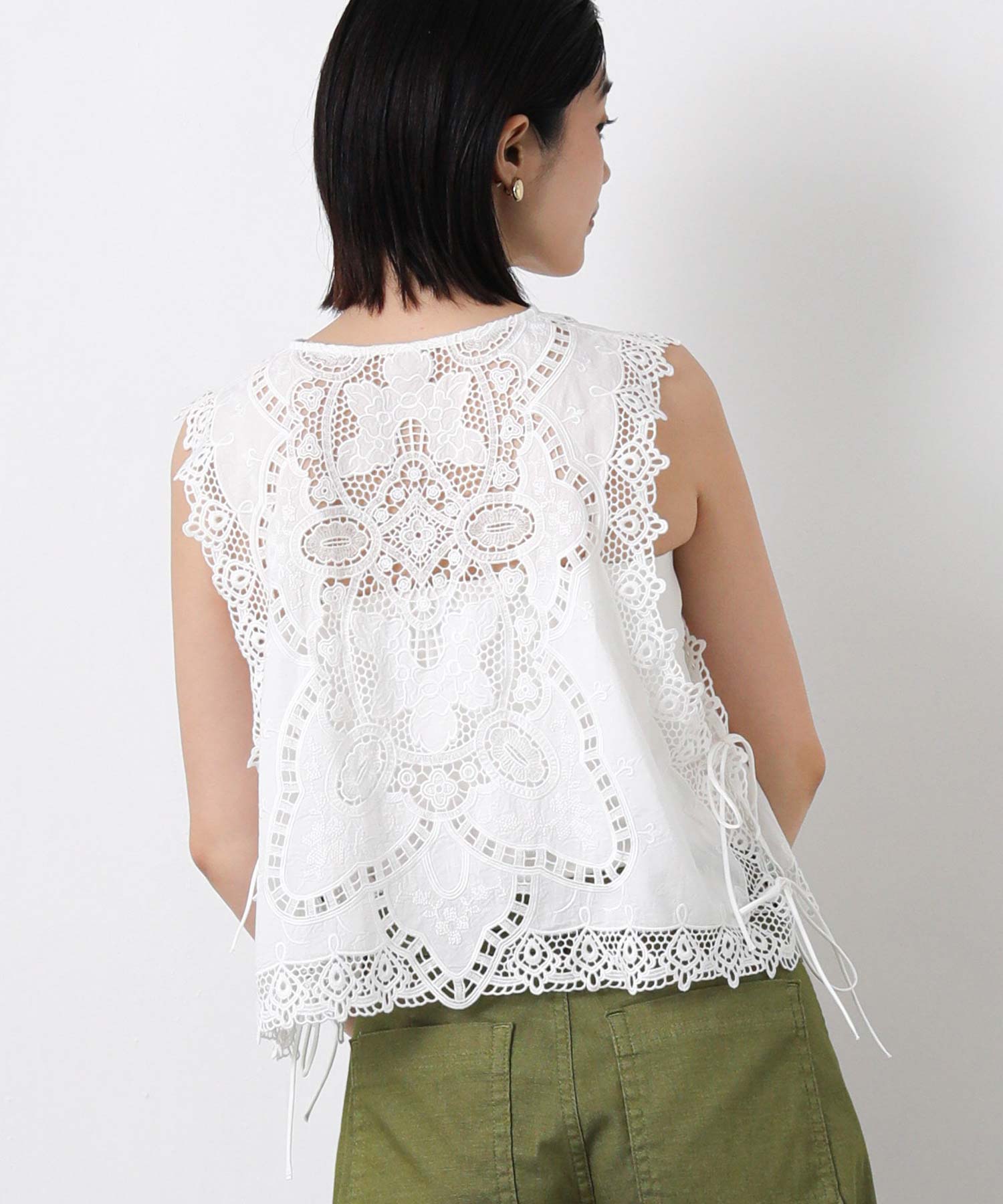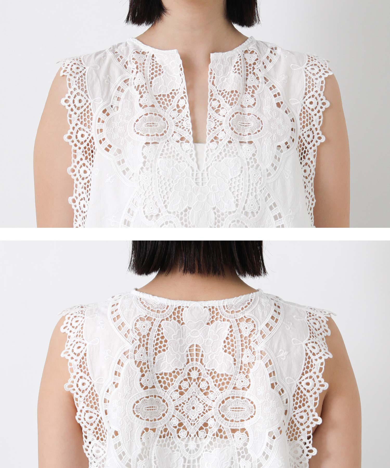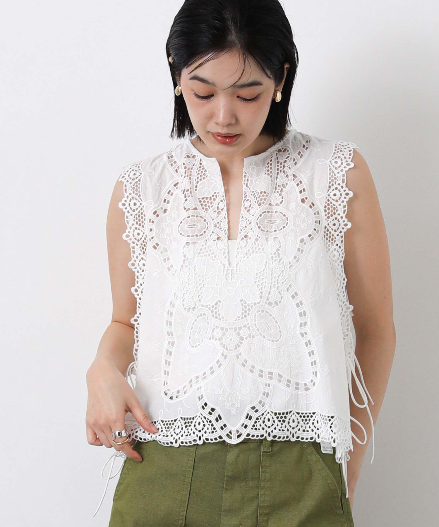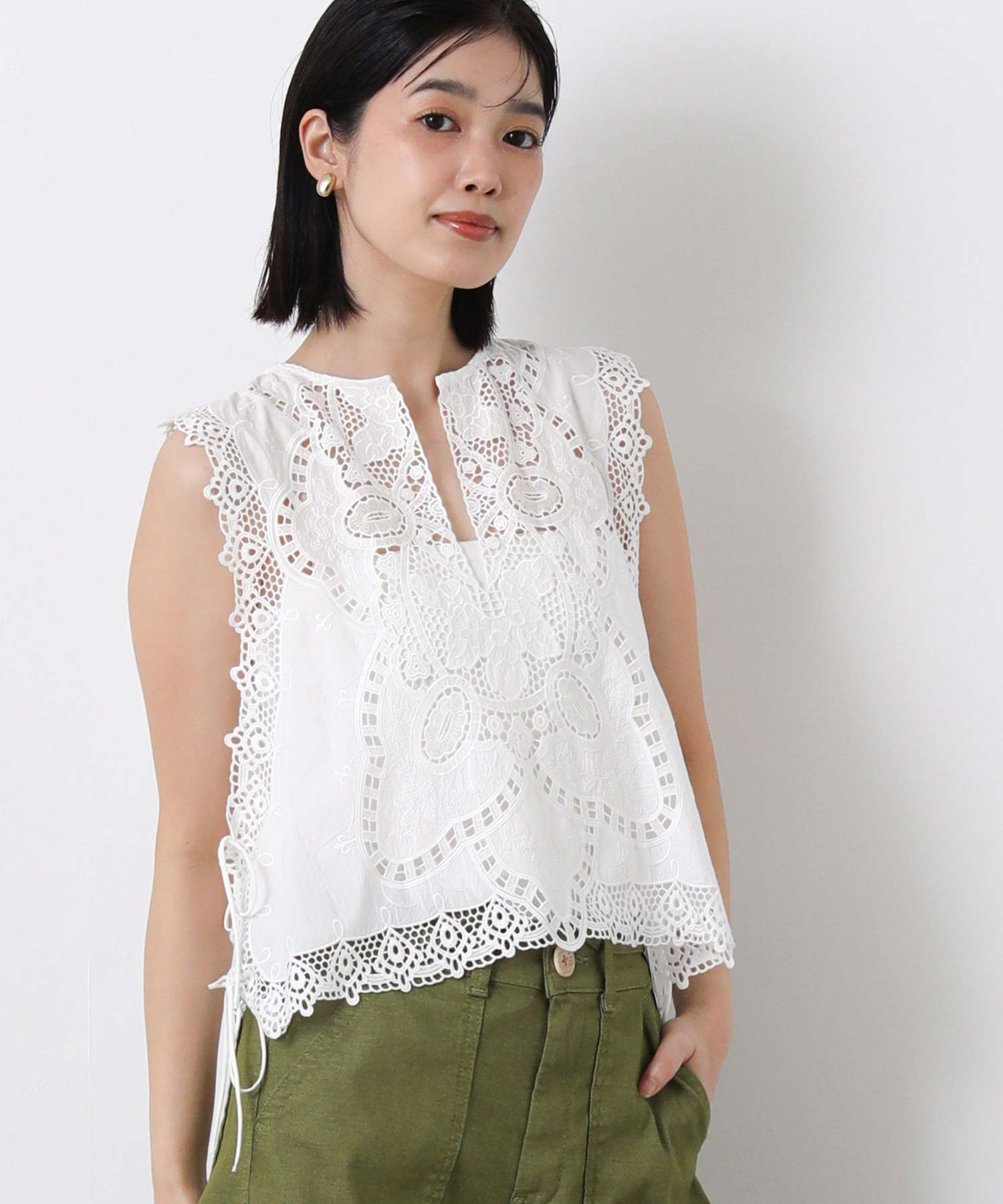 綿レースキーネックノースリーブブラウス