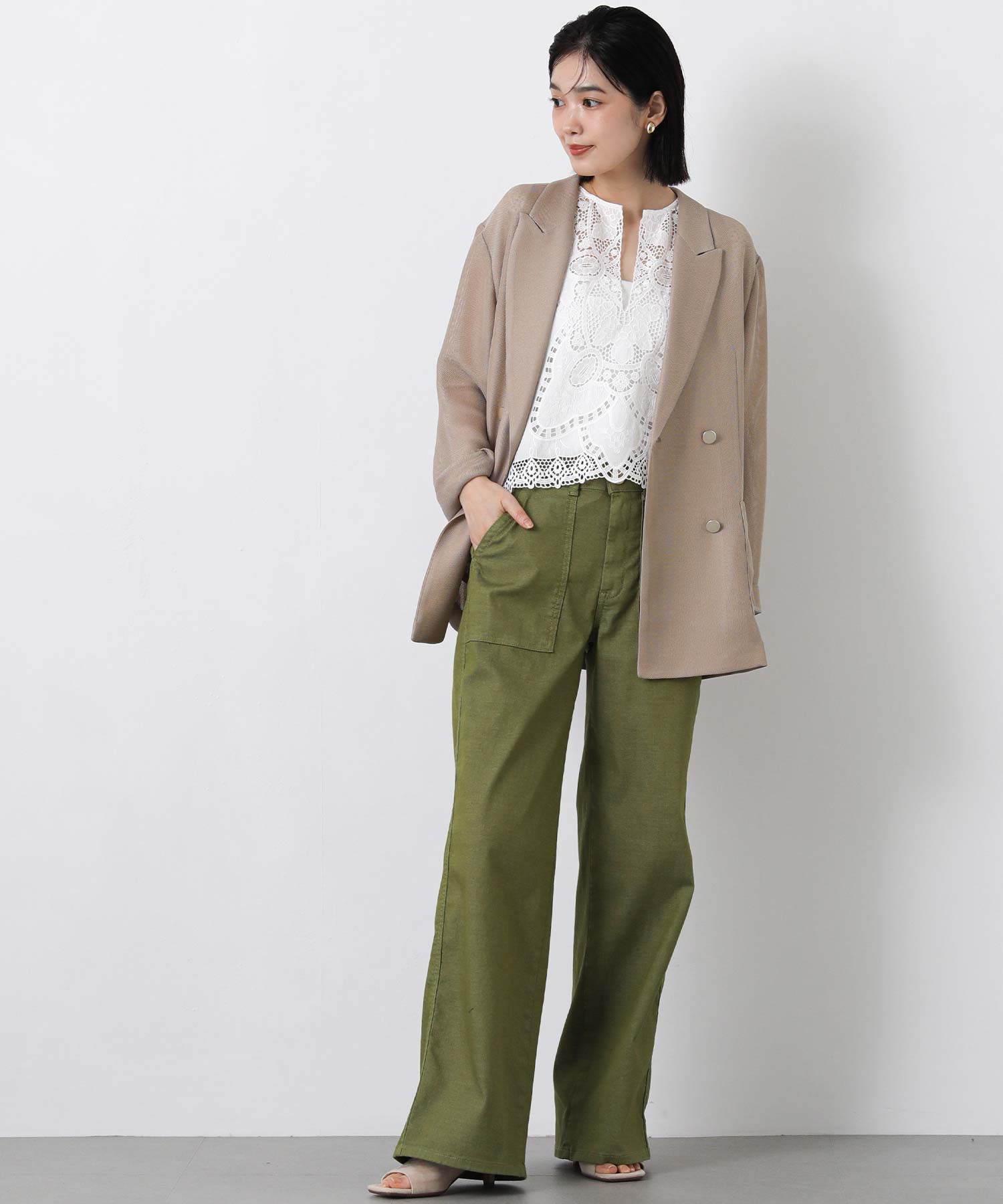 ※着用画像は撮影状況、光の当たり具合で色みが違って見える場合がございます。実際の色みについては、画像一覧の最後に掲載している詳細画像をご参照ください。