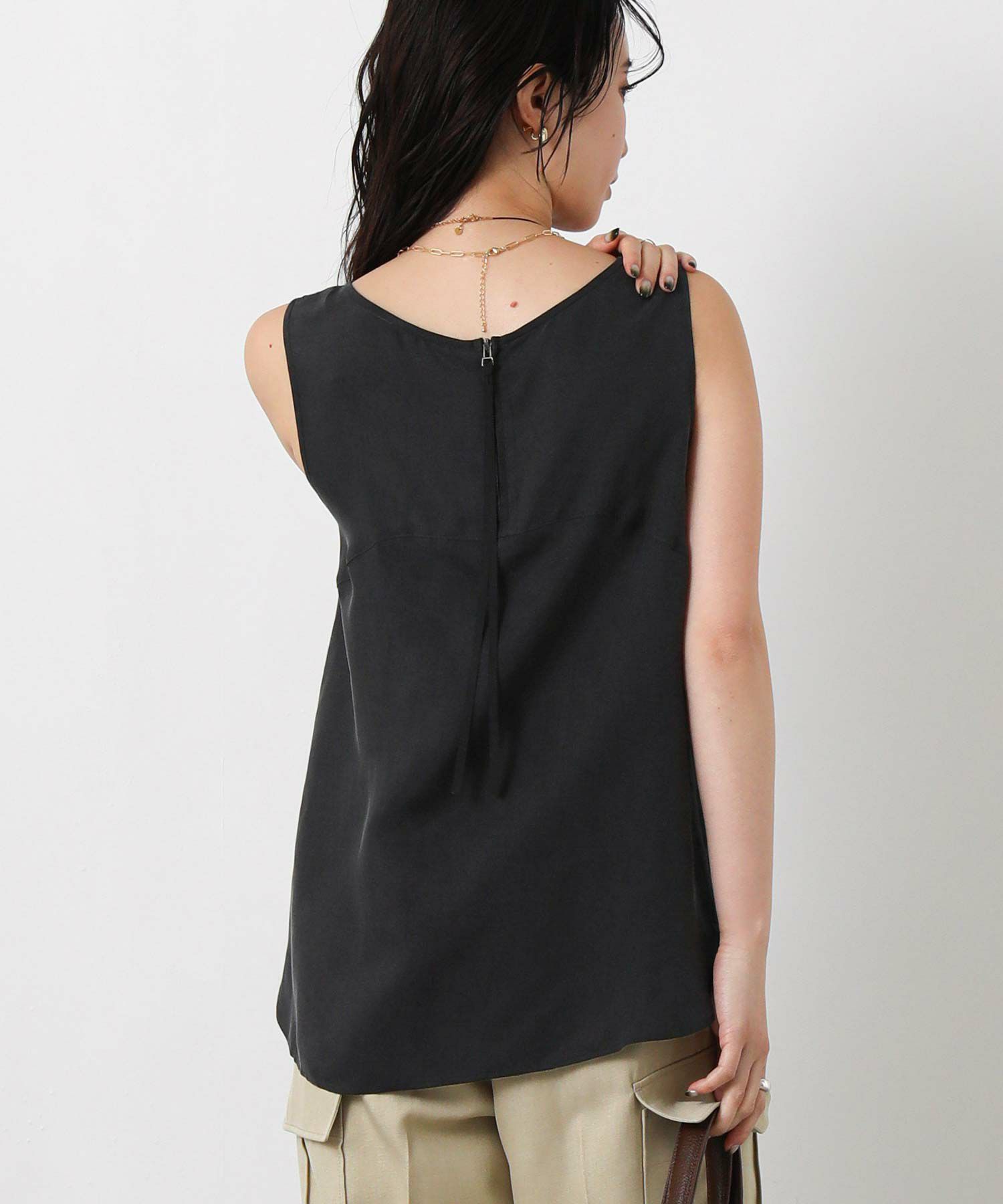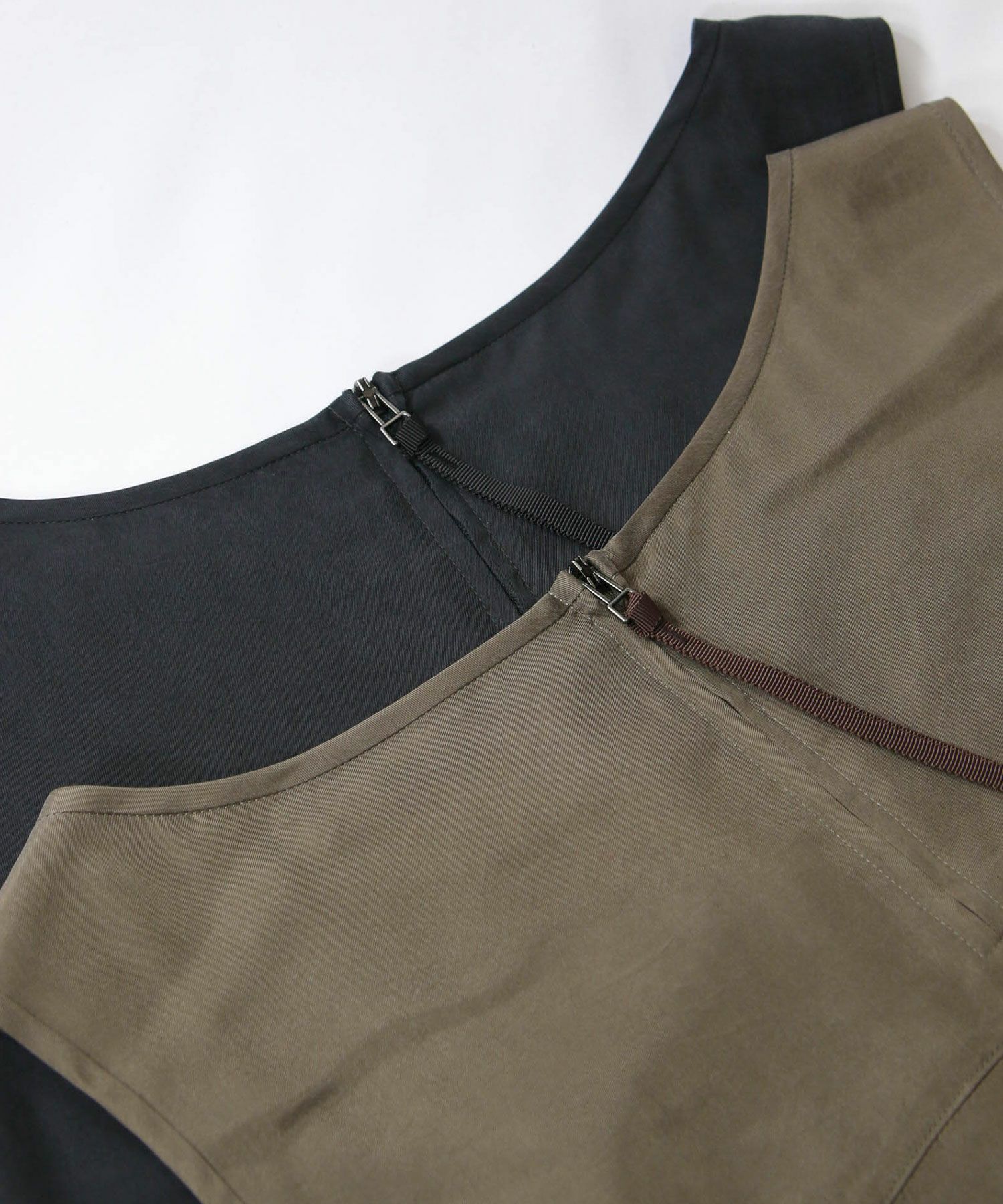 ジャケットのインナーとしてはもちろん、暑くなったら1枚着としても着れるようワンポイントにバックファスナーを施しました。