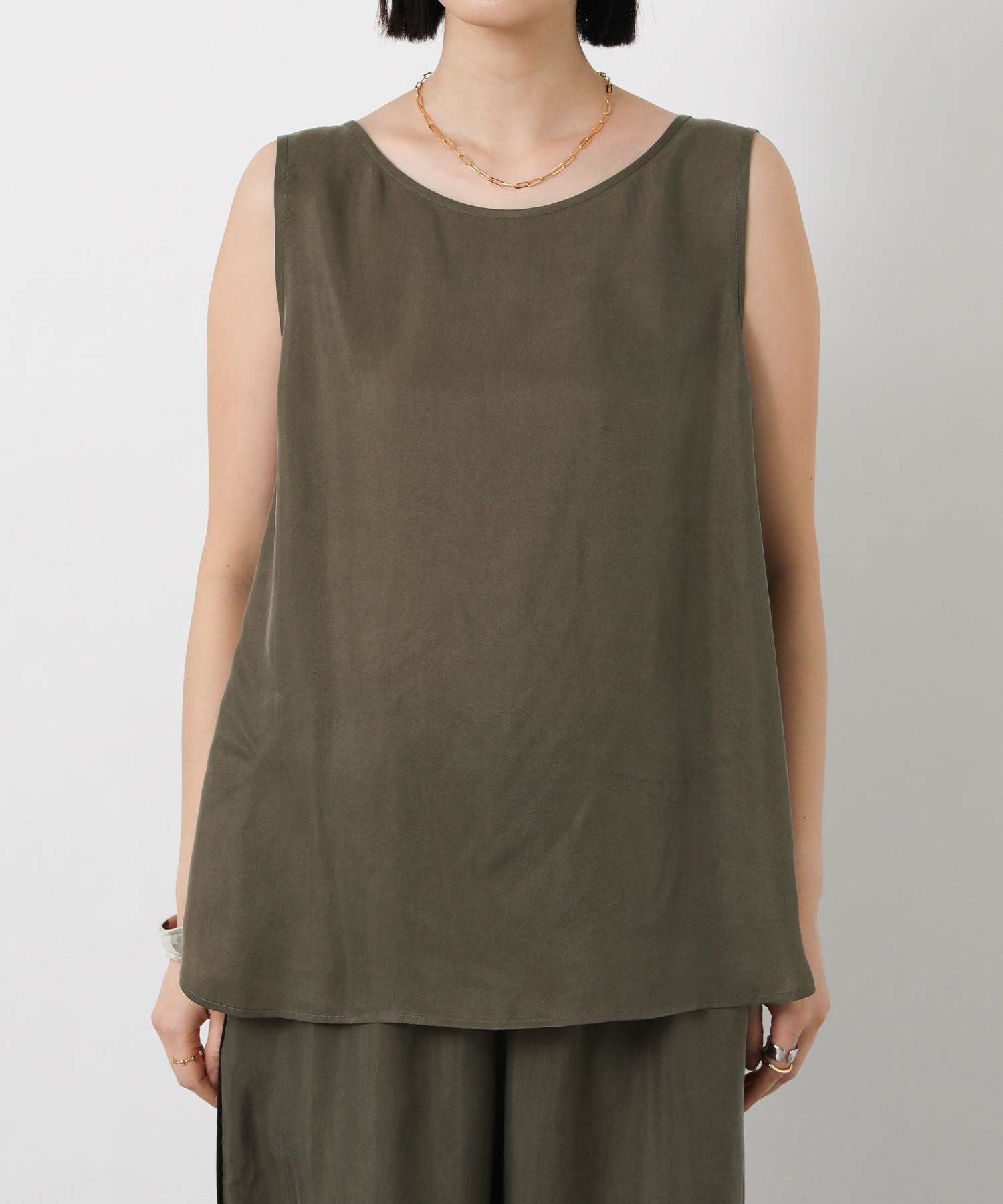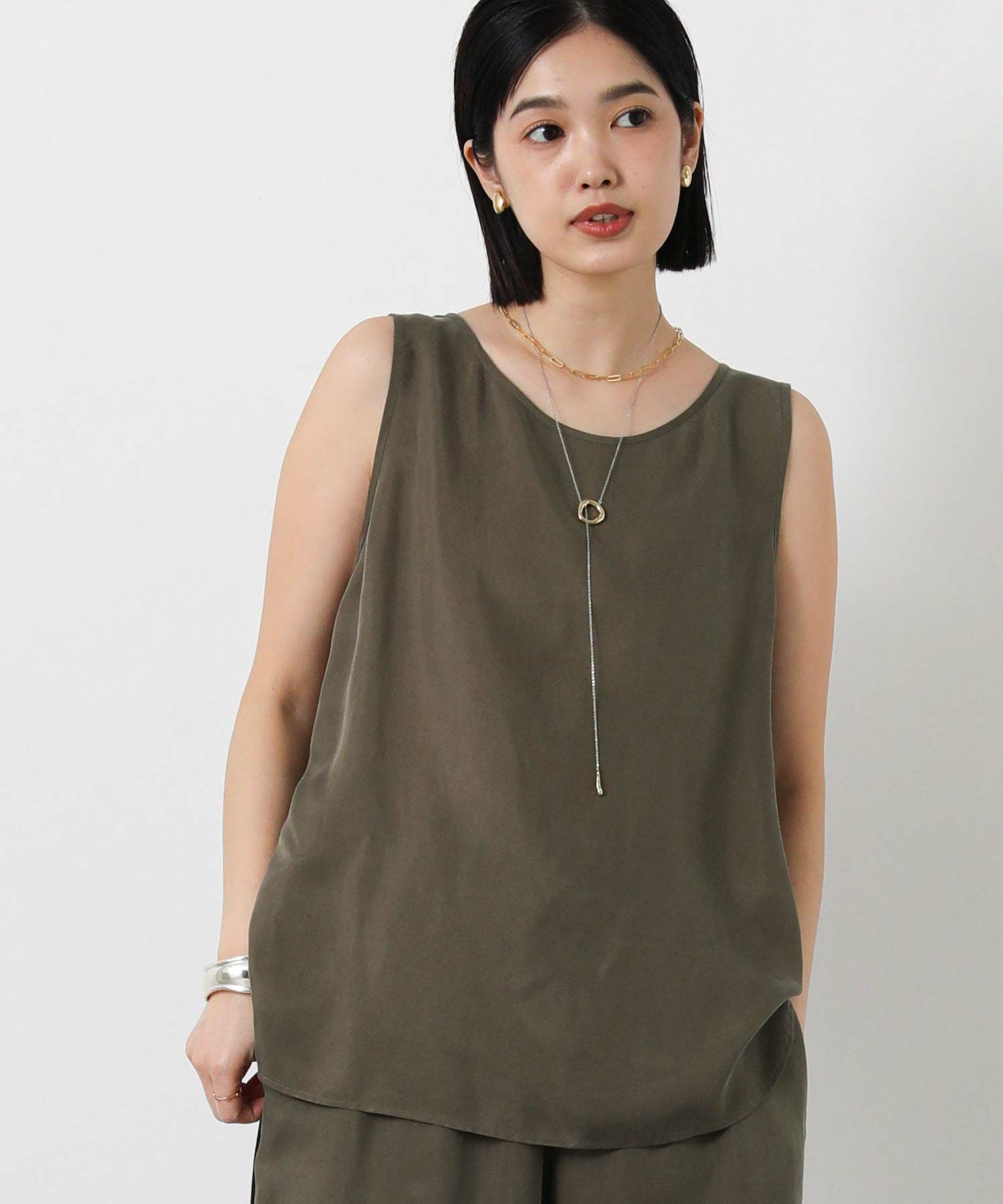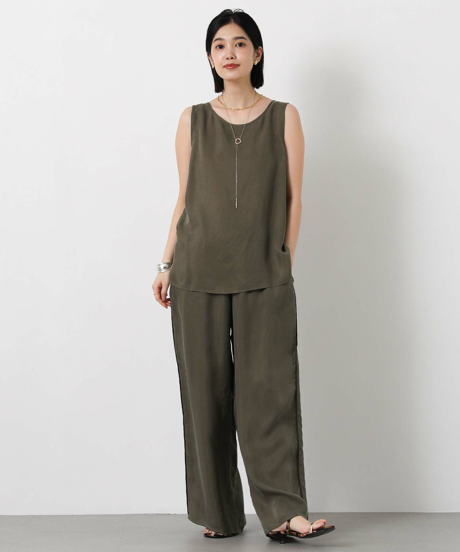 LUキュプラシャツ(OEO455424001)、LUキュプラセミワイド(OEO455426001)と素材感を合わせたセットアップでの着こなしがオススメ。