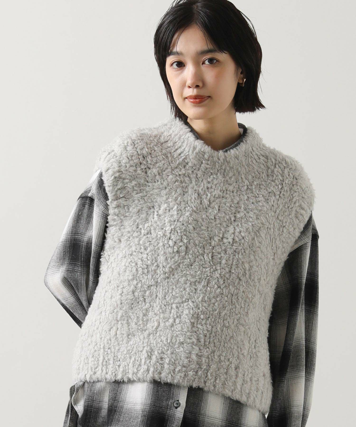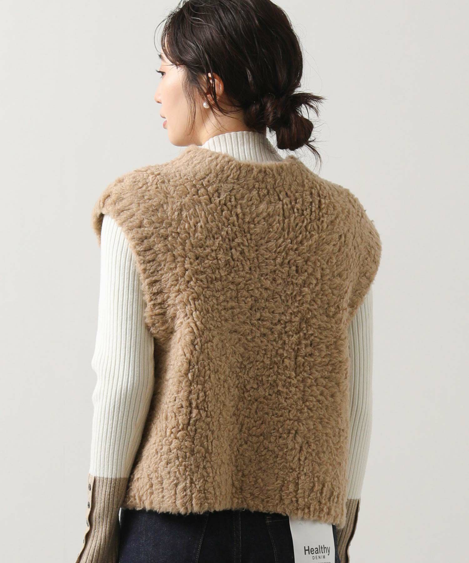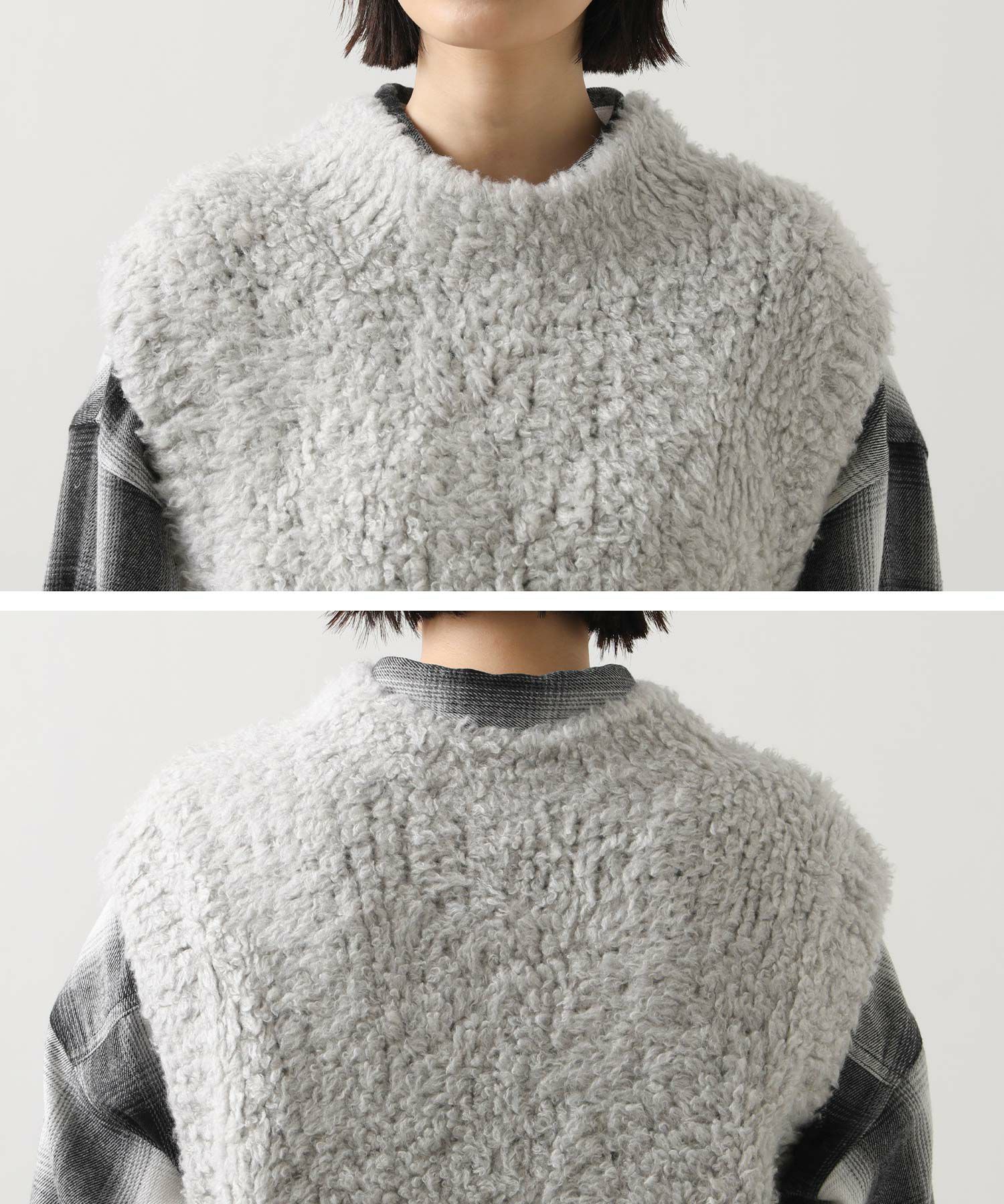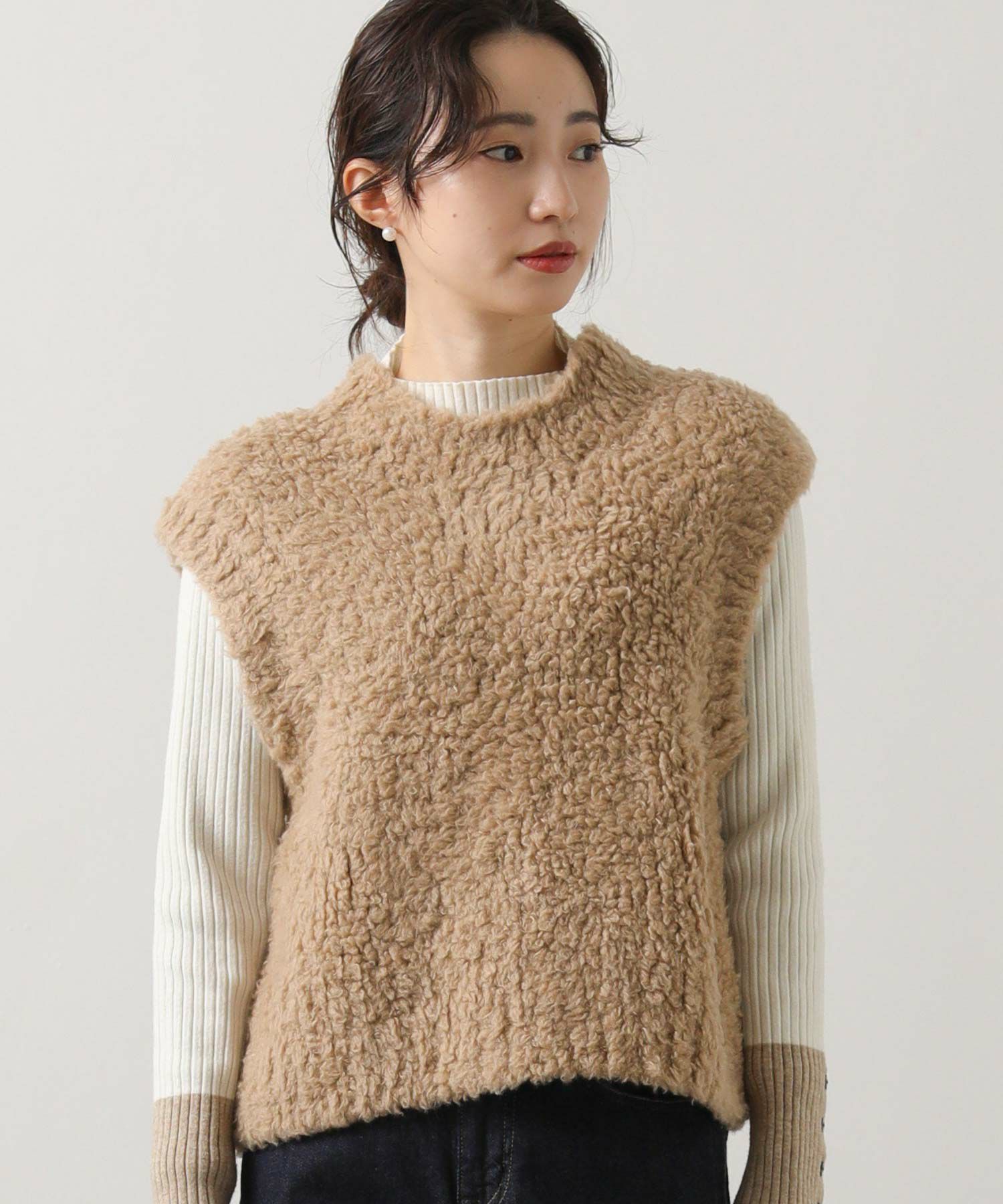カシミヤ高混率のループヤーンを使用したラグジュアリーなニットベスト。