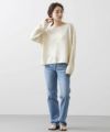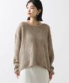 ネックは女性らしいボートネック、袖口と裾は別素材で切り替えてロール始末にしました。大人のニットスタイリングを楽しんで頂きたいです。