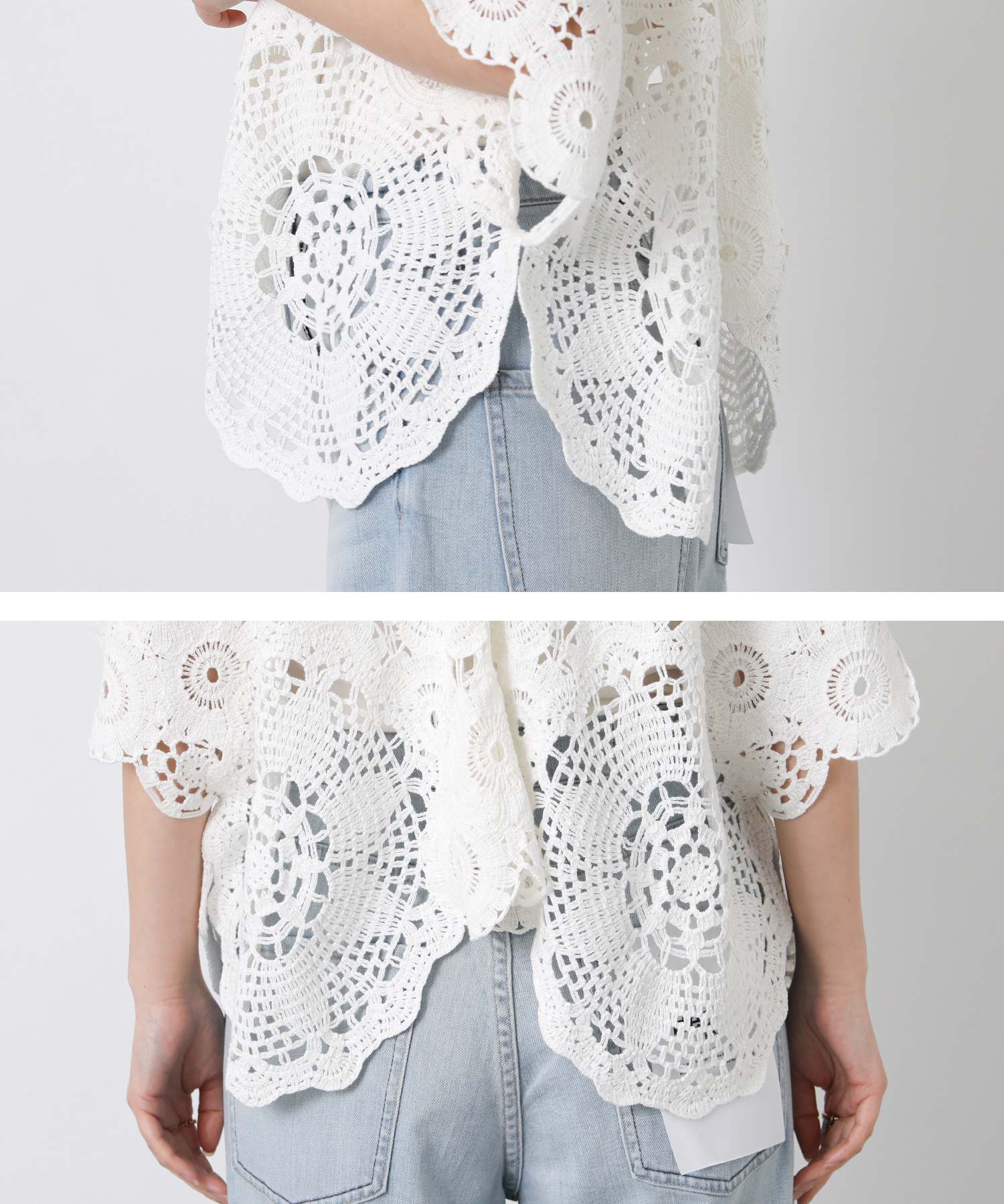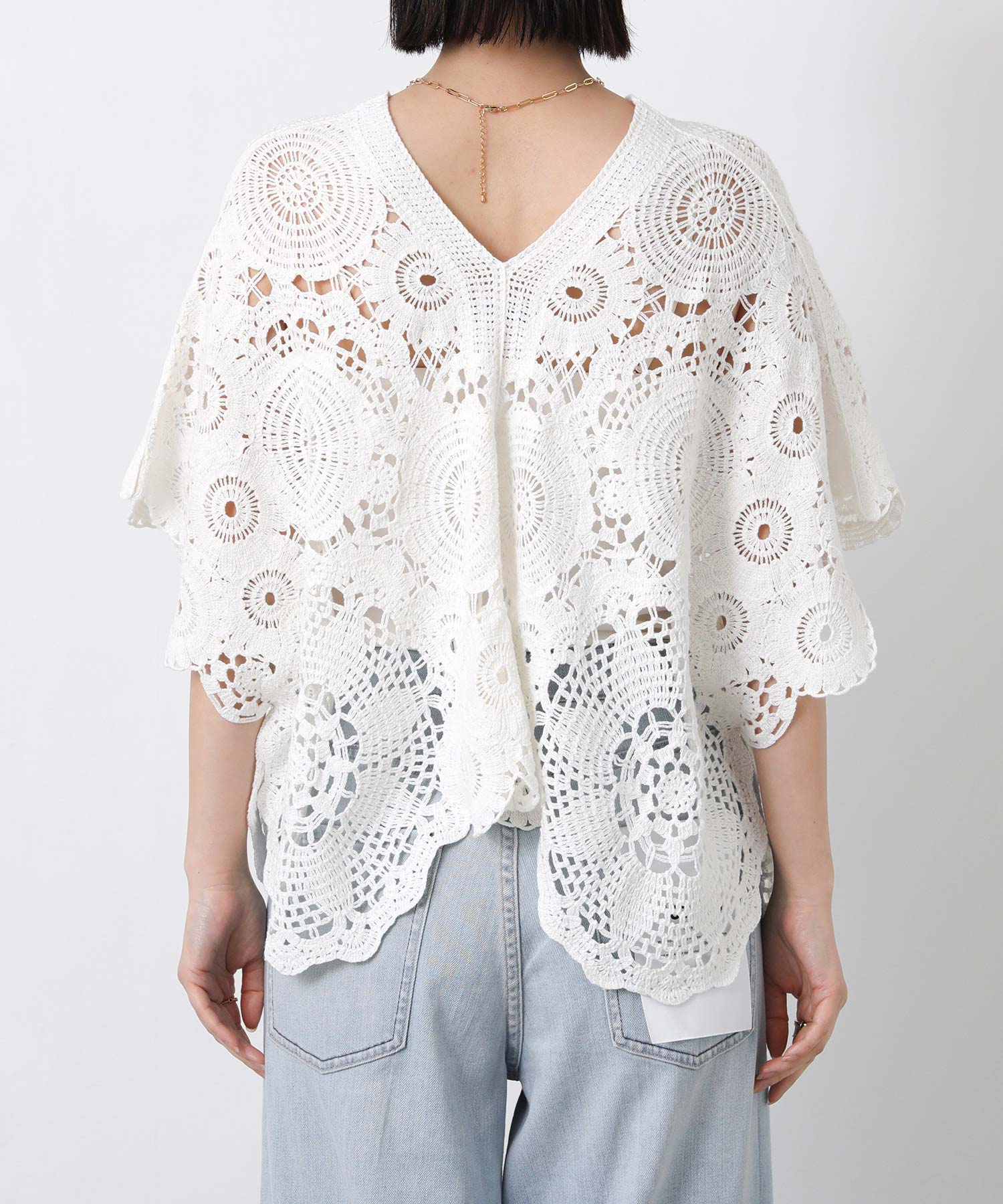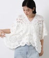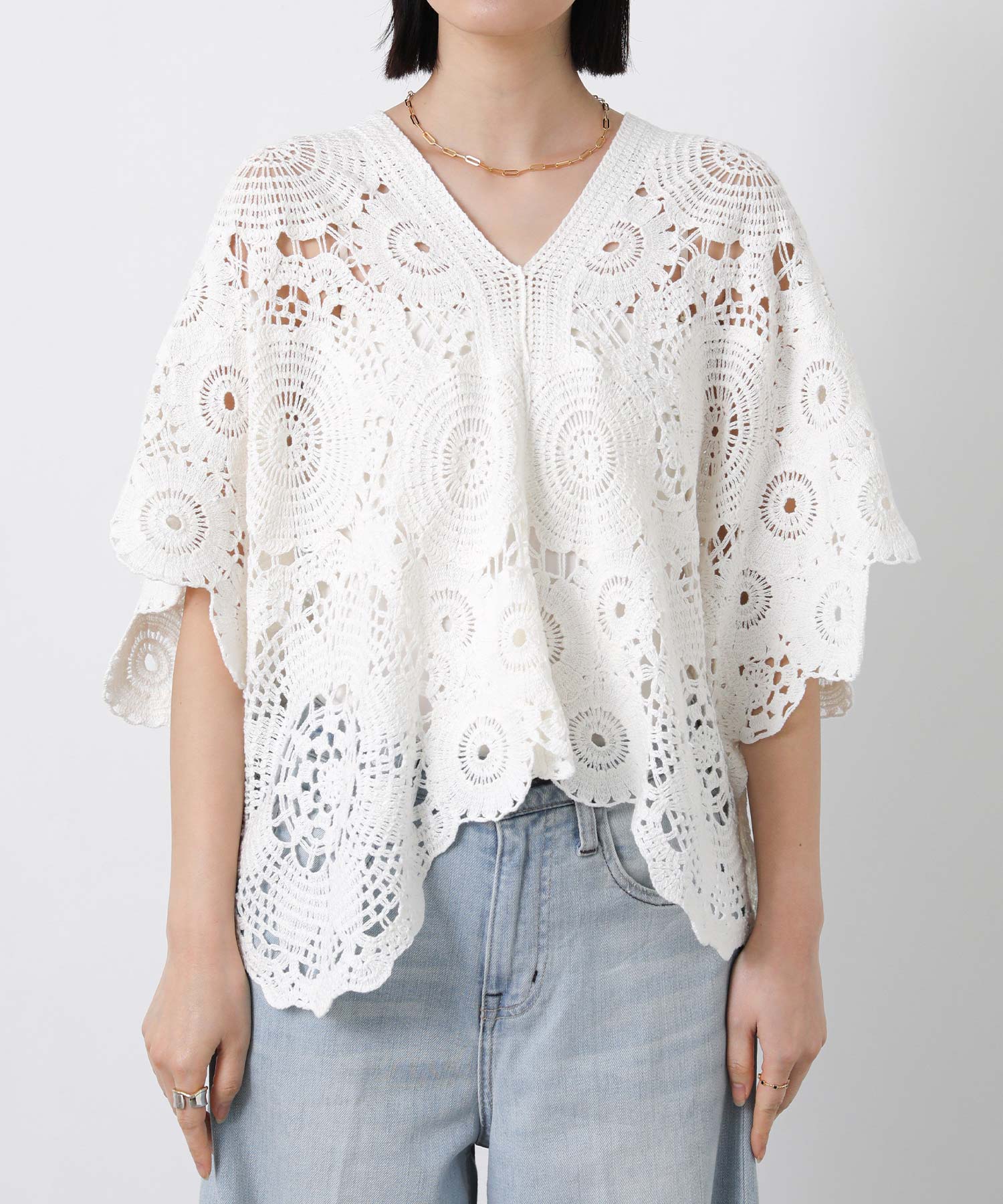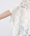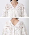 コットンクロッシェVネック5分袖ニット