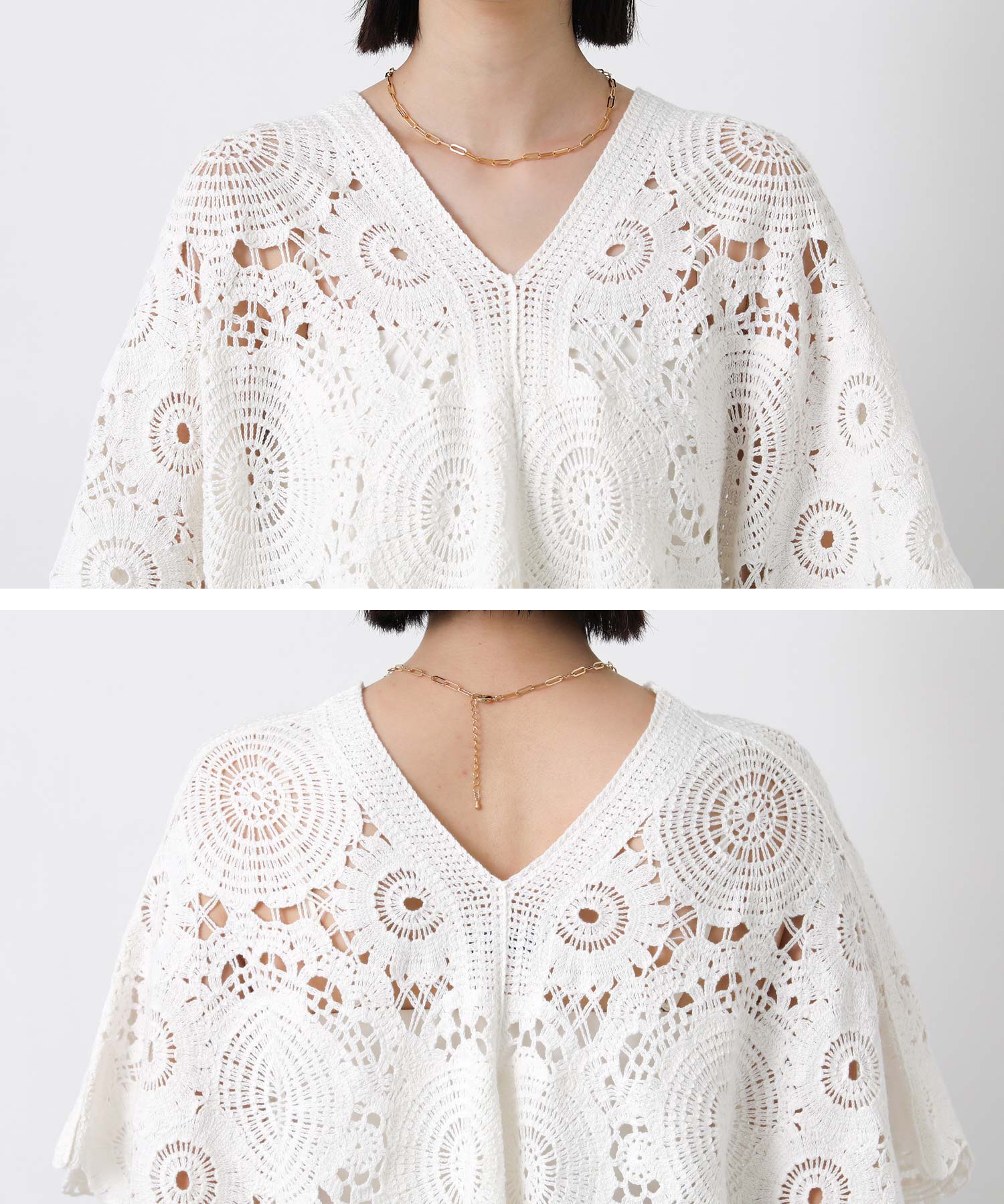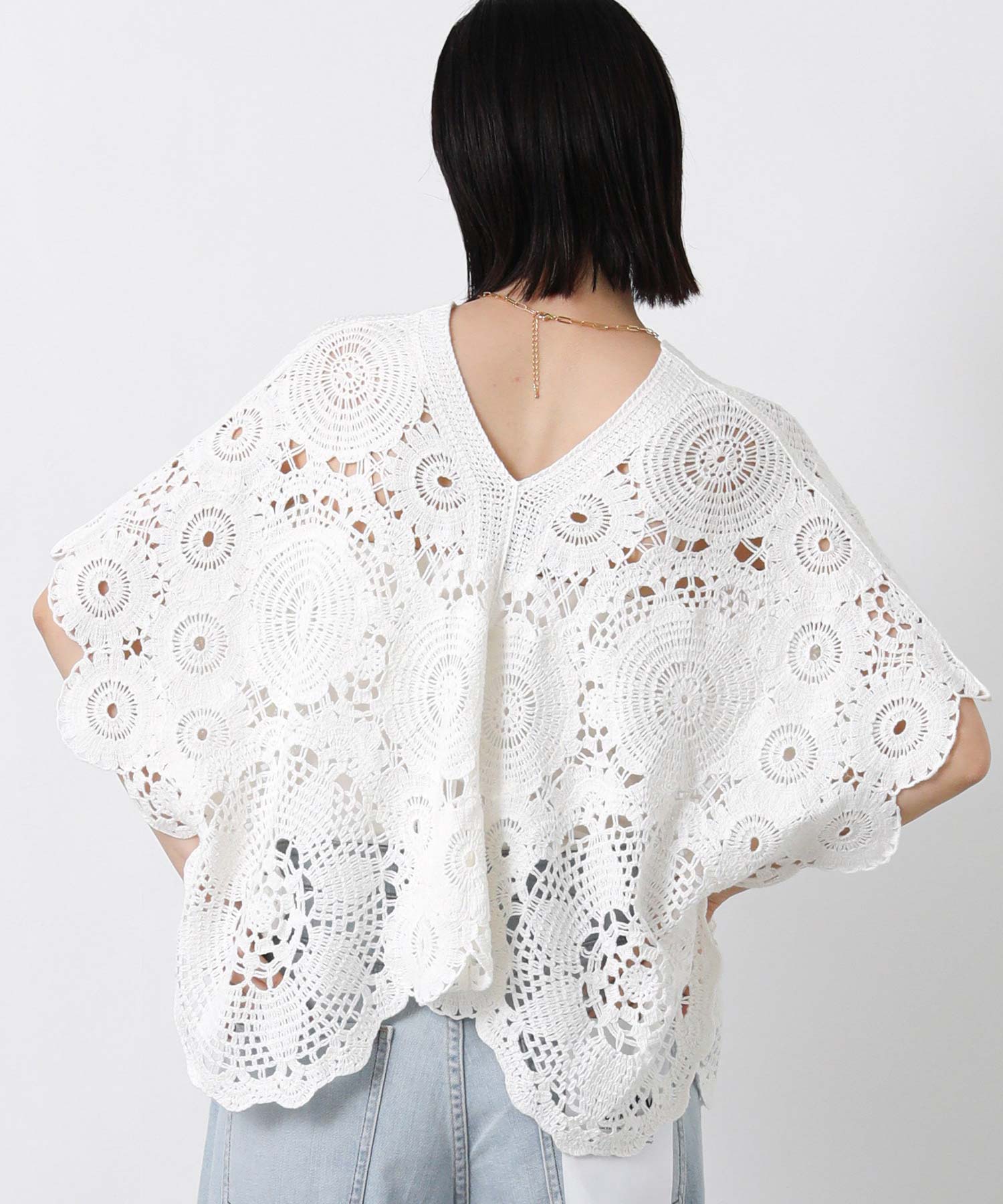【TORRAZZODONNA(トラッゾドンナ)】から、ビンテージのレースアイテムから着想を得た、シーズンムード高まるクロシェ編みのポンチョプルオーバーをセレクト。