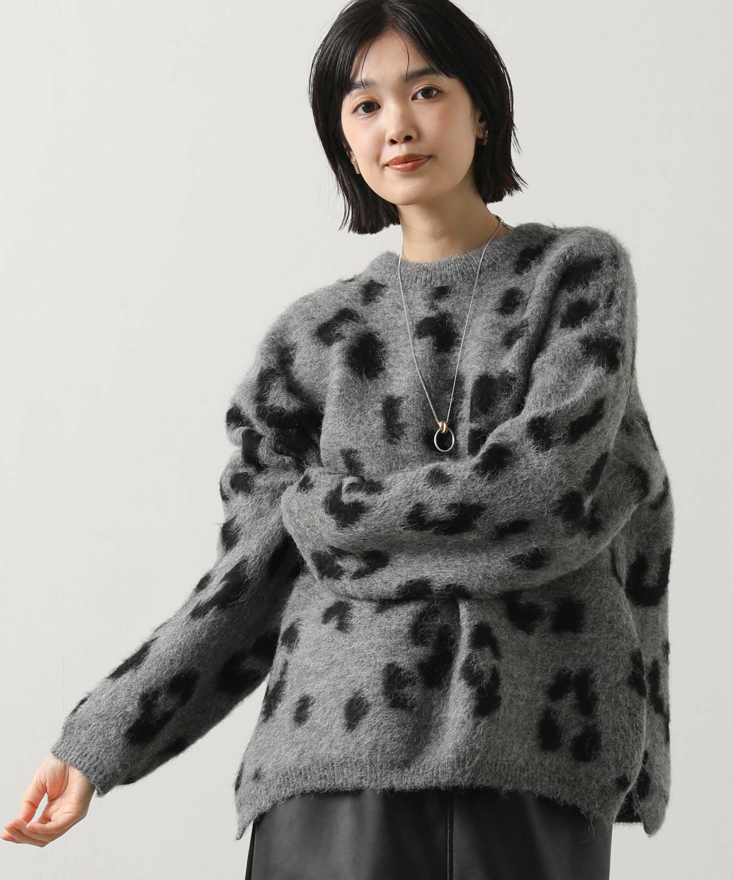 【BoutiqueOrdinary(ブティークオーディナリー)】から、レオパードジャガードで編み上げた、オーバーサイズで抜け感のある着こなしが叶うニットカーデをセレクト。