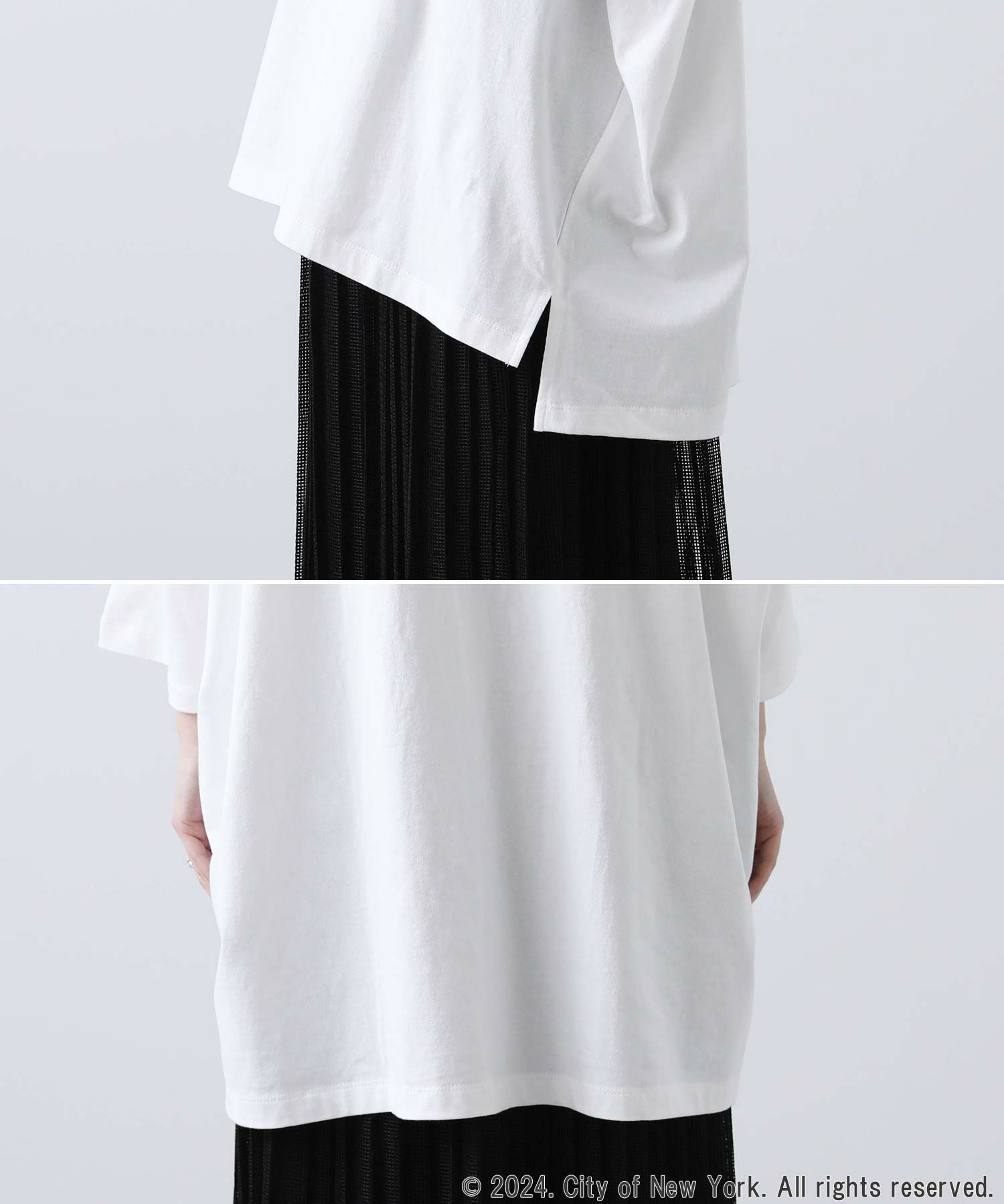 ボディはやや大きめで、ゆとりのあるシルエットは一枚で様になり、スタイリングにこなれ感をプラスしてくれます。
