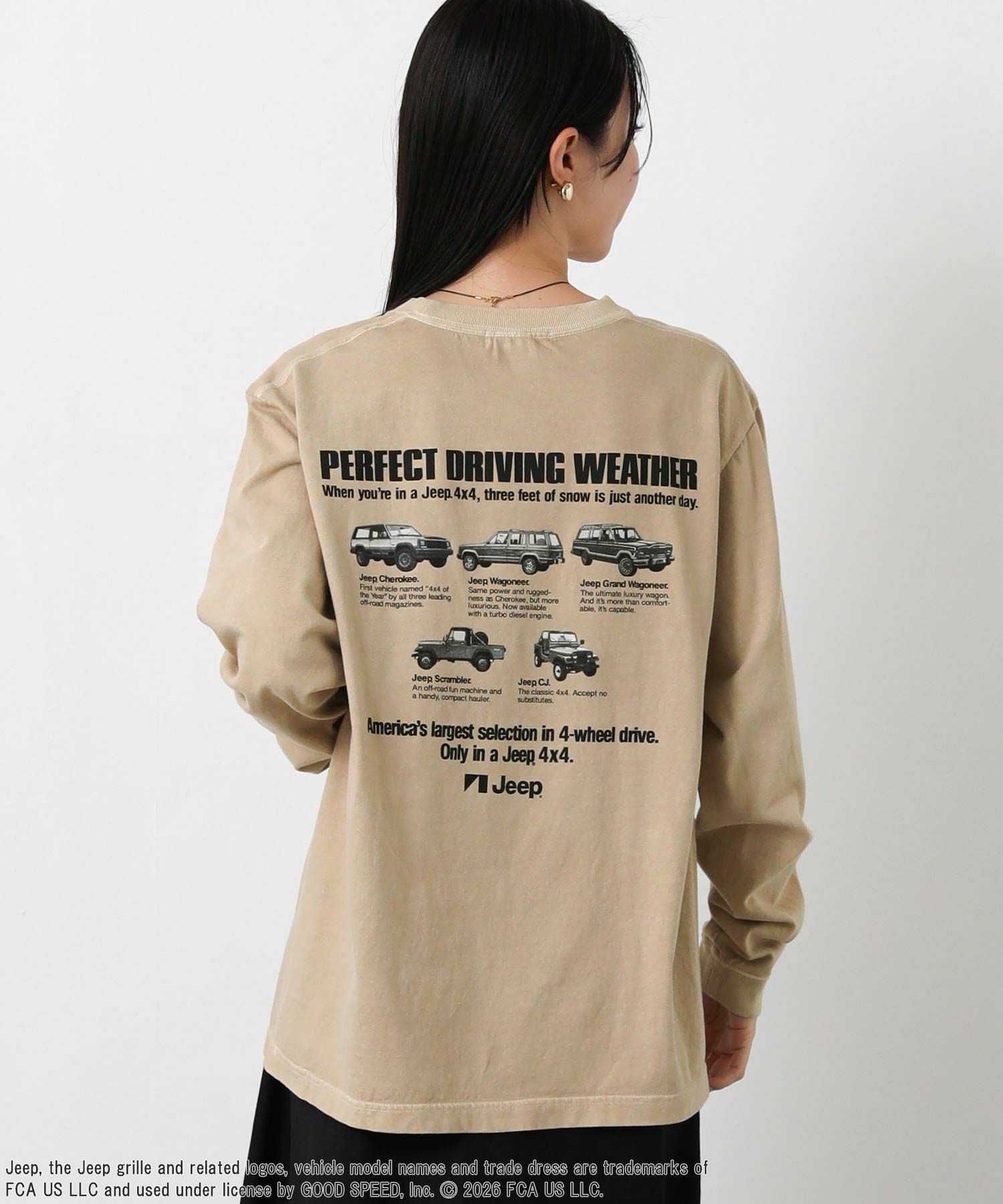 【GOODROCKSPEED/グッドロックスピード】から、アメリカの自動車ブランド「ジープ」とのコラボラインのロンTをセレクト。