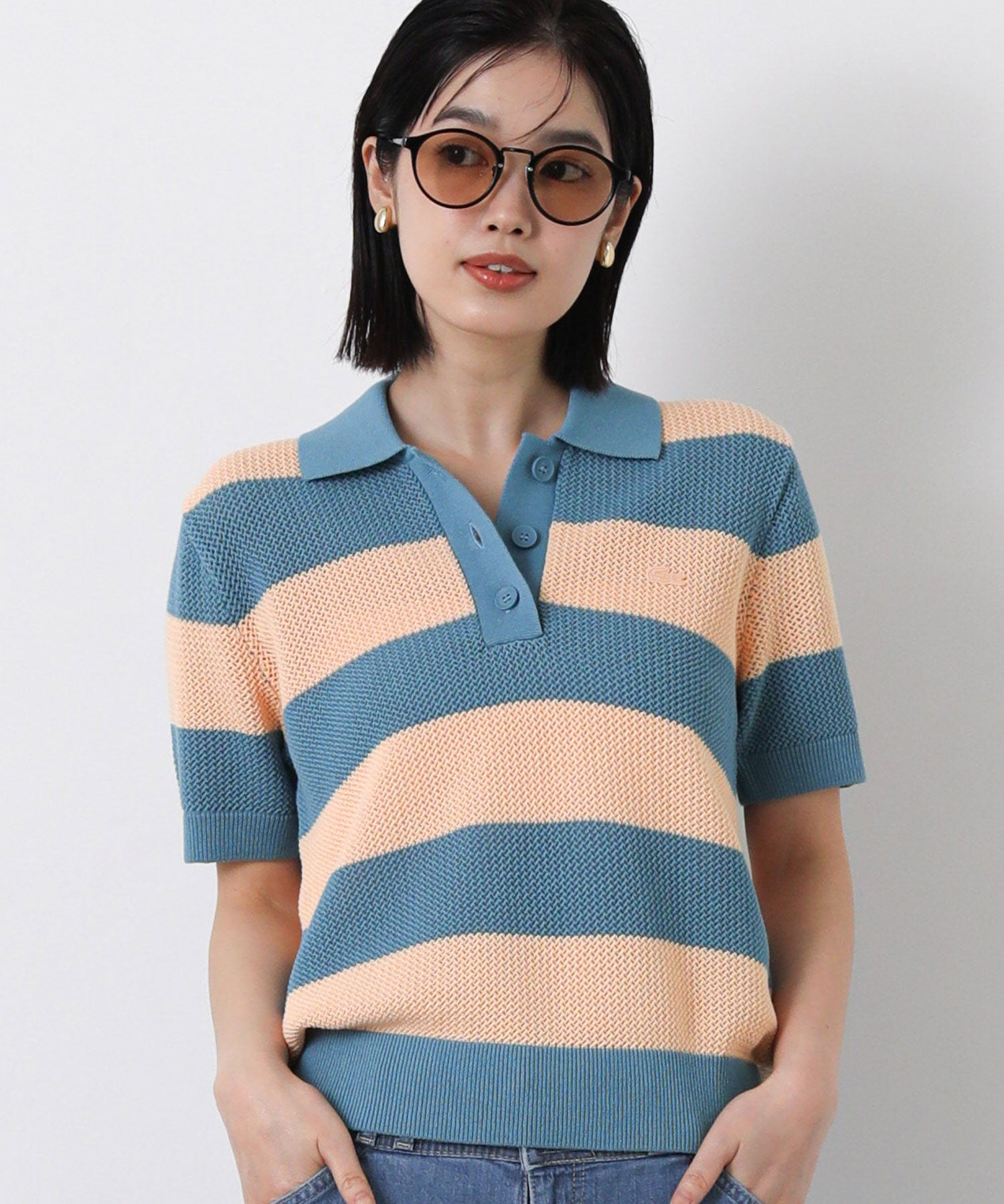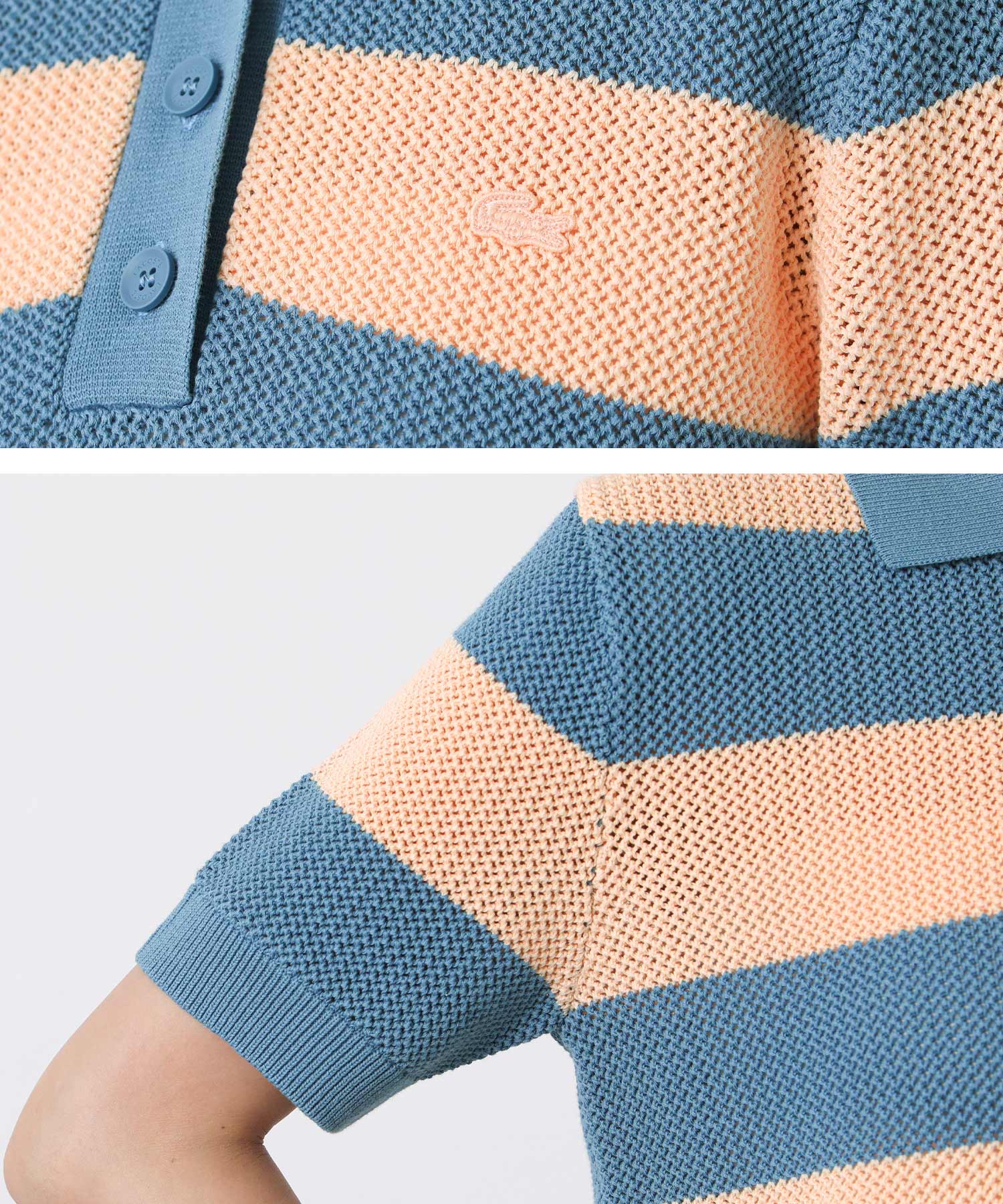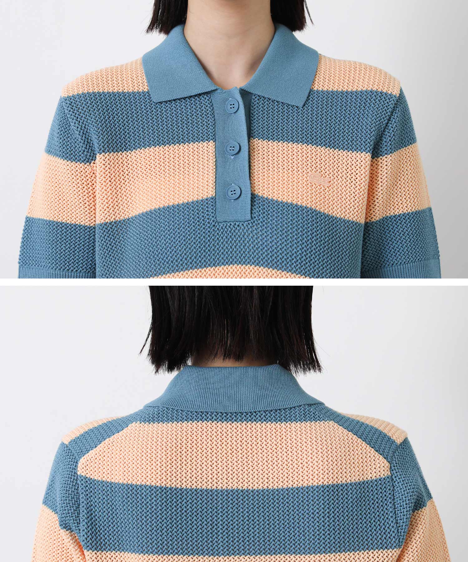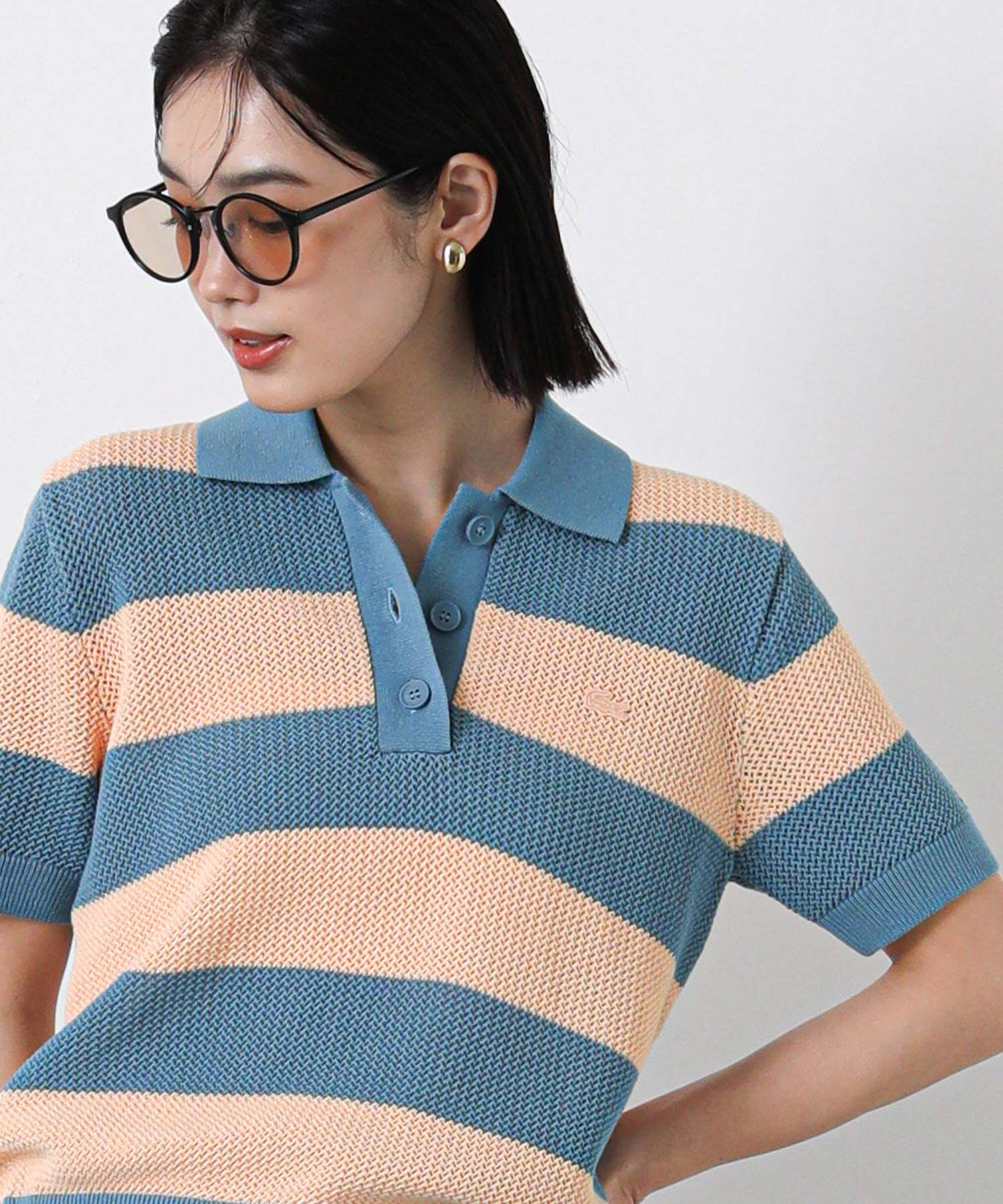【LACOSTE(ラコステ)】から、鮮やかなカラーリングと太めのボーダーがアクセントのポロニットをセレクト。