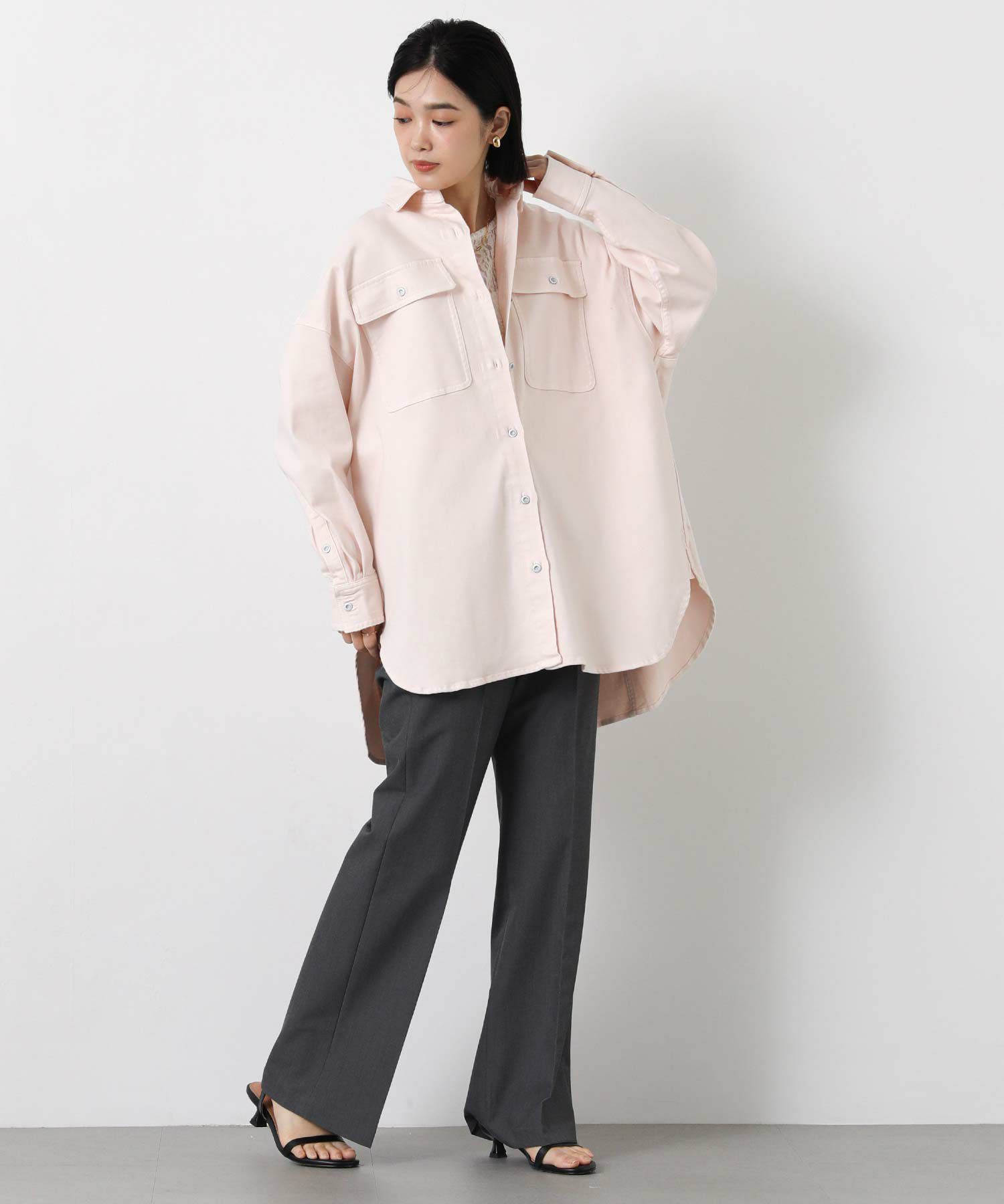 前裾をボトムにタックインして着用したり、ボタンを開けて羽織として着用したり、様々な着こなしが可能。