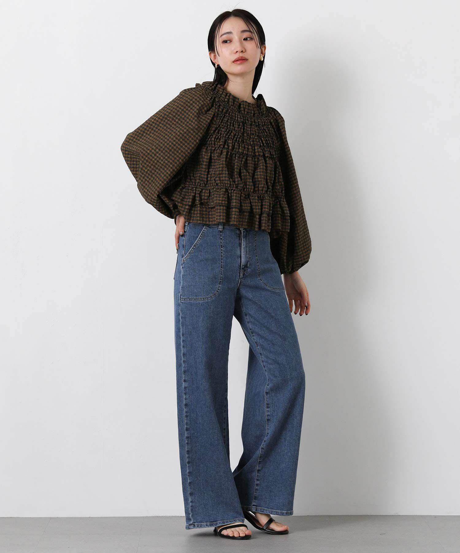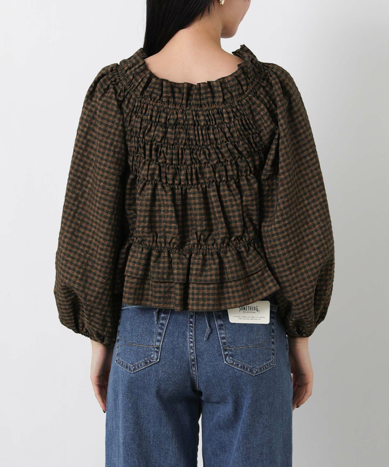 【WILLFULLY(ウィルフリー)】から、ギンガムチェックのシャーリングブラウスをセレクト。