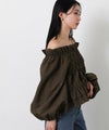顔まわりがスッキリと見えるボート開きデザインで、胸元のシャーリングは細見え効果も抜群!