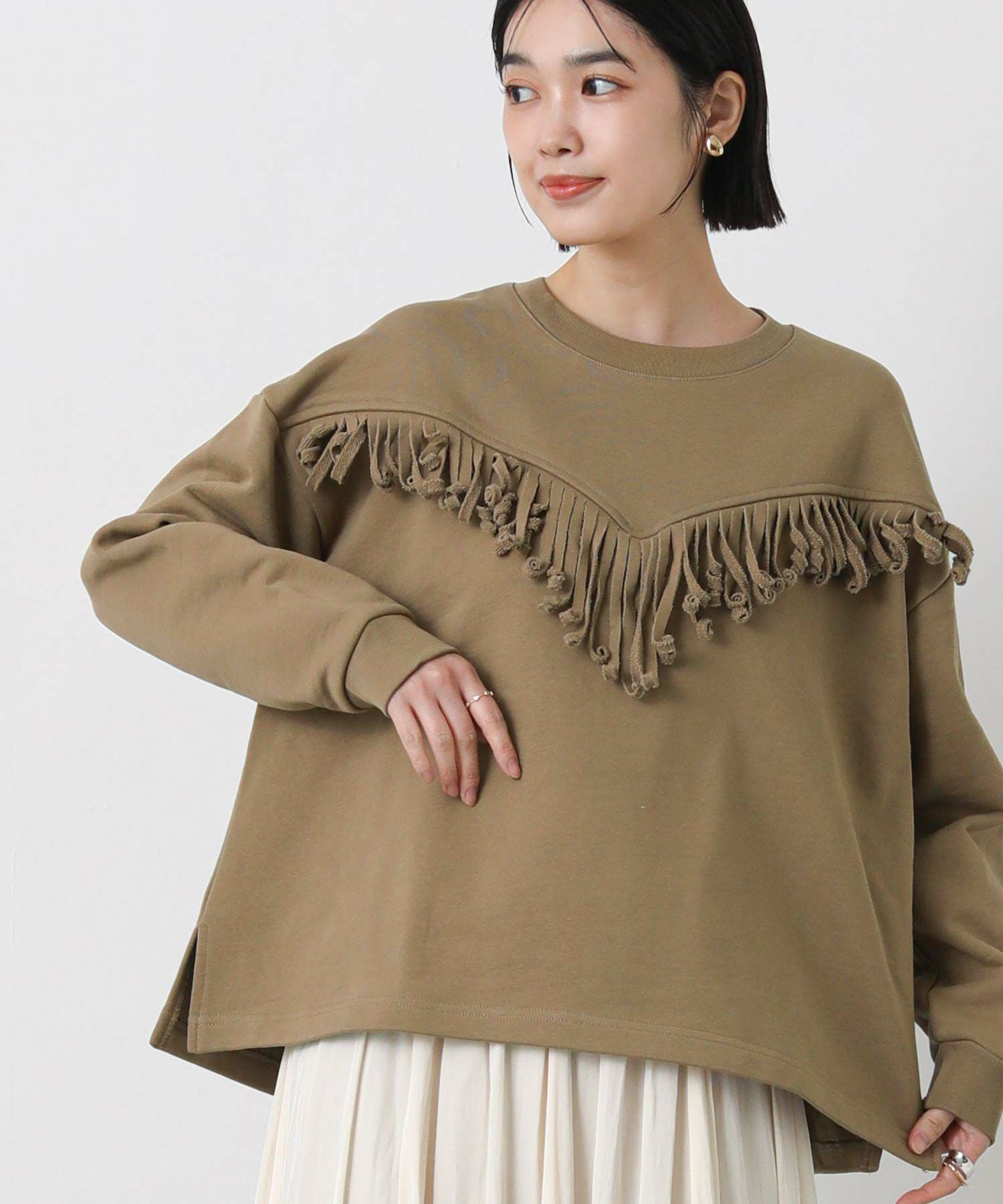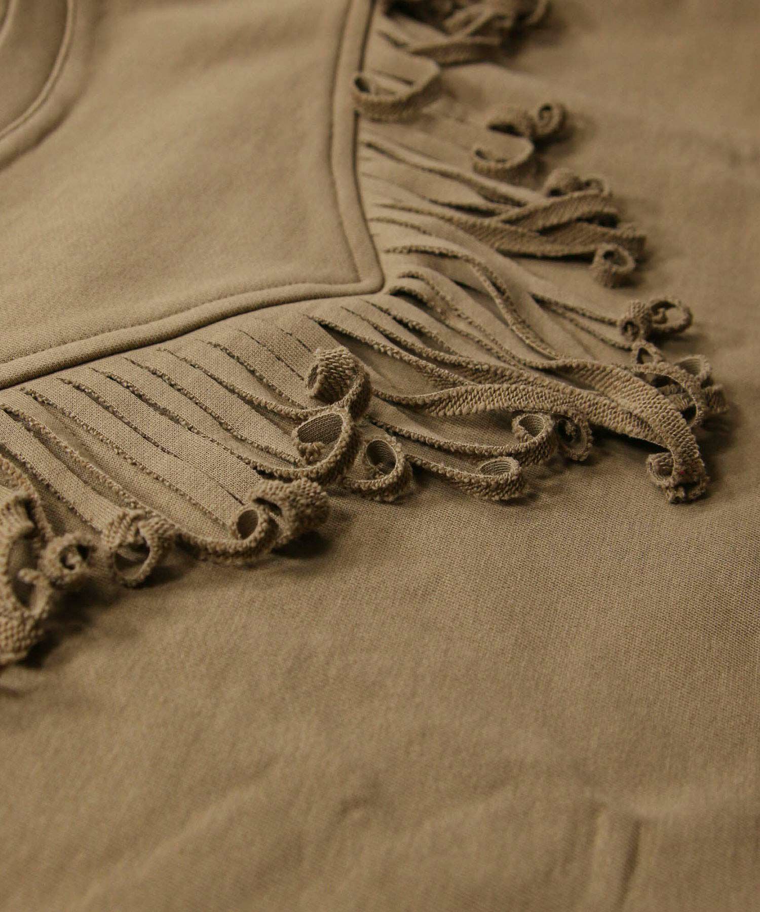 【+81BRANCA(ハチイチブランカ)】から、フリンジを効かせた存在感のあるスウェットをセレクト。
