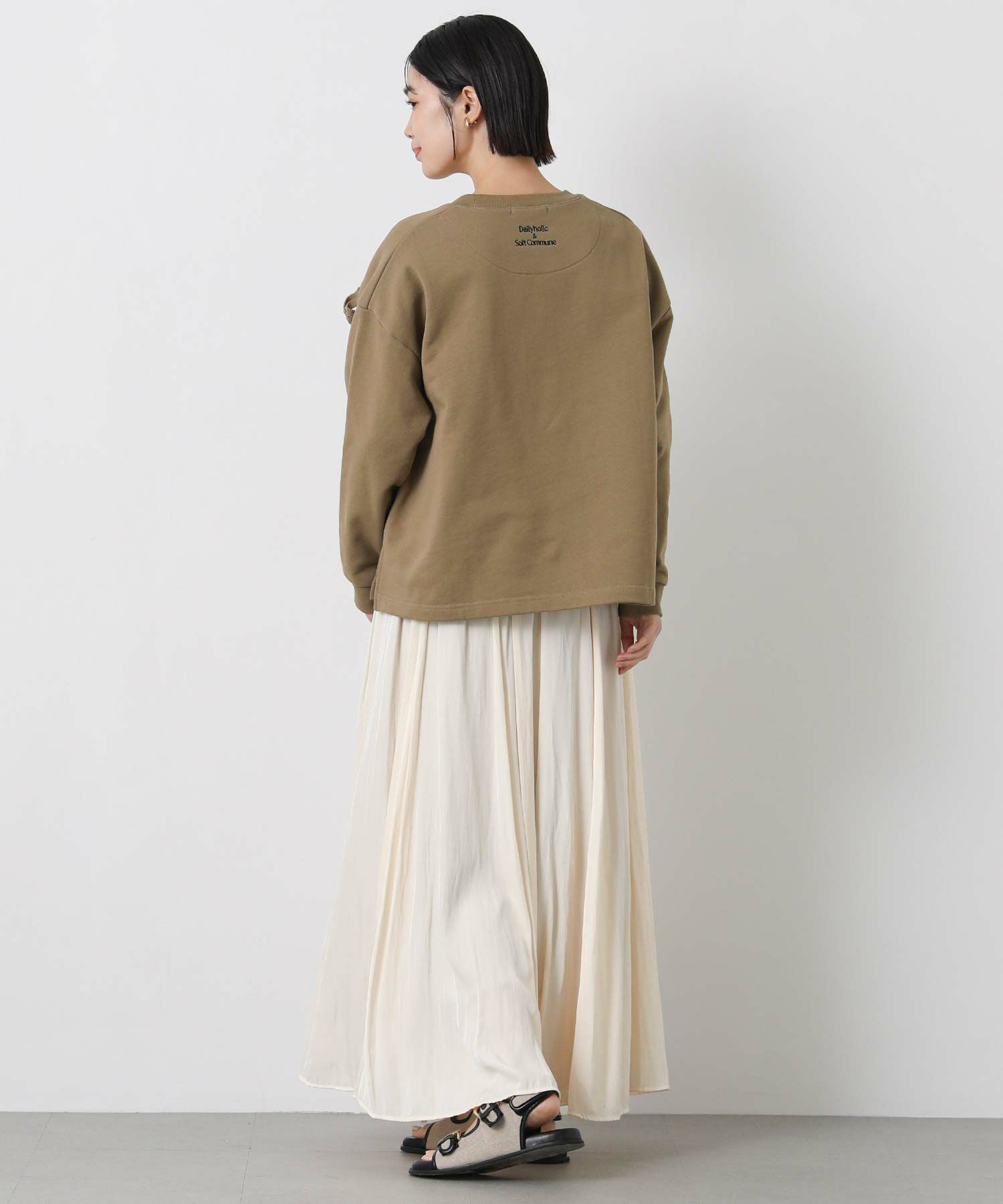 裾が止まらないシルエットで、スカートでもパンツでもスタイリングしやすくなっています。