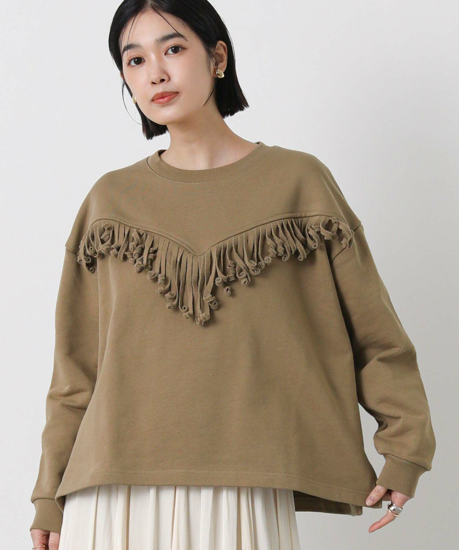 【+81BRANCA(ハチイチブランカ)】から、フリンジを効かせた存在感のあるスウェットをセレクト。