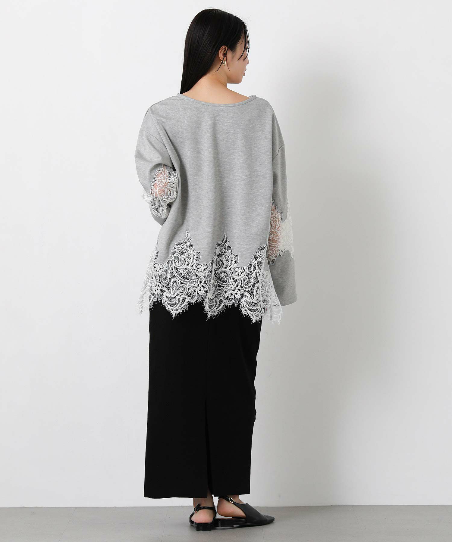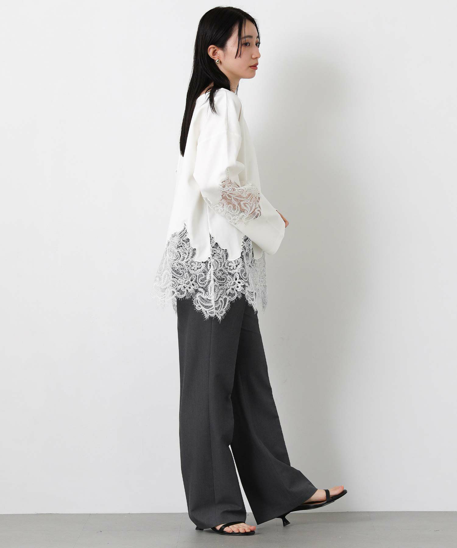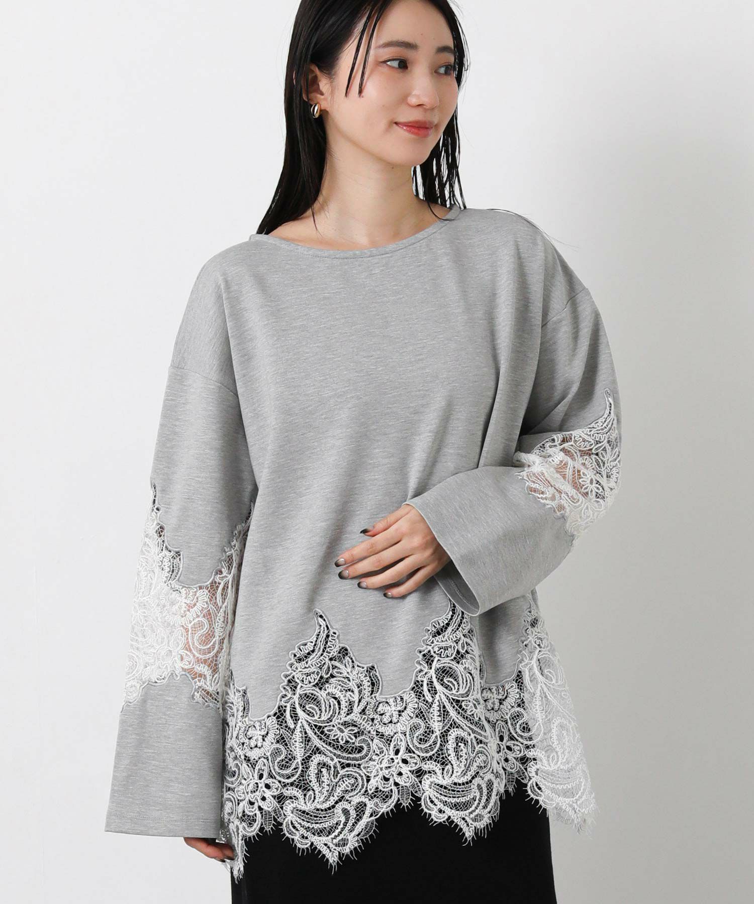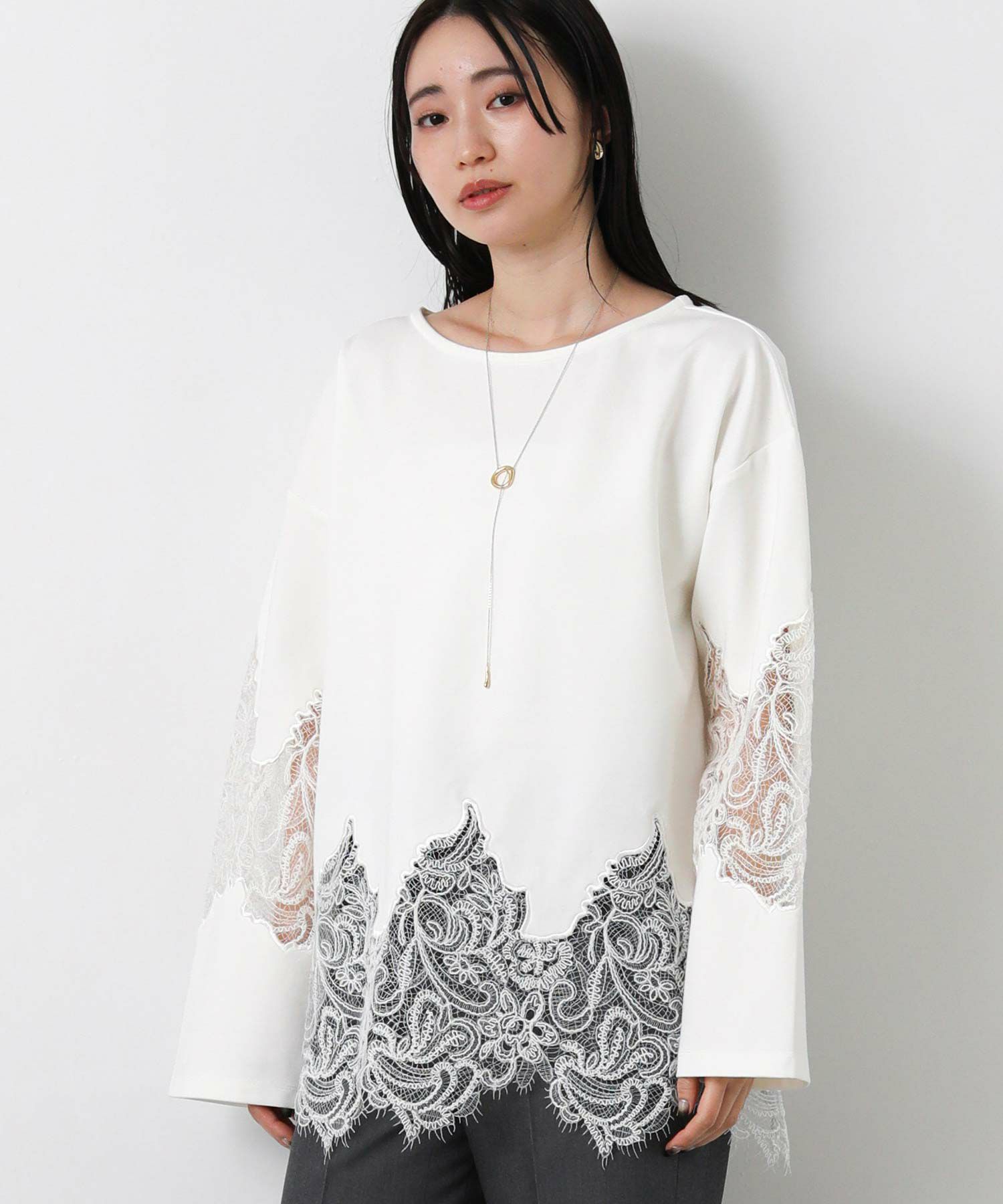 【WILLFULLY(ウィルフリー)】から、スカラップレースを裾と袖に配置したトップスをセレクト。