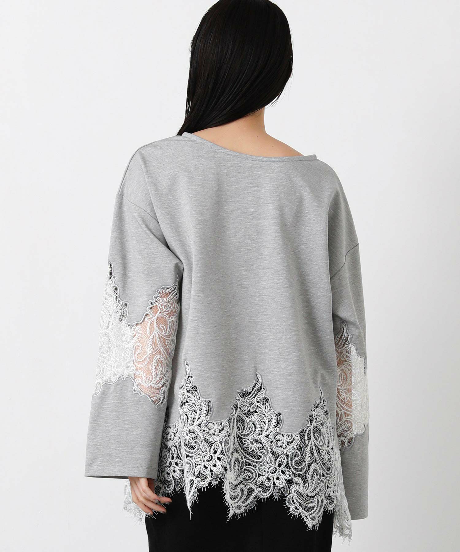 スカラップレースが上品で軽やかな印象に、ボートネックで大人っぽさを演出。