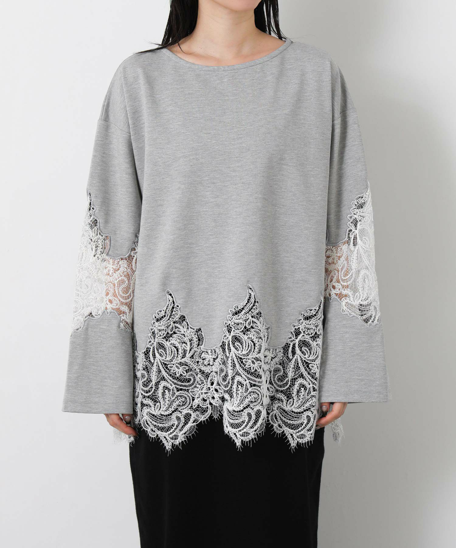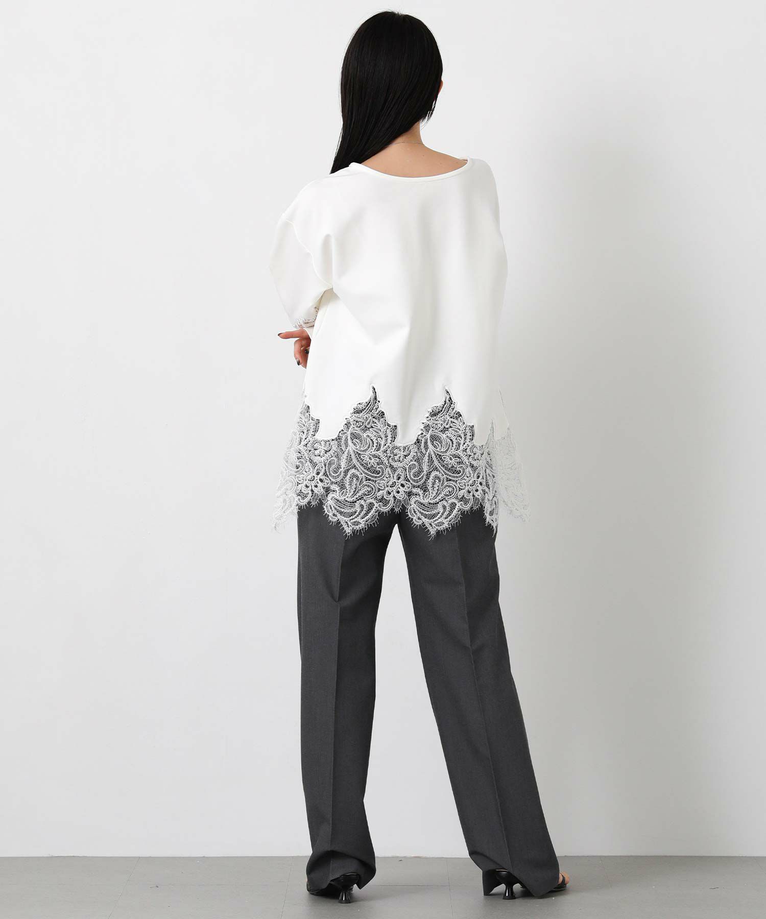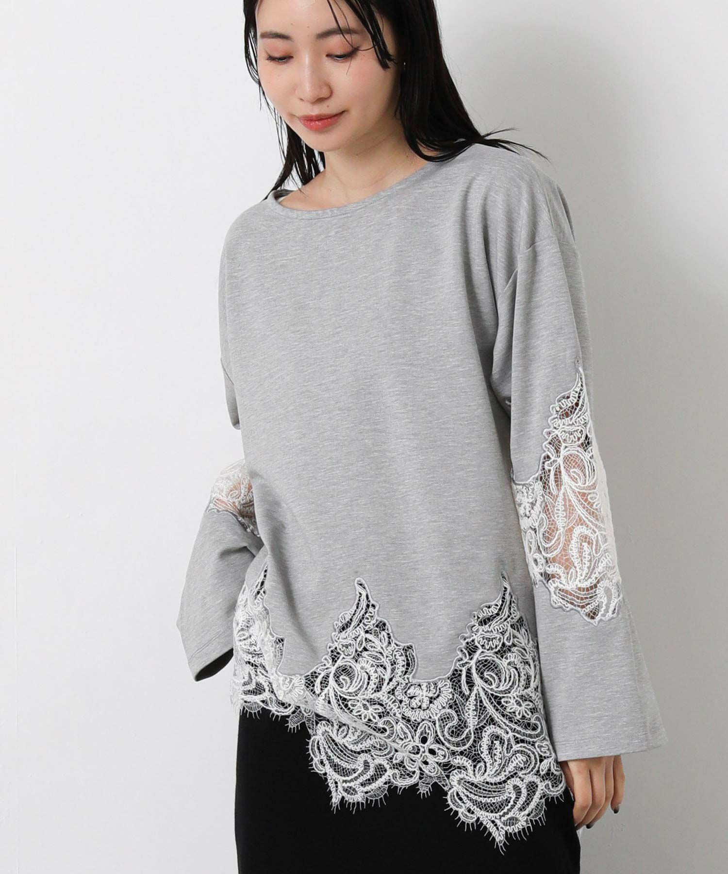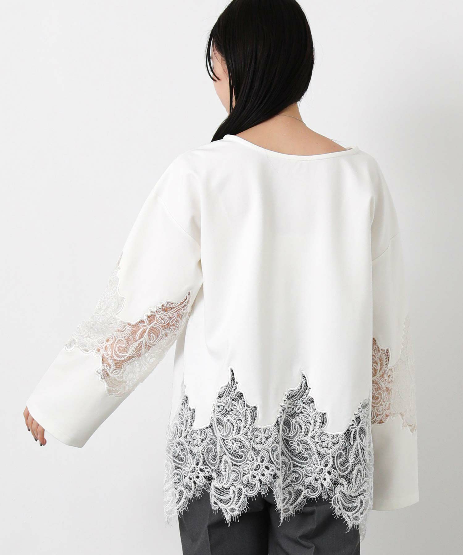 【WILLFULLY(ウィルフリー)】から、スカラップレースを裾と袖に配置したトップスをセレクト。