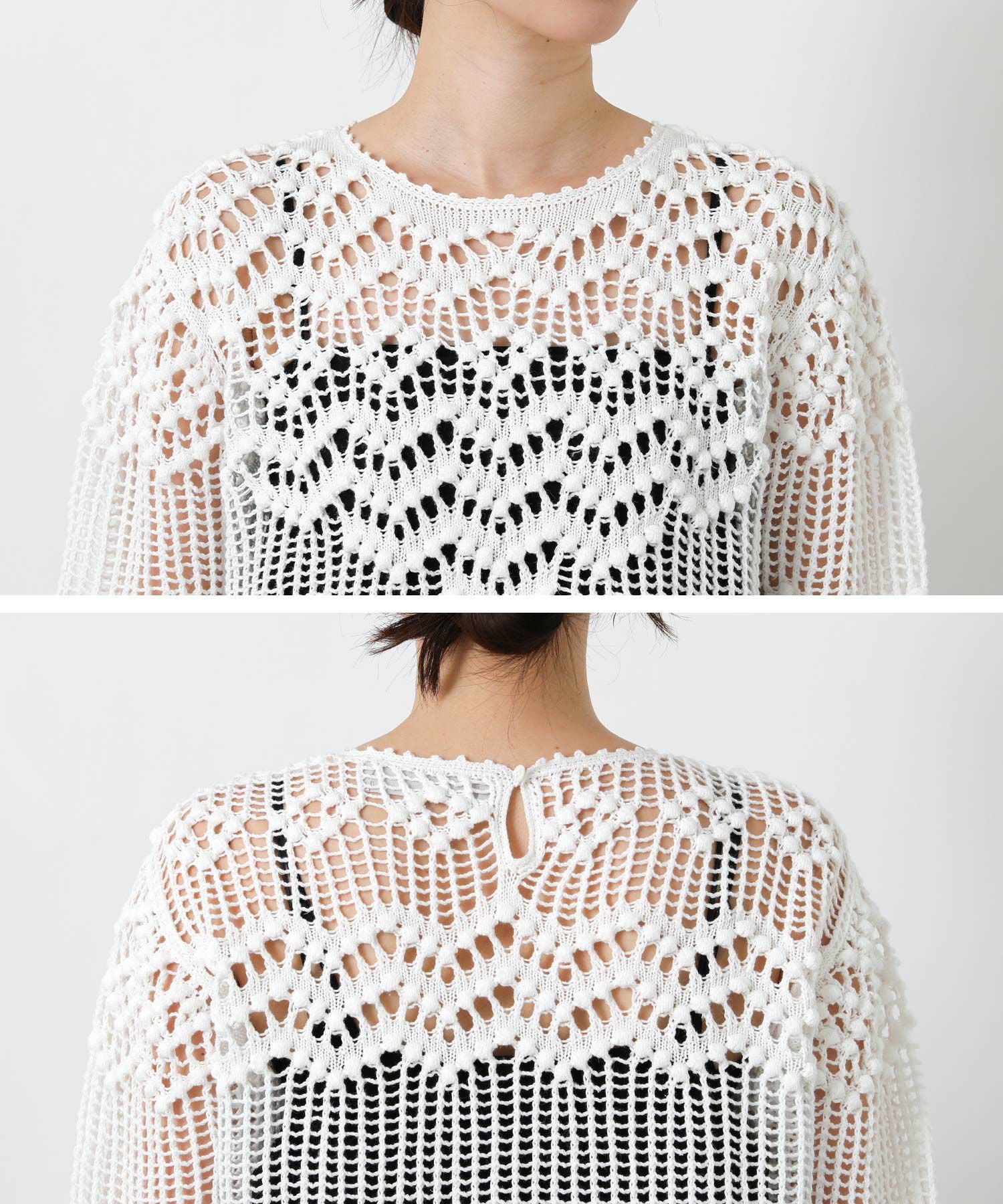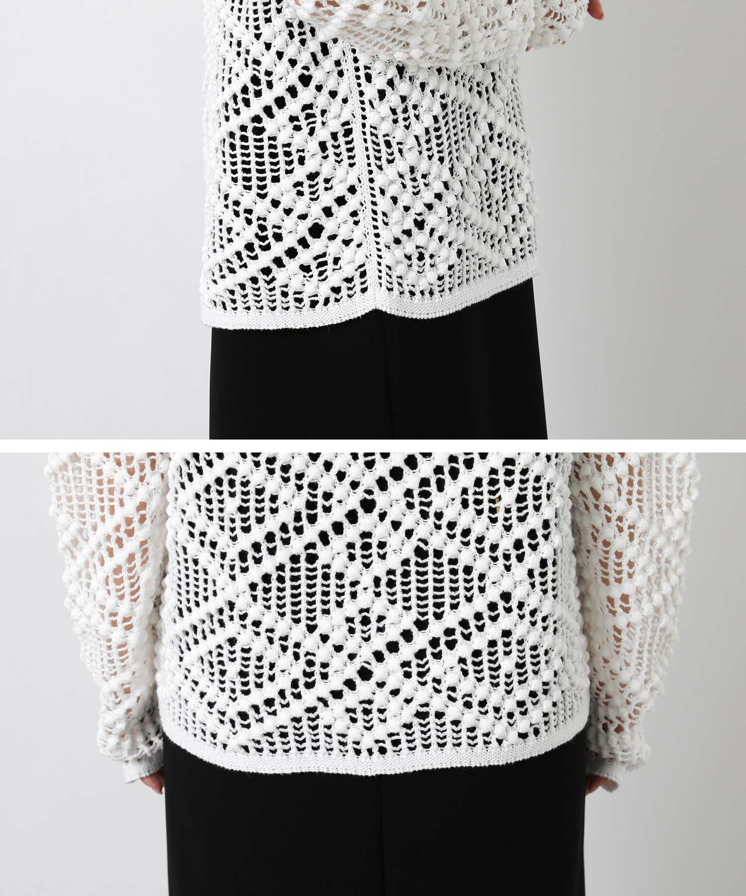 【IRONING(アイロニング)】から、繊細な柄にこだわったざっくり感が可愛いニットプルオーバーをセレクト。