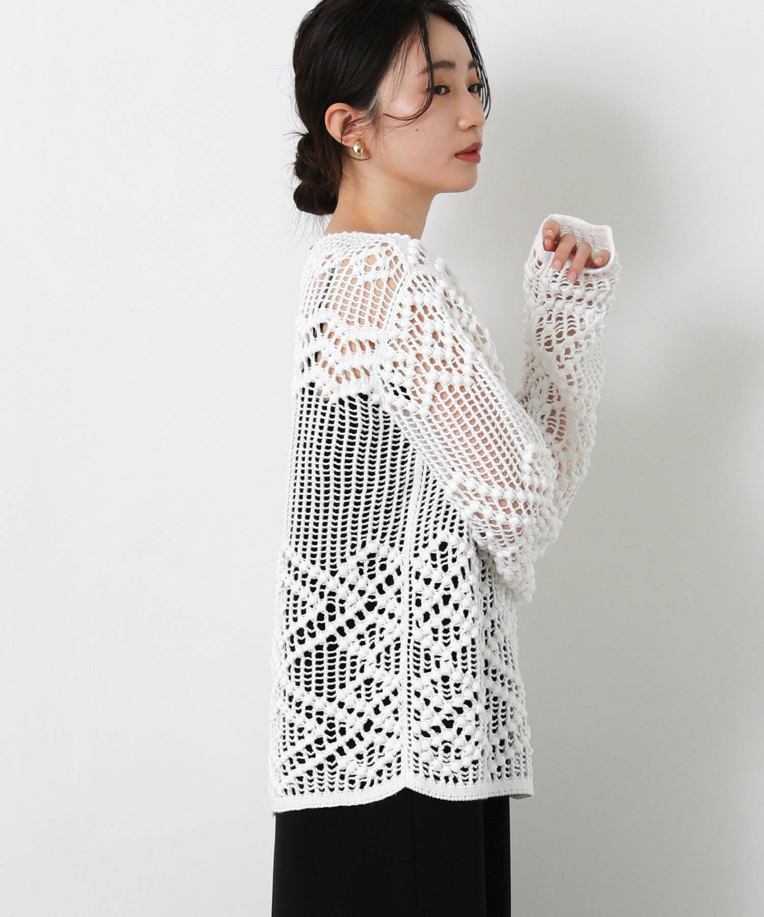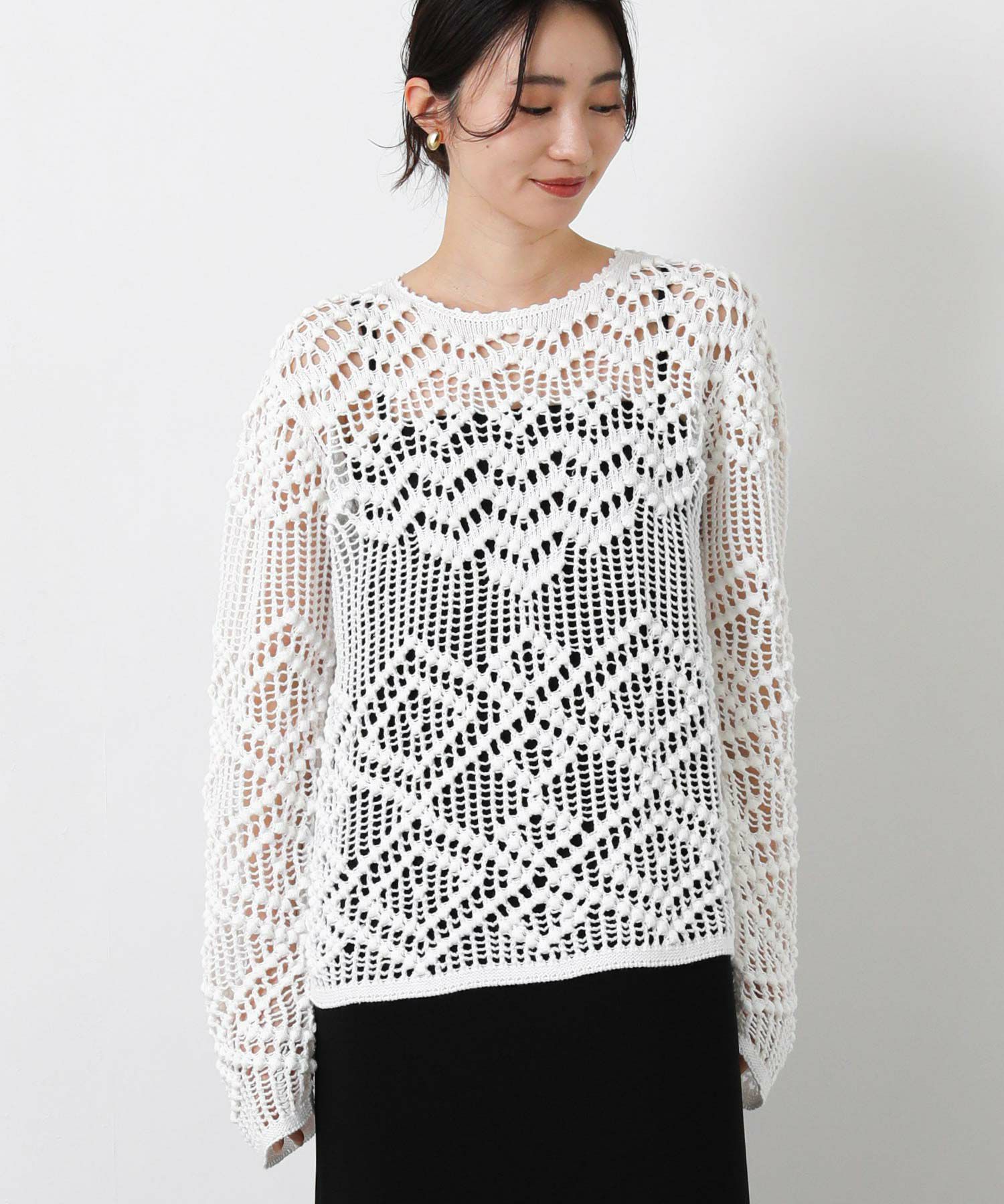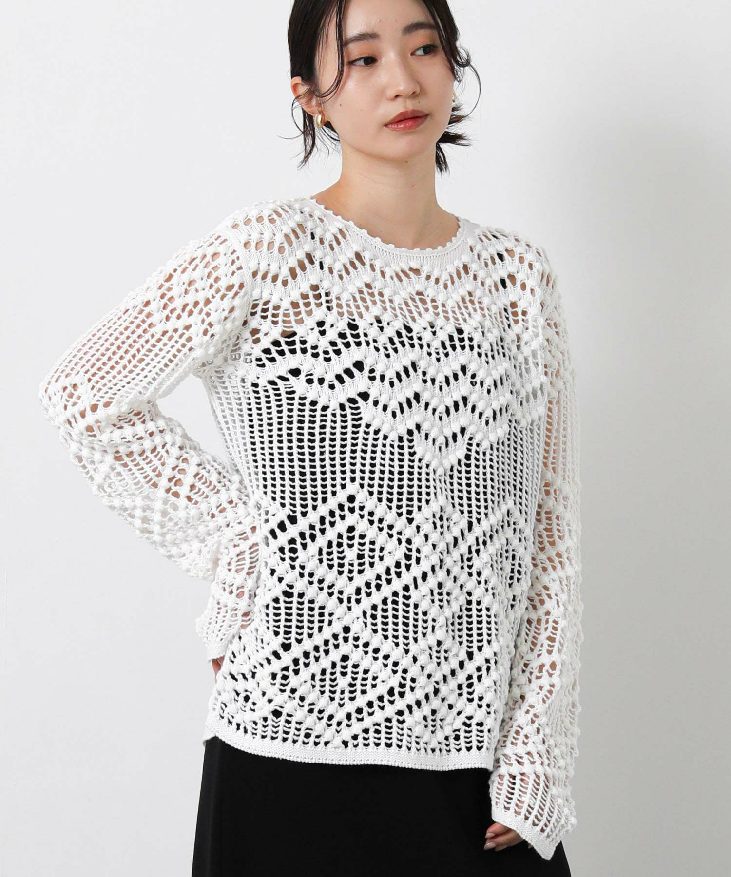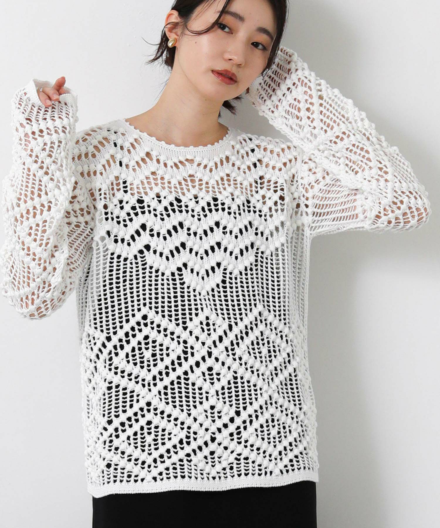【IRONING(アイロニング)】から、繊細な柄にこだわったざっくり感が可愛いニットプルオーバーをセレクト。