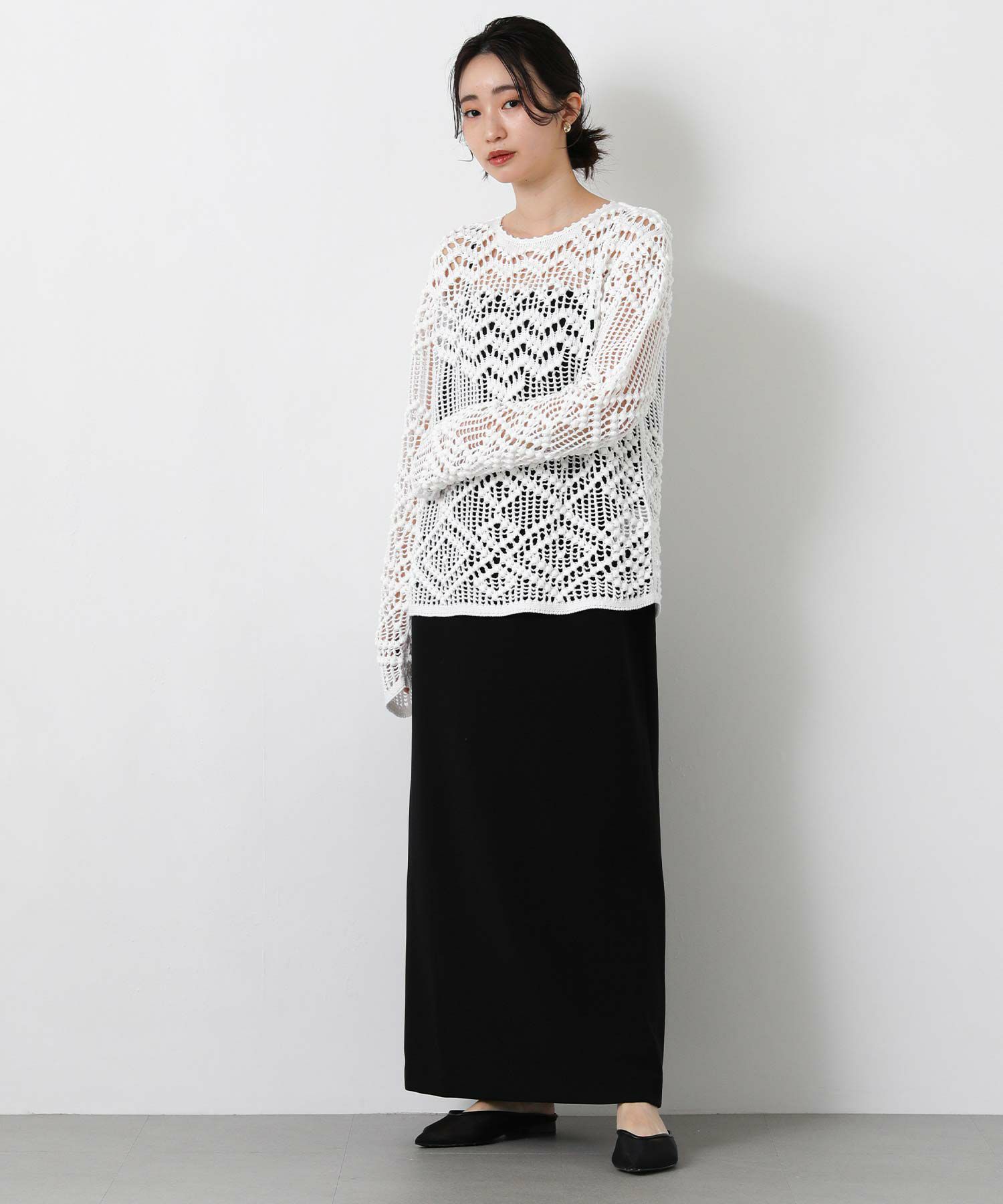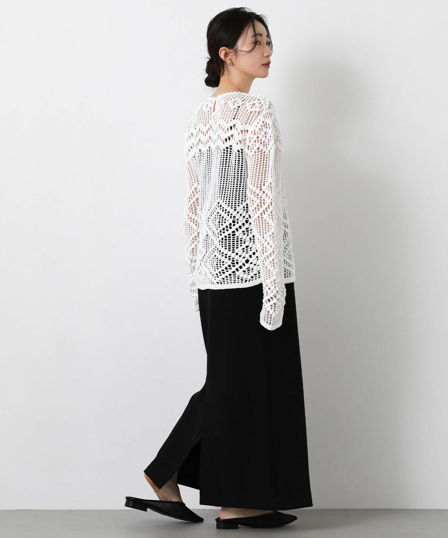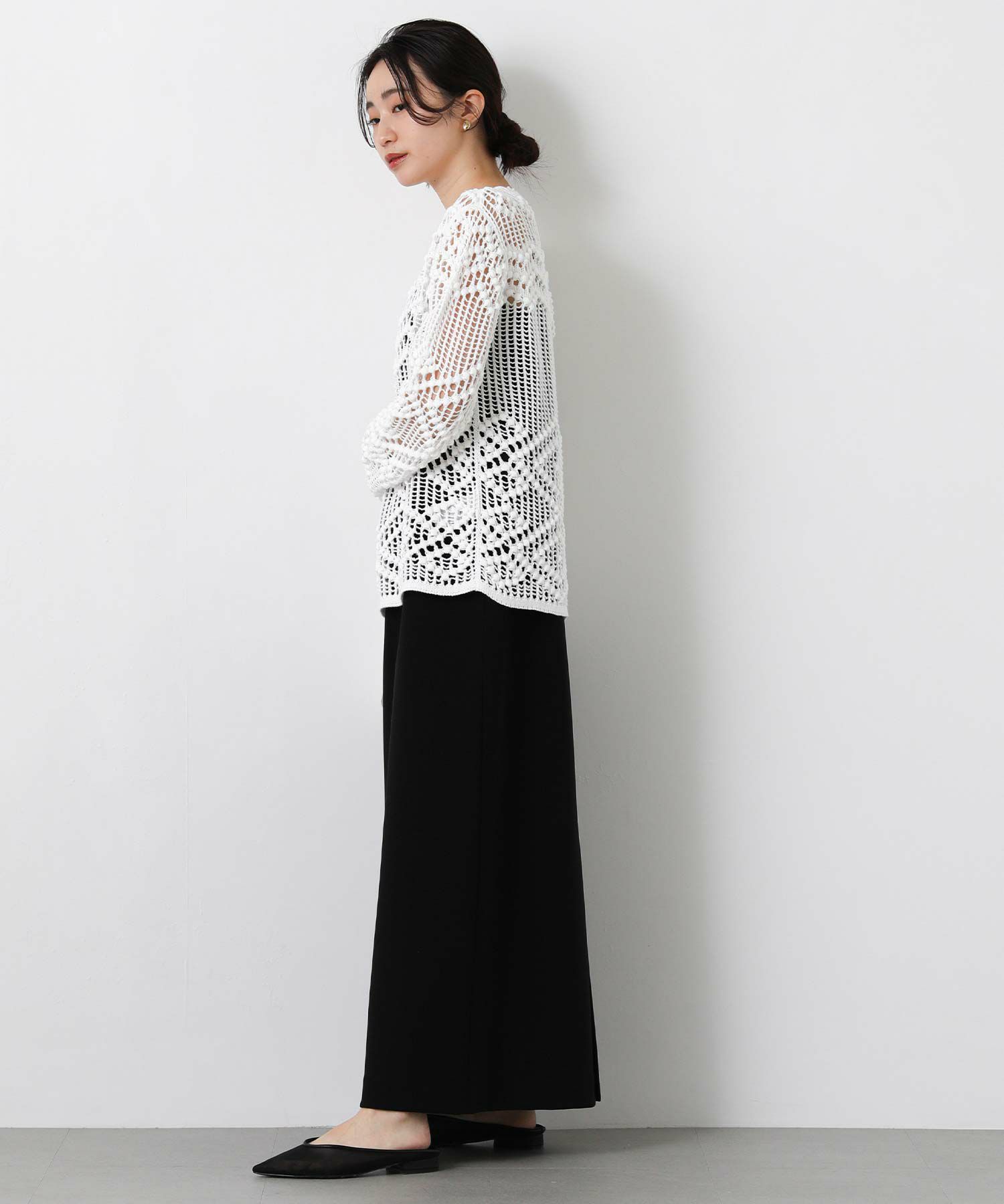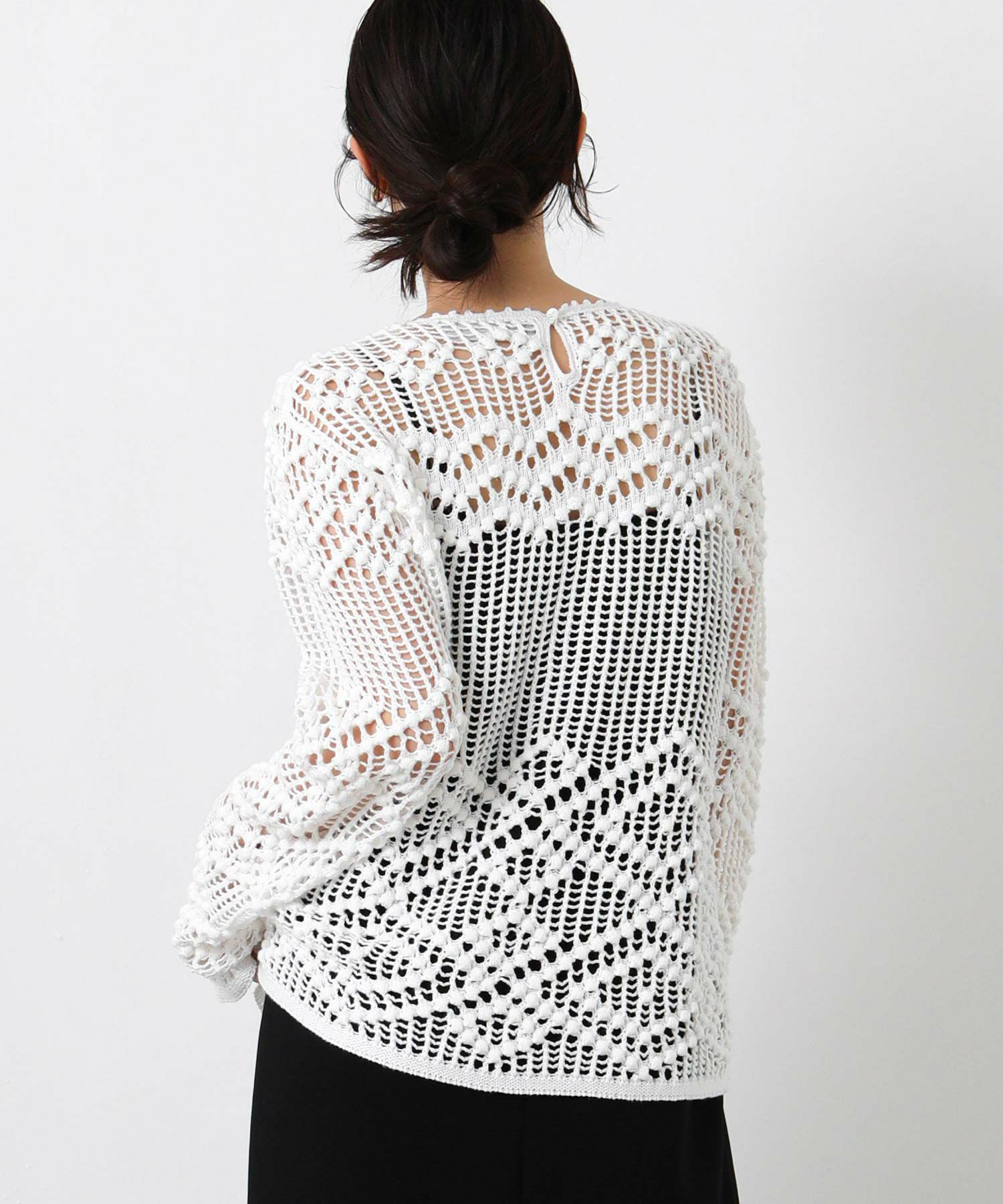 【IRONING(アイロニング)】から、繊細な柄にこだわったざっくり感が可愛いニットプルオーバーをセレクト。