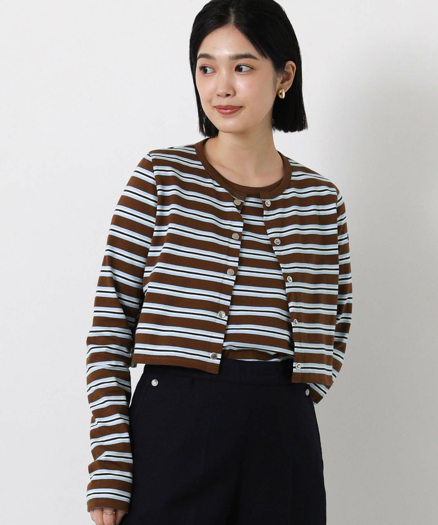 Leminor(ルミノア)から、コンパクトな丈感が今のバランスにちょうどいい、ボーダー柄のショートカーディガンをセレクト。