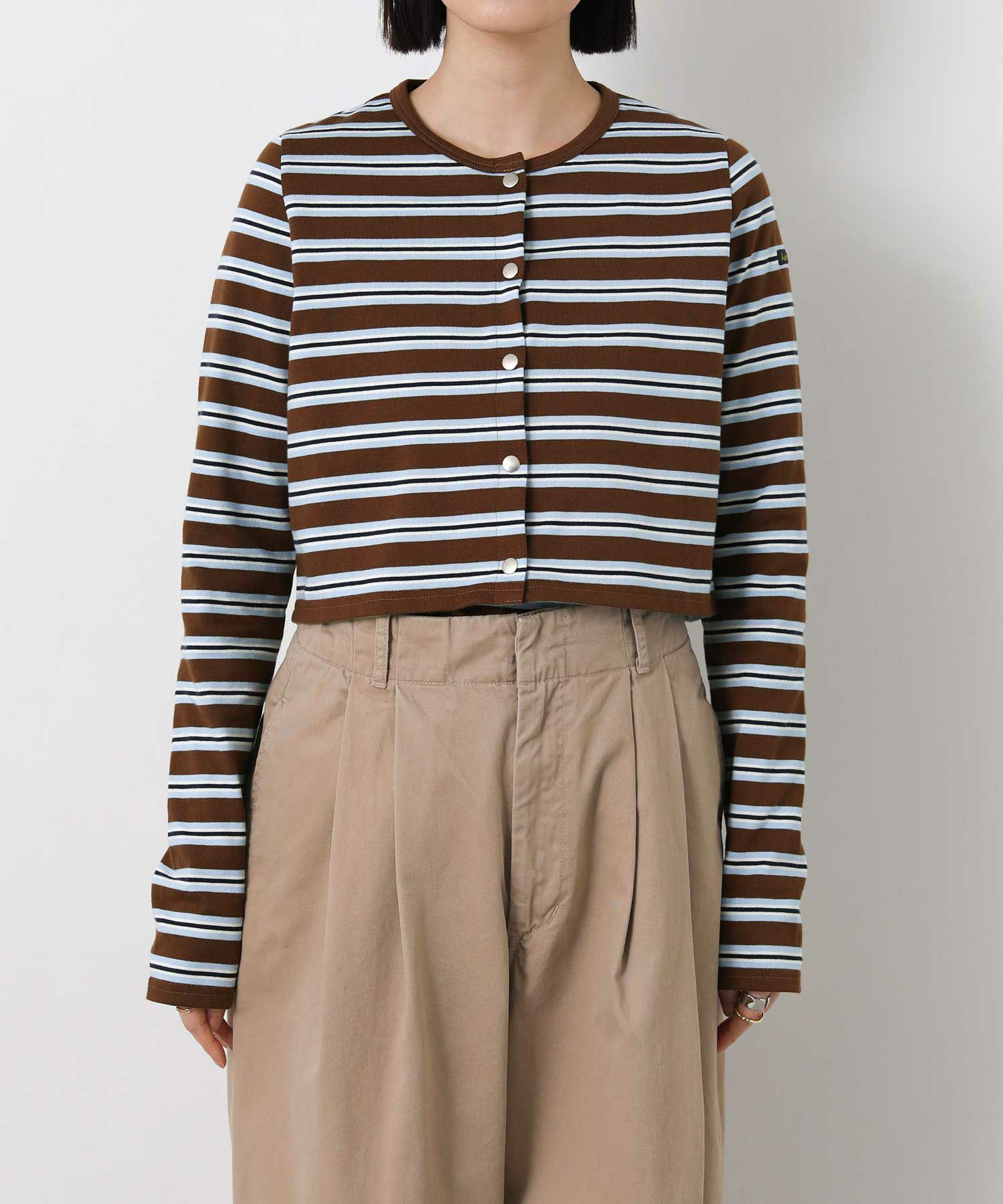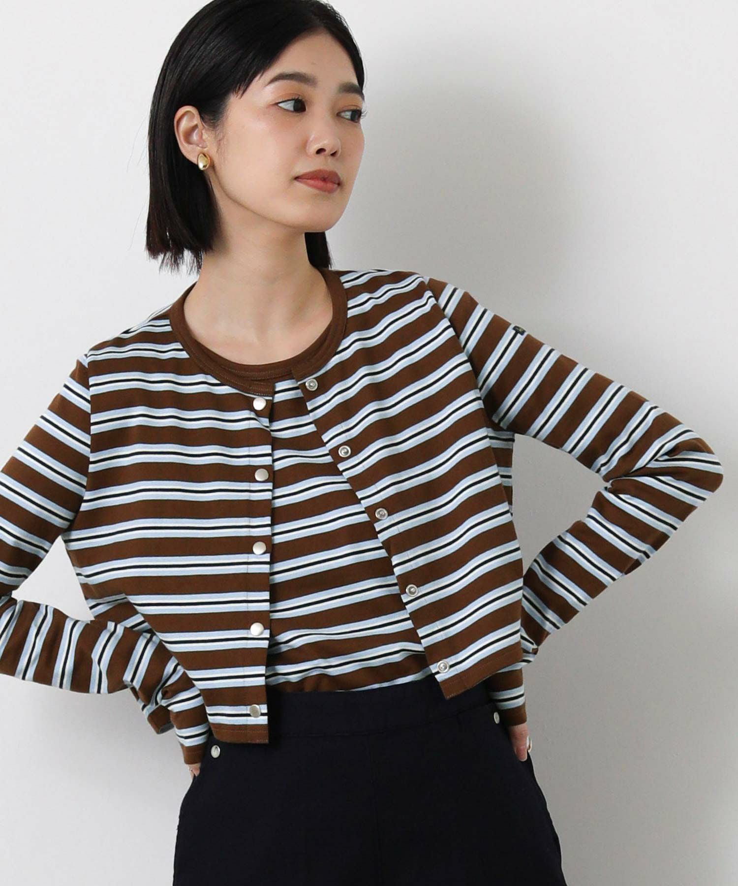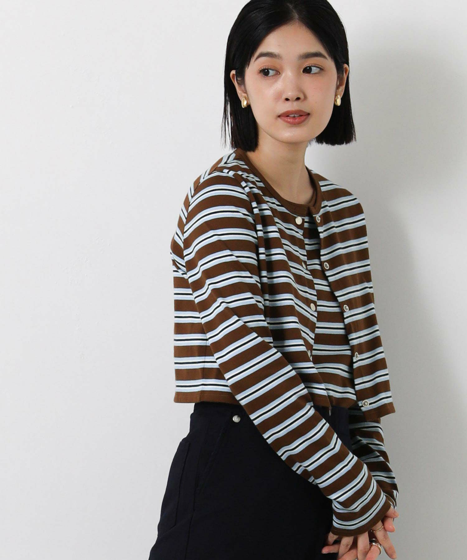 Leminor(ルミノア)から、コンパクトな丈感が今のバランスにちょうどいい、ボーダー柄のショートカーディガンをセレクト。
