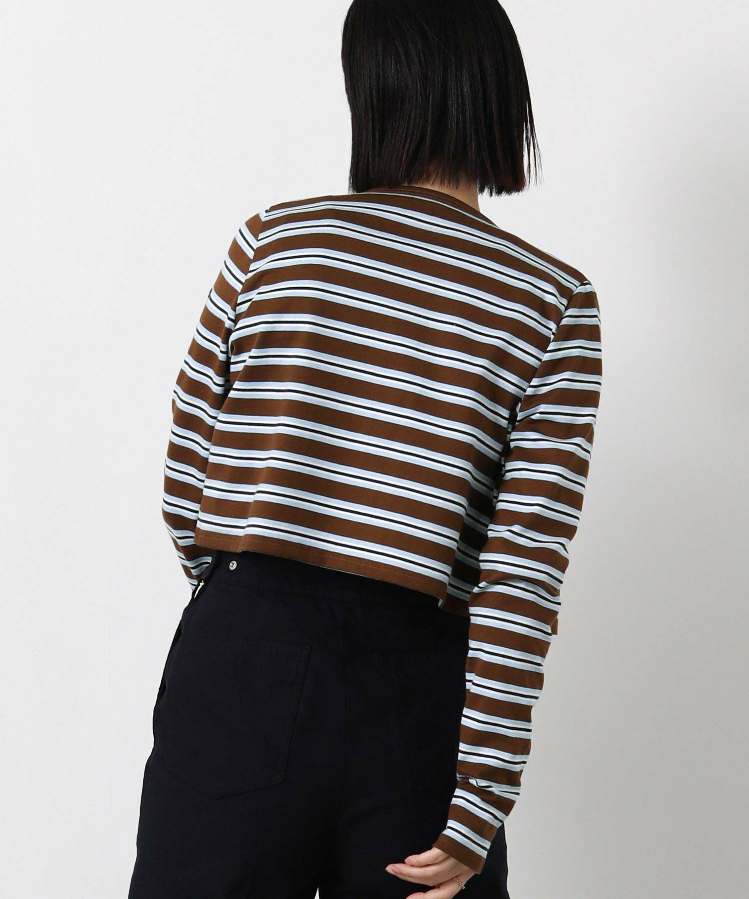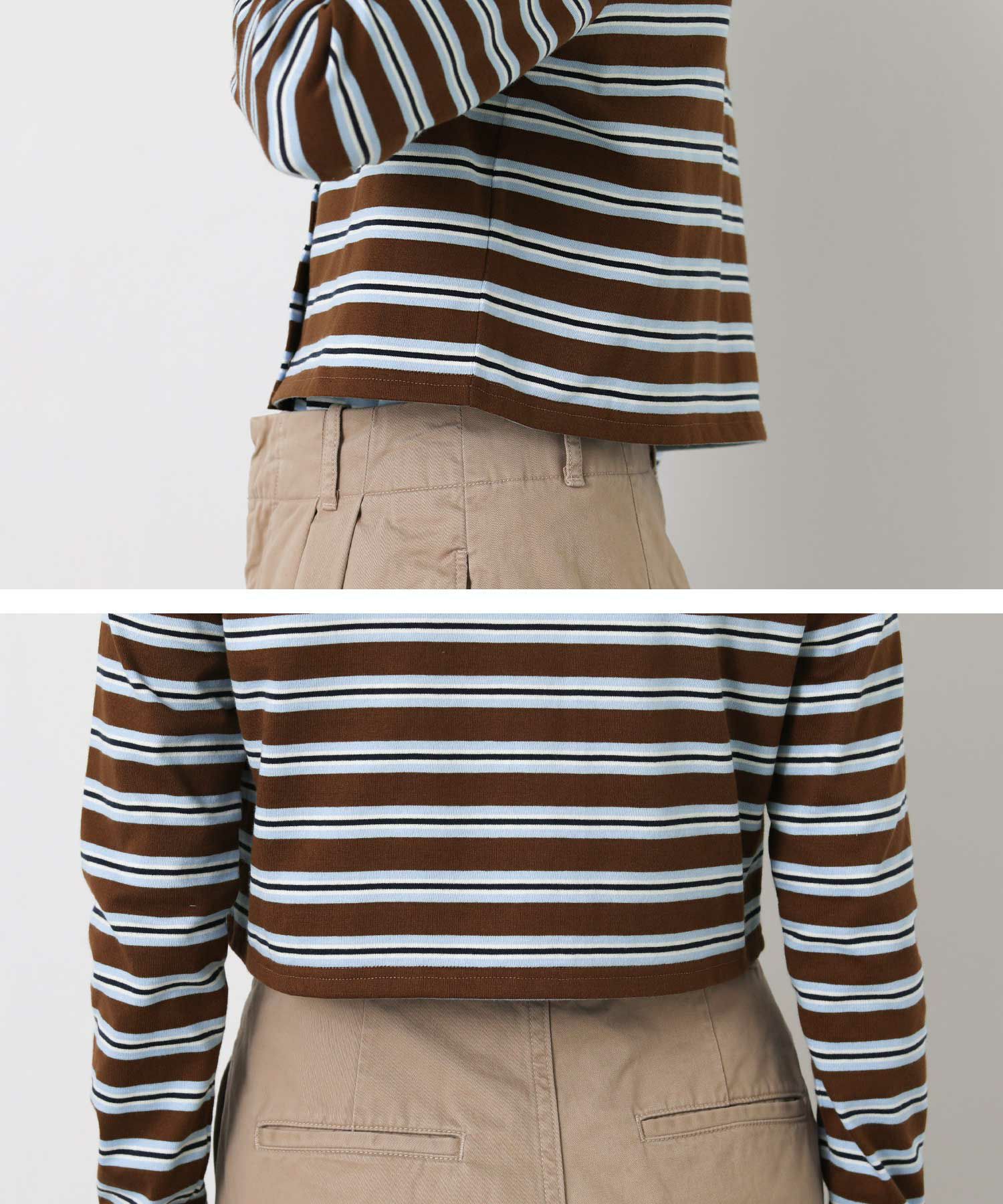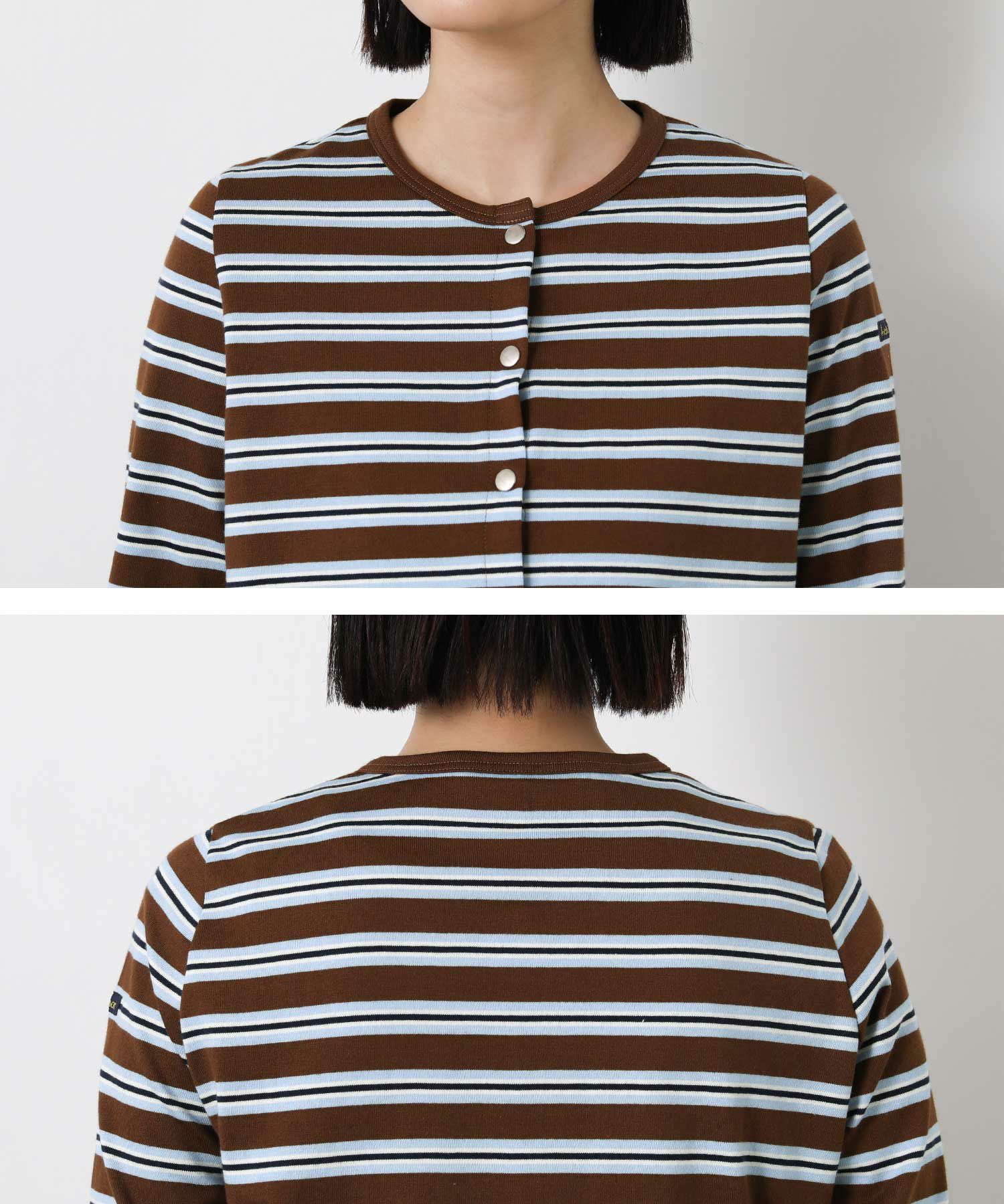 Leminor(ルミノア)から、コンパクトな丈感が今のバランスにちょうどいい、ボーダー柄のショートカーディガンをセレクト。