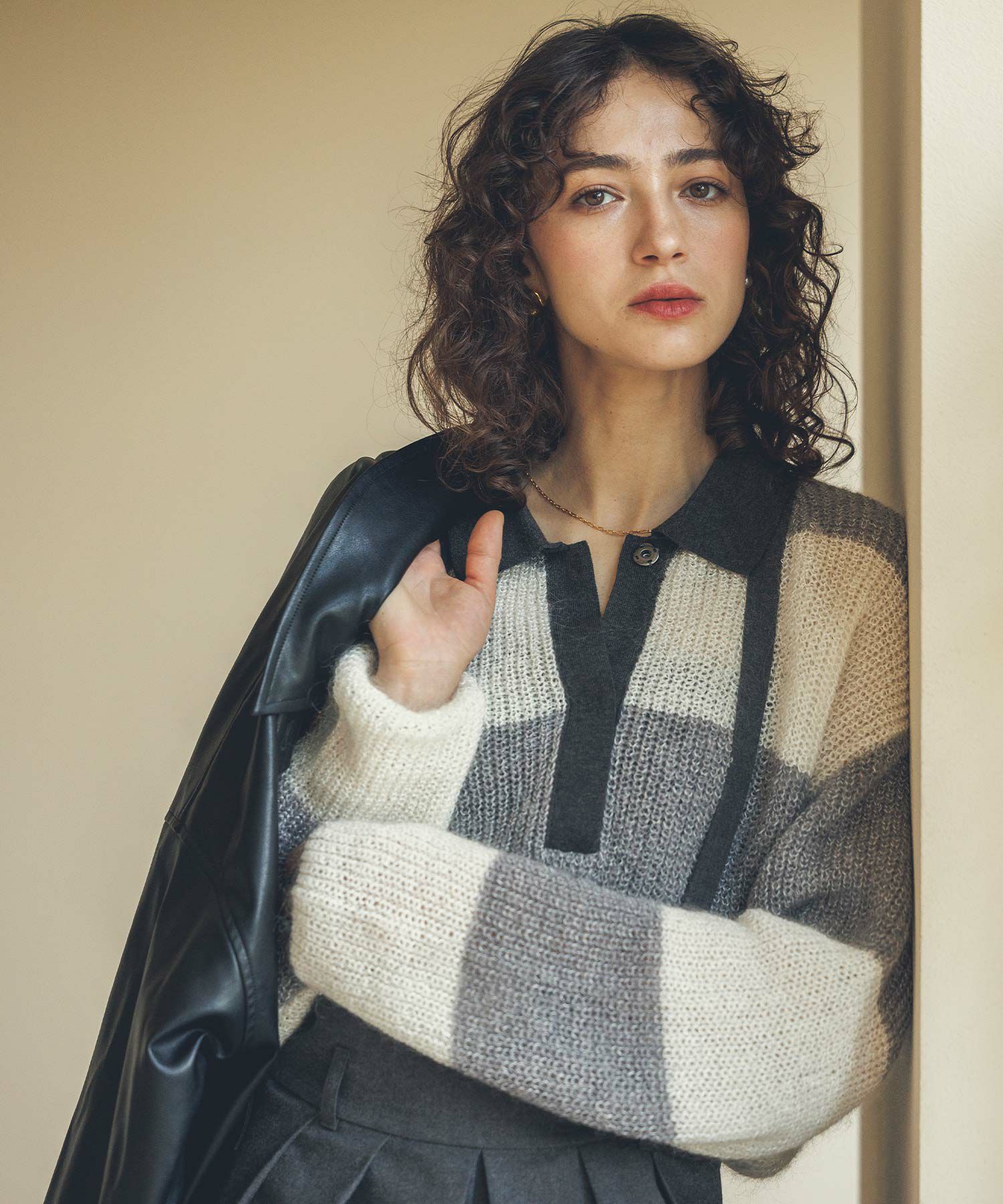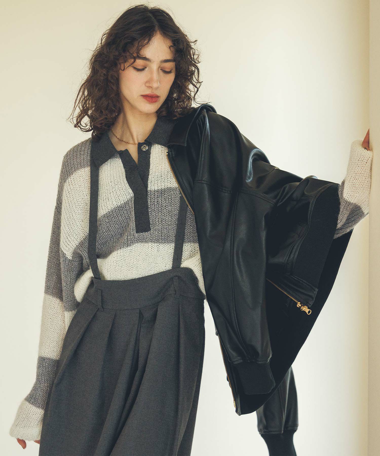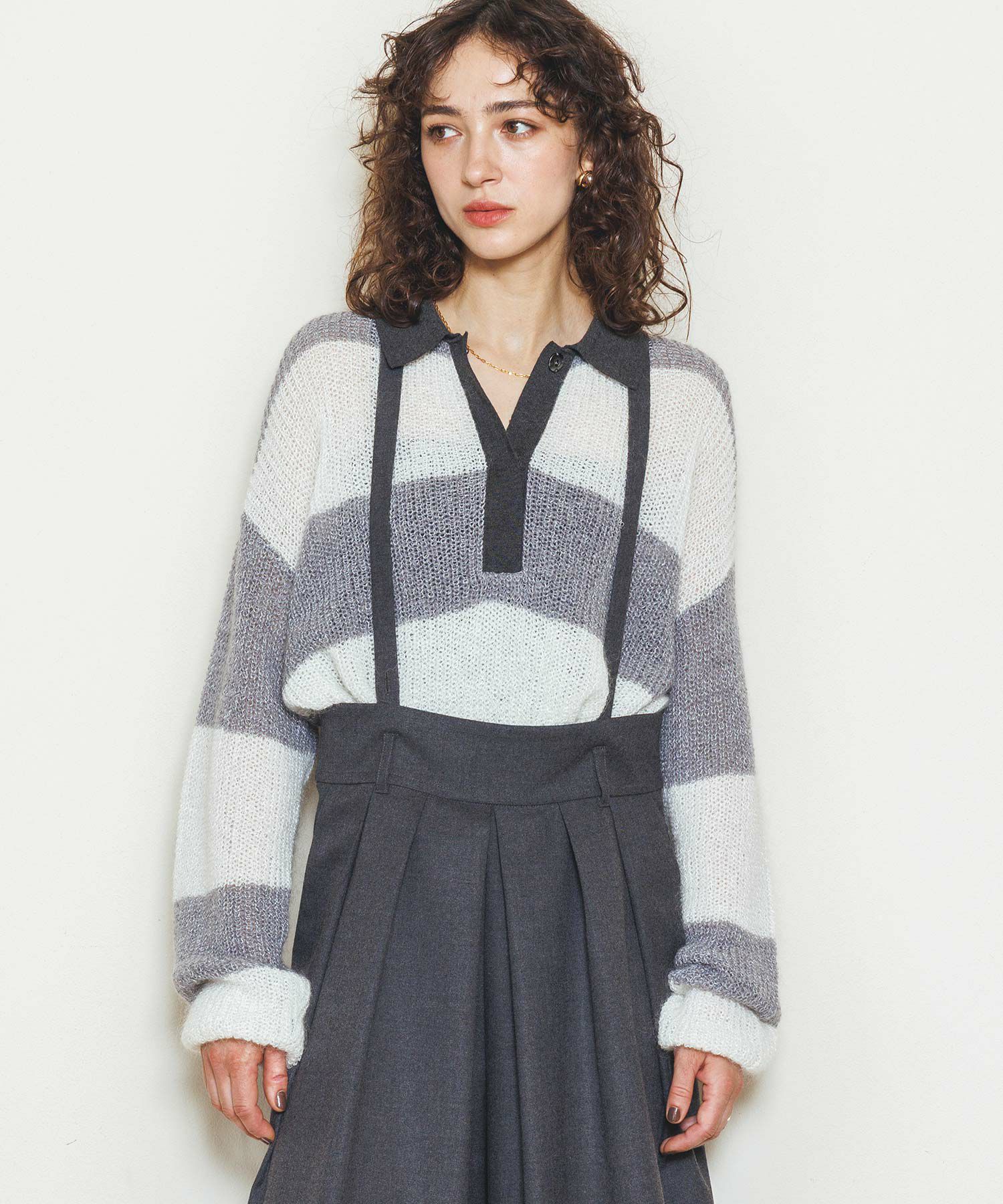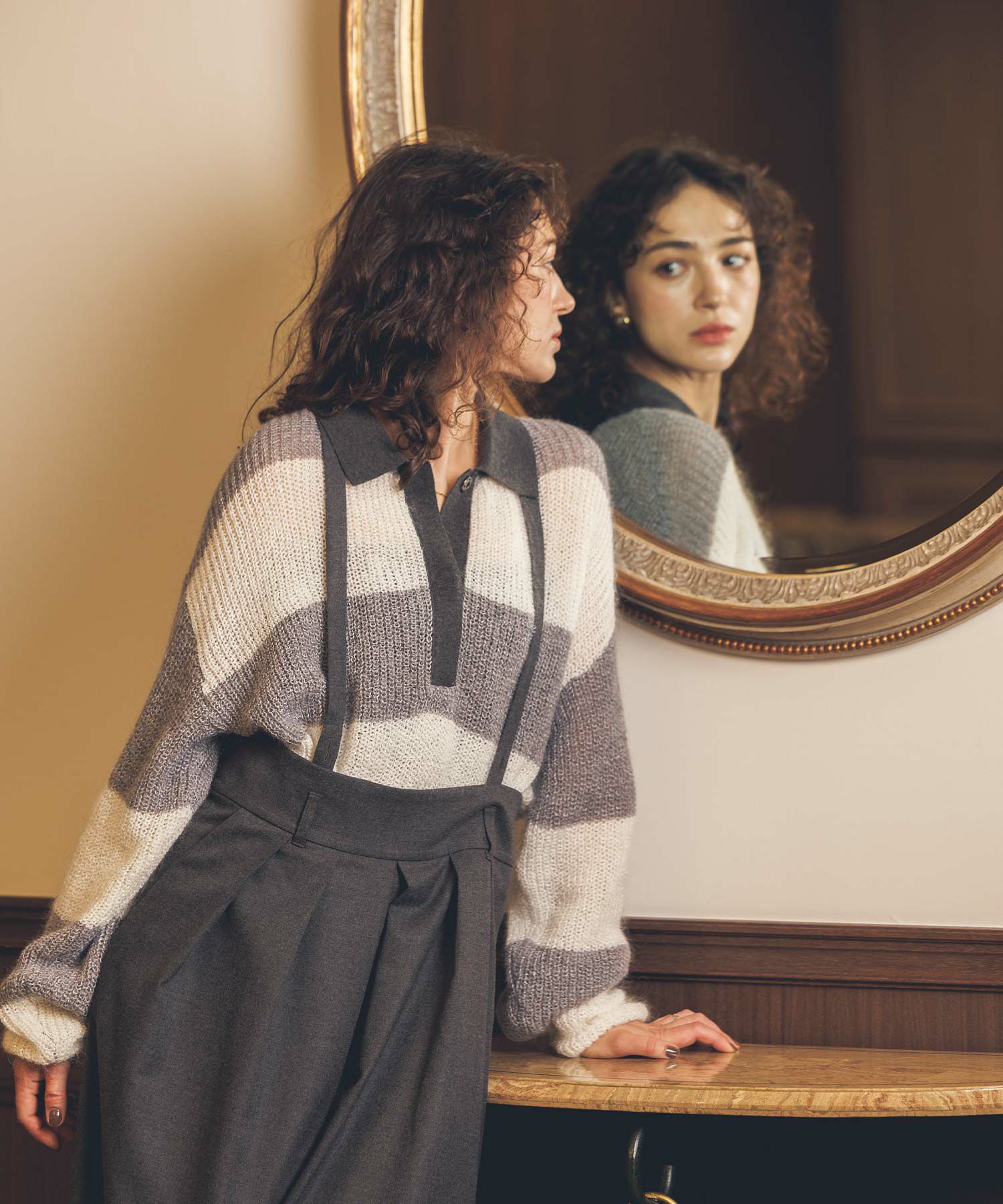 【Munich(ミューニック)】から、ふわっとエアリーで軽い編地と太ボーダーが目を惹くモヘアポロニットをセレクト。