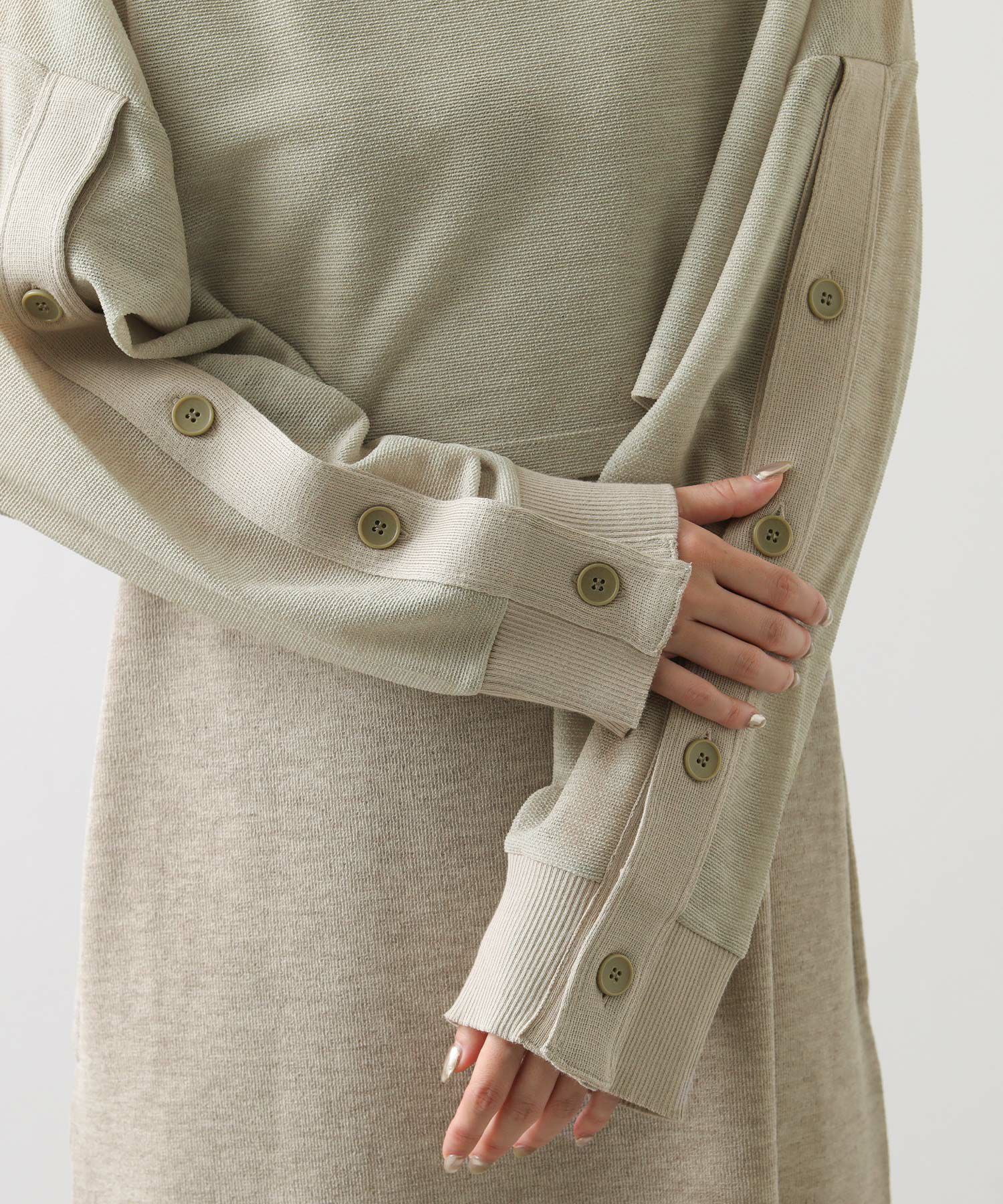 袖部分のボタンは開閉できるデザインもポイントで、開けてラフな袖元にアレンジもできます。