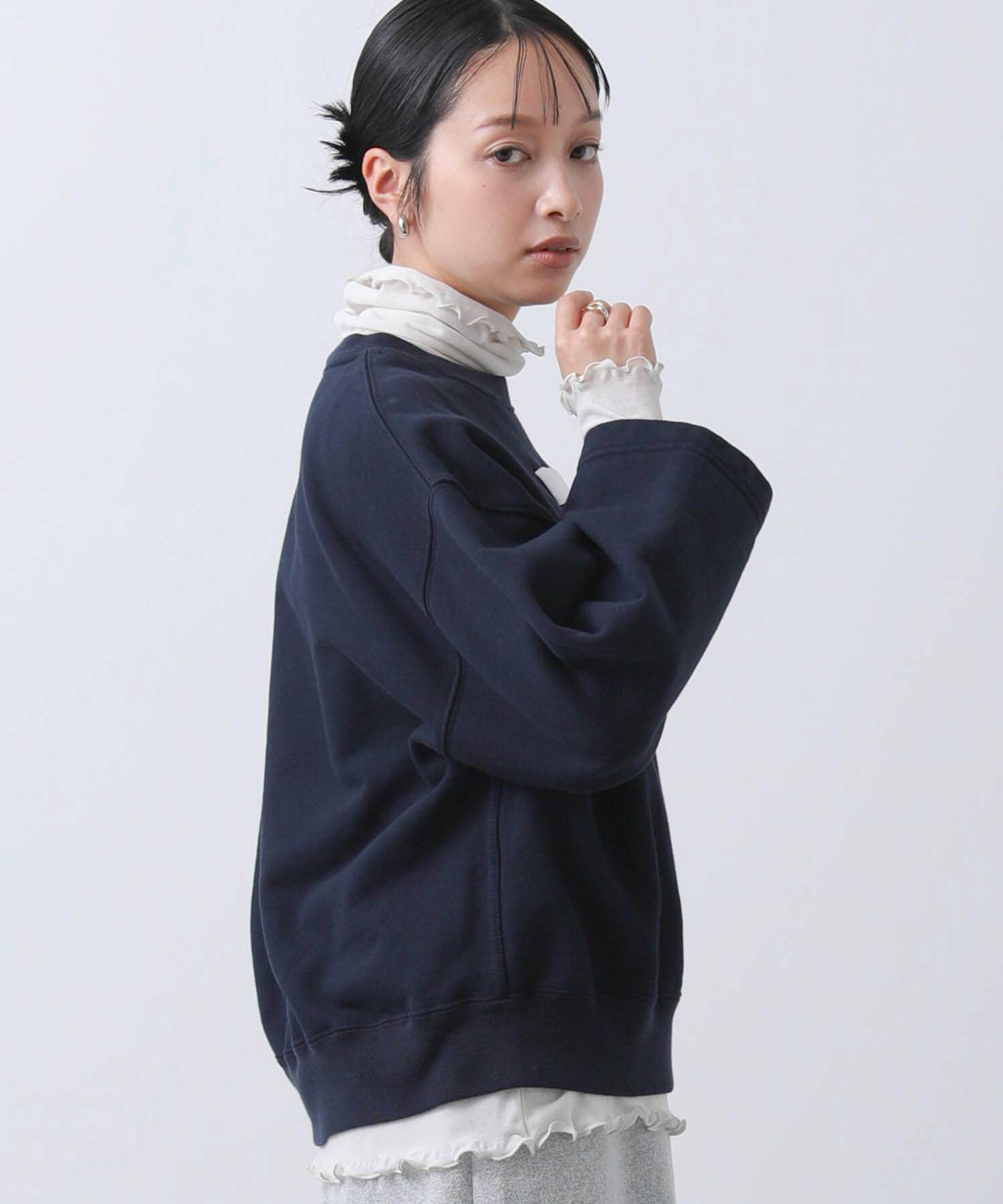しっかりとした厚みのある裏パイルスウェットを使用し、プリント後に製品洗いをかけ、馴染んだ雰囲気に仕上げた一着。