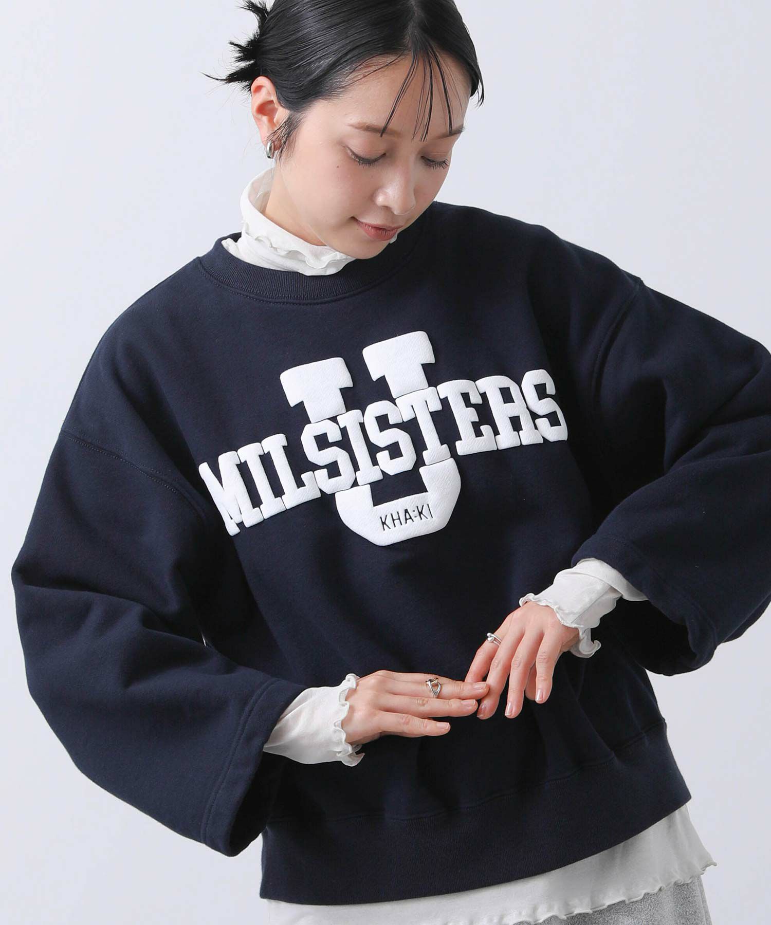 【KHA:KI/カーキ】から、カレッジロゴを立体感のある発砲プリントで表現したスウェットをセレクト。