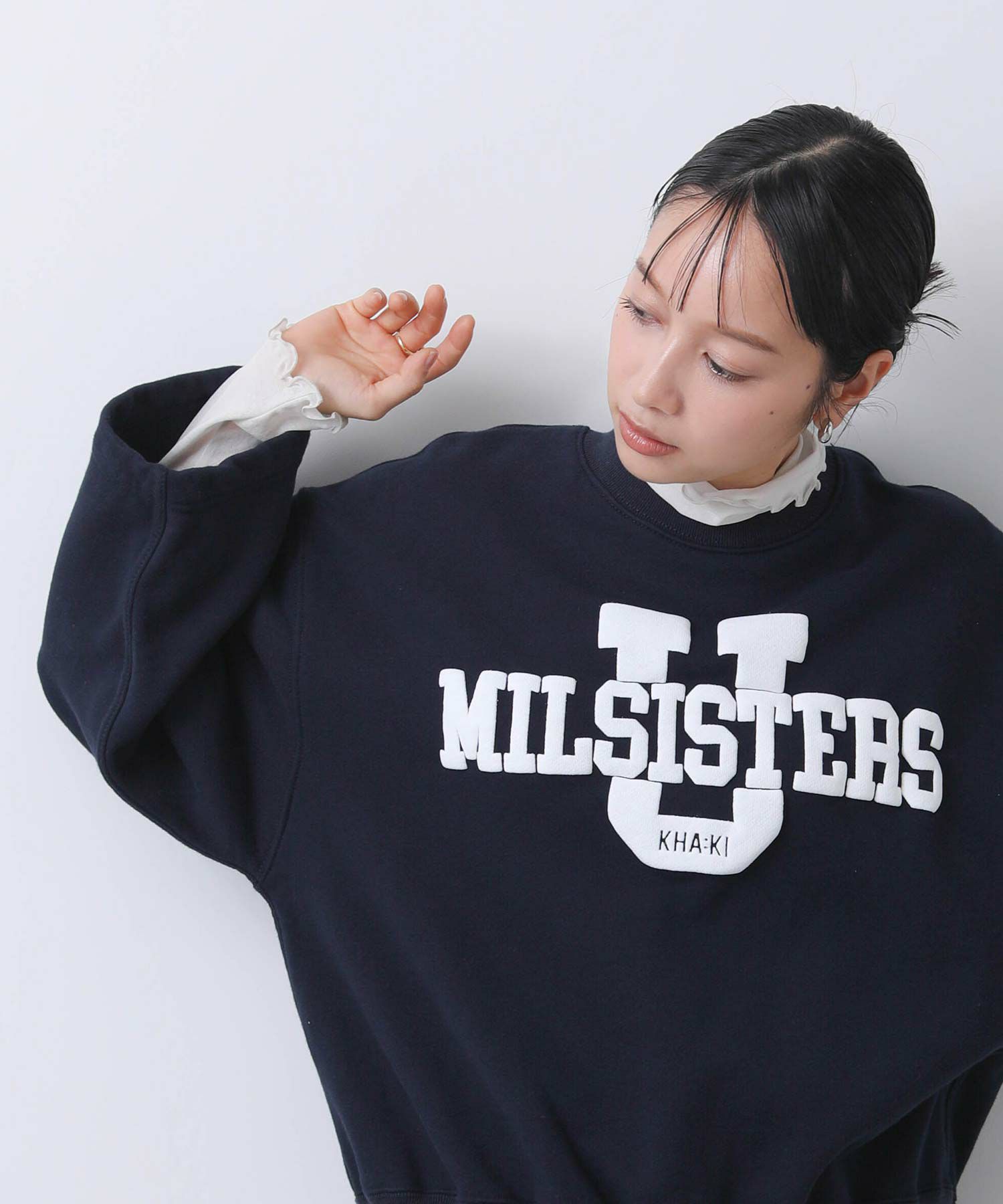 【KHA:KI/カーキ】から、カレッジロゴを立体感のある発砲プリントで表現したスウェットをセレクト。