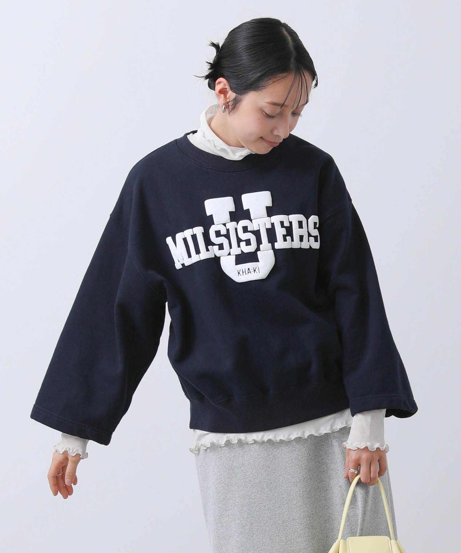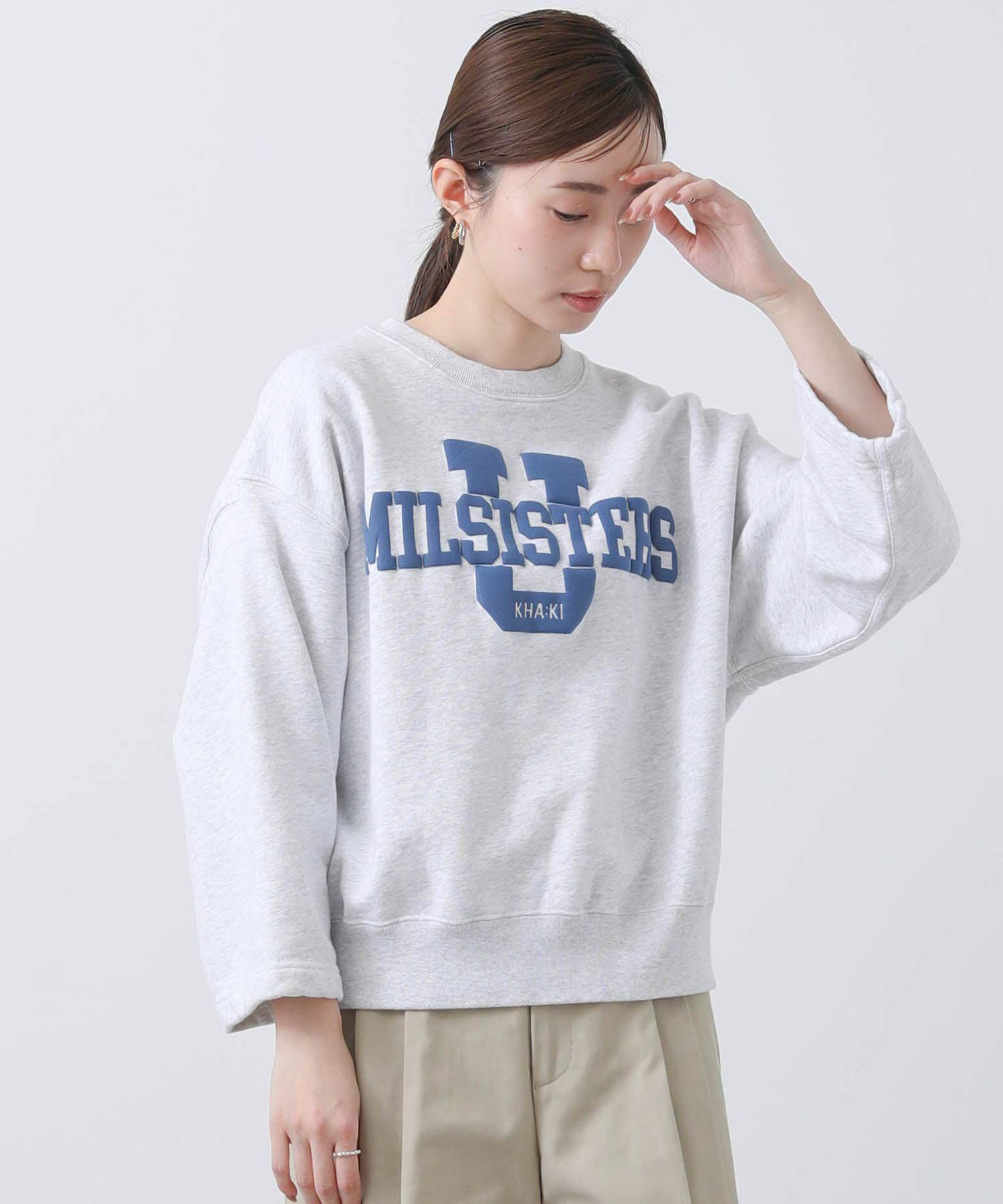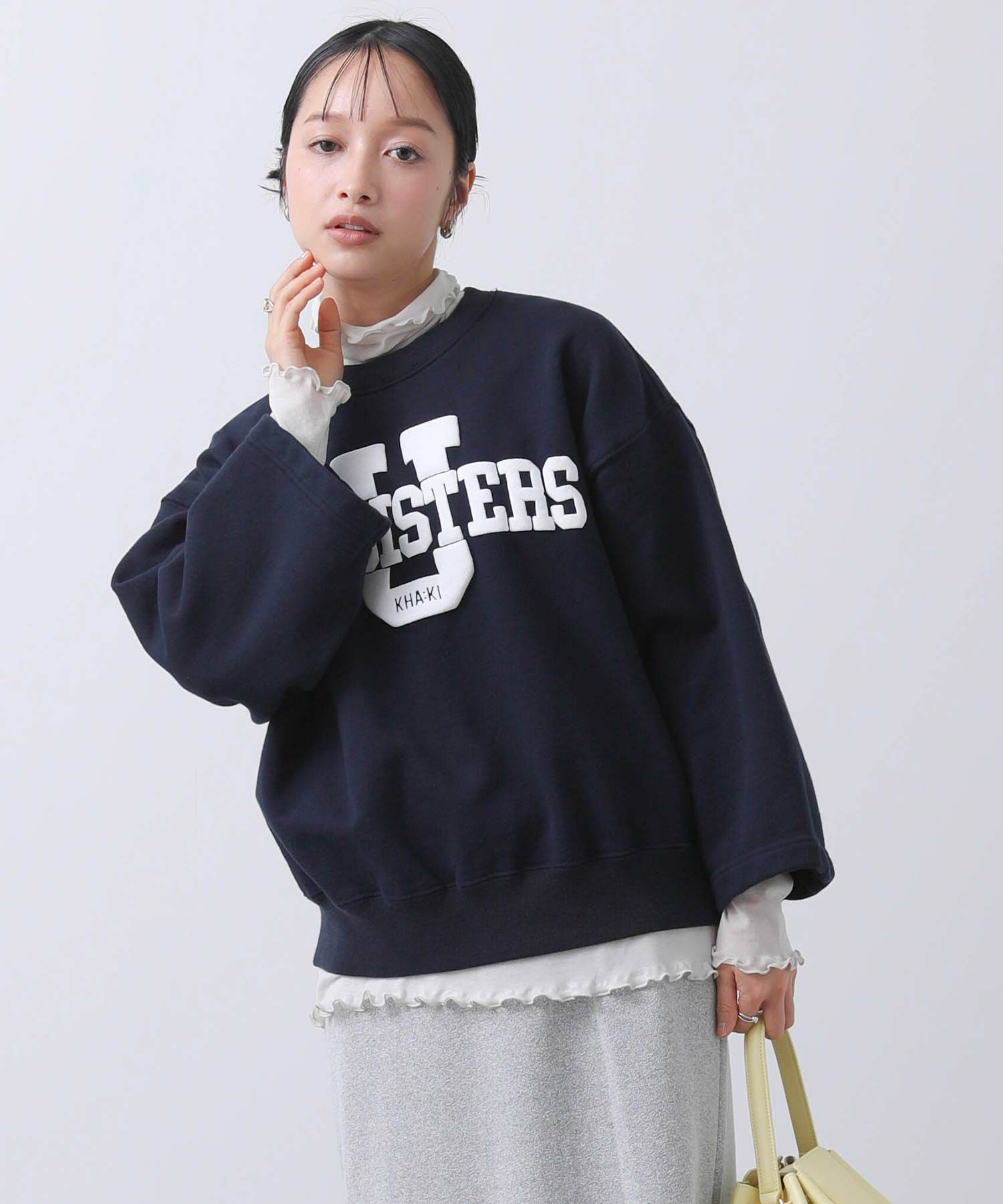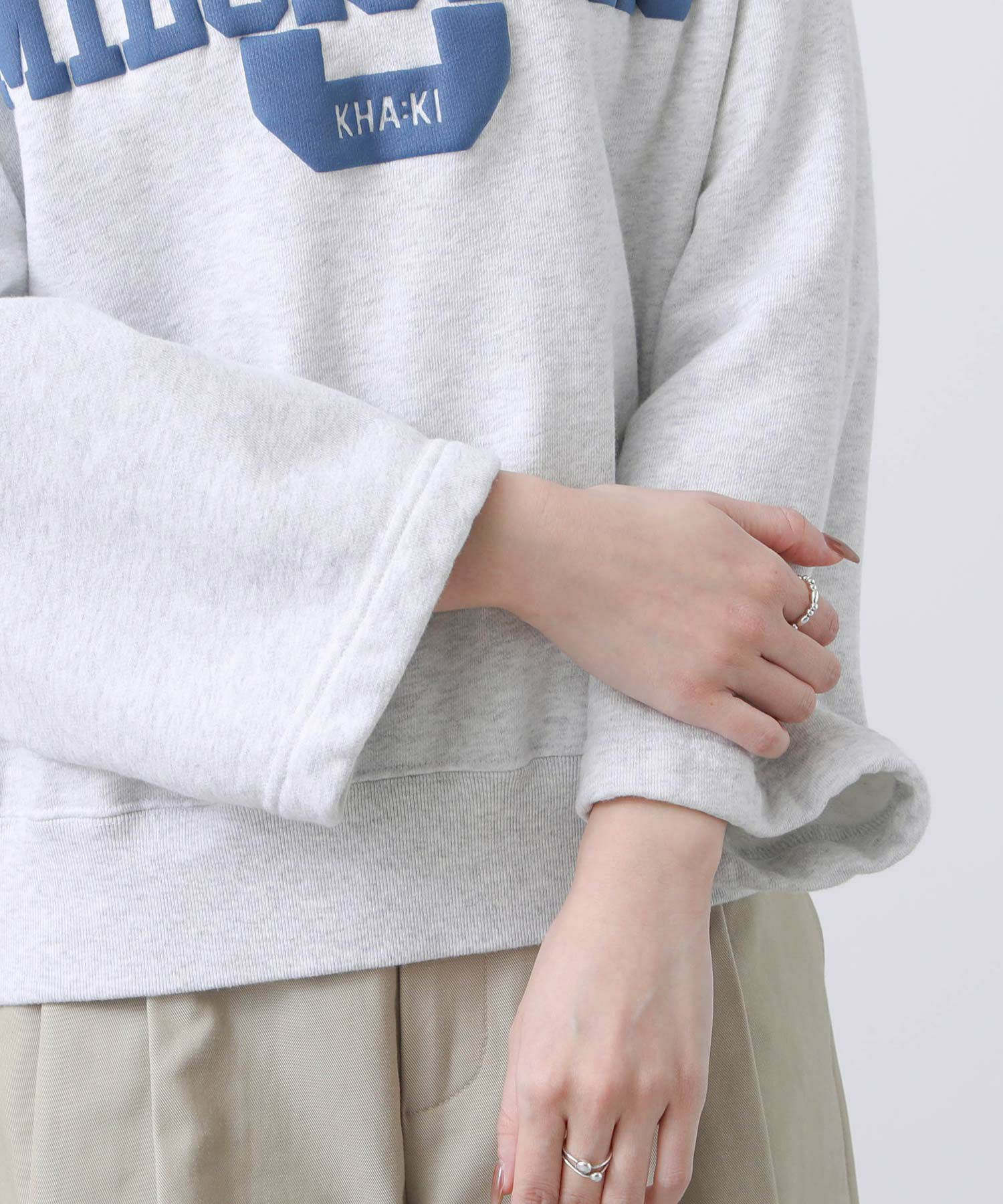 【KHA:KI/カーキ】から、カレッジロゴを立体感のある発砲プリントで表現したスウェットをセレクト。