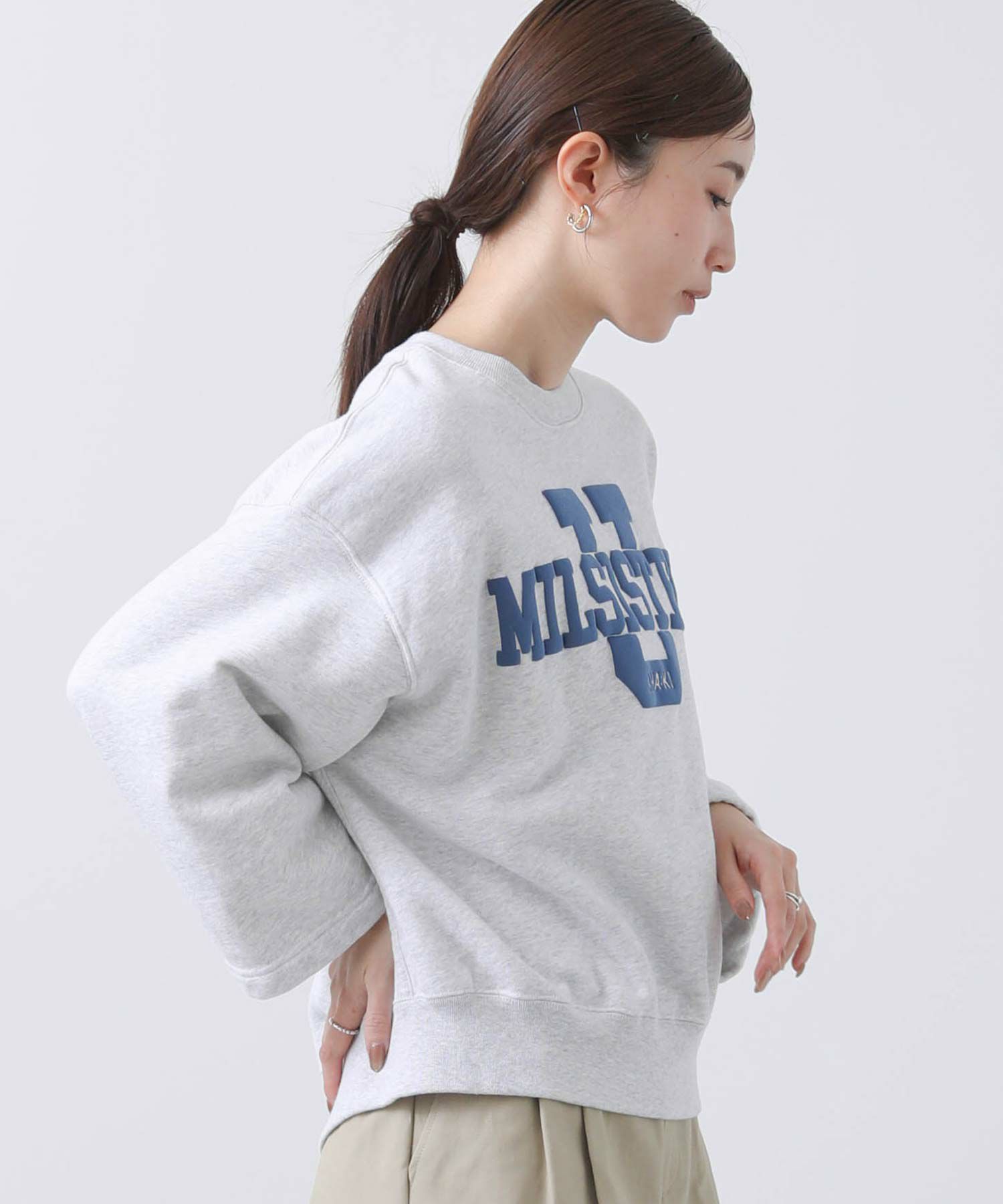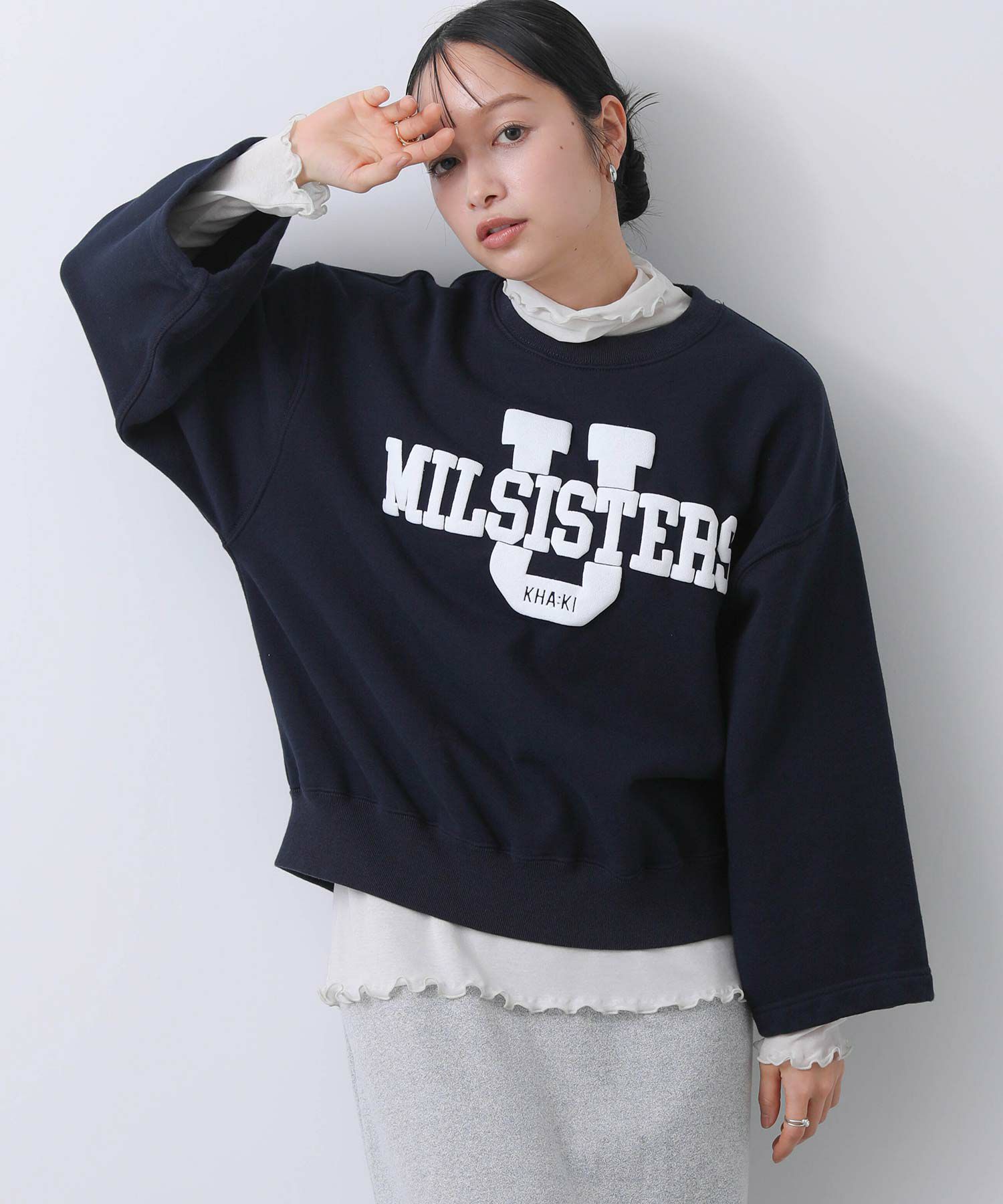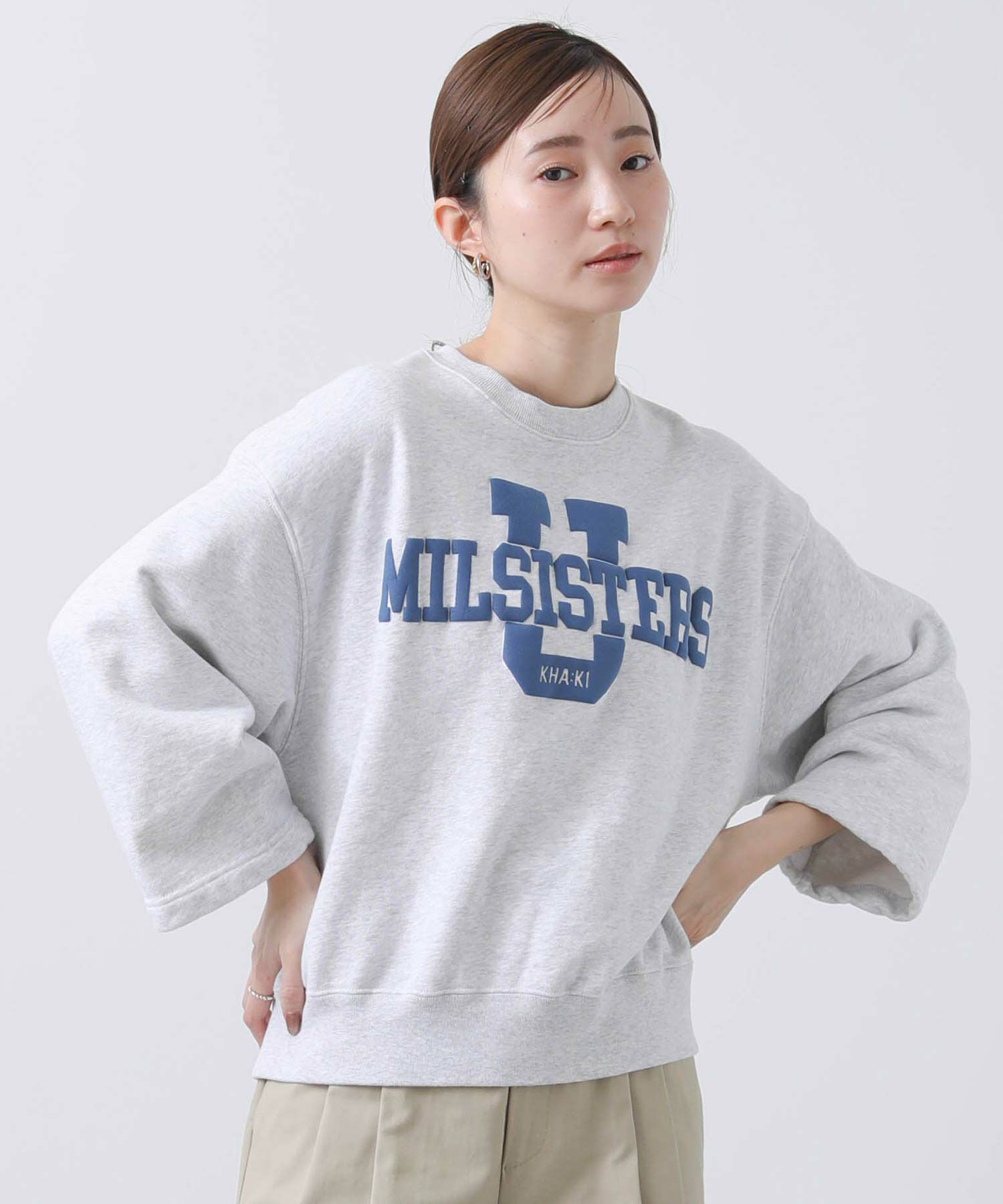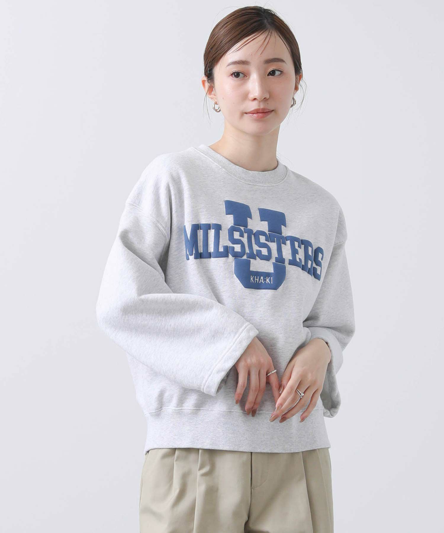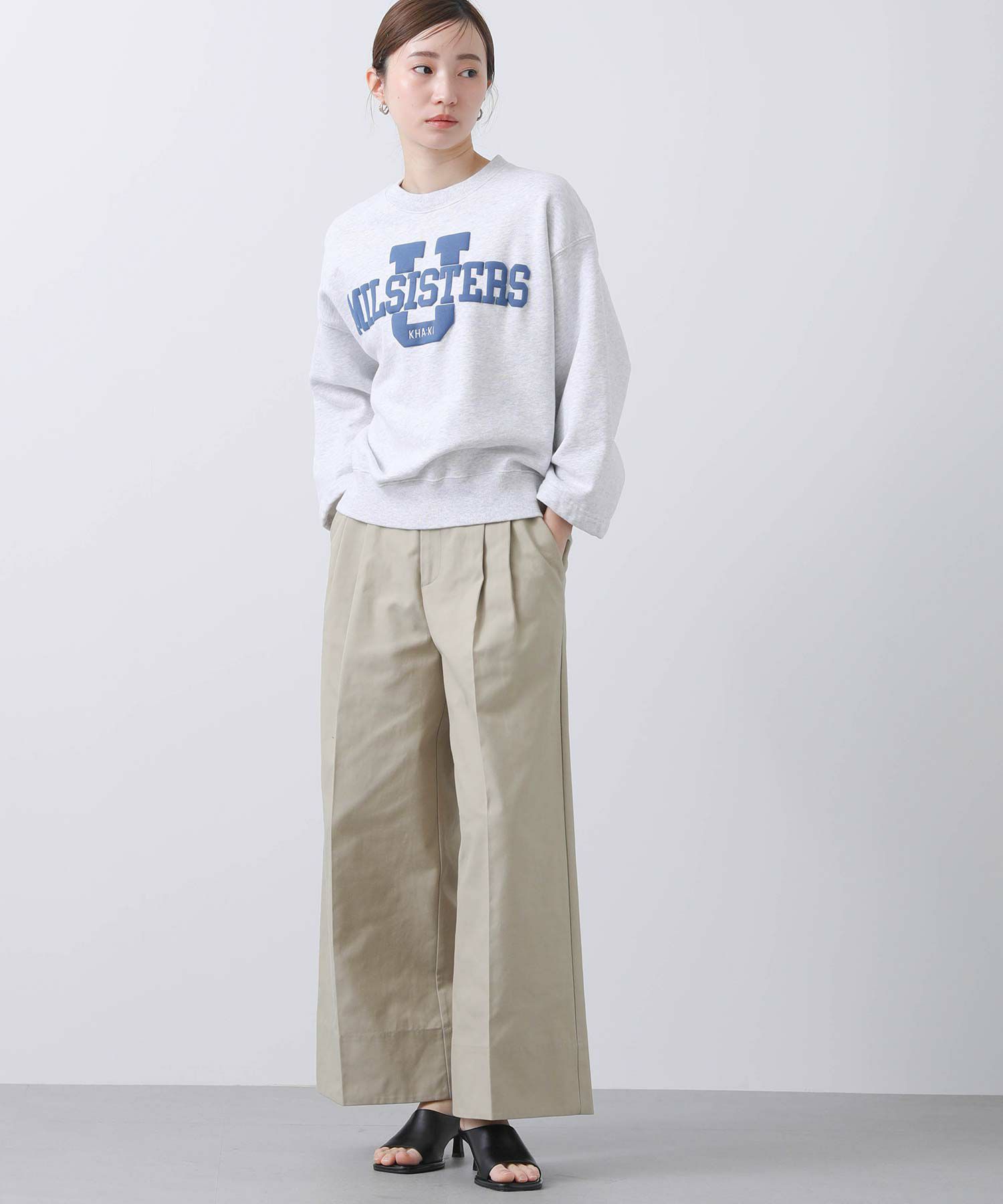 【KHA:KI/カーキ】から、カレッジロゴを立体感のある発砲プリントで表現したスウェットをセレクト。