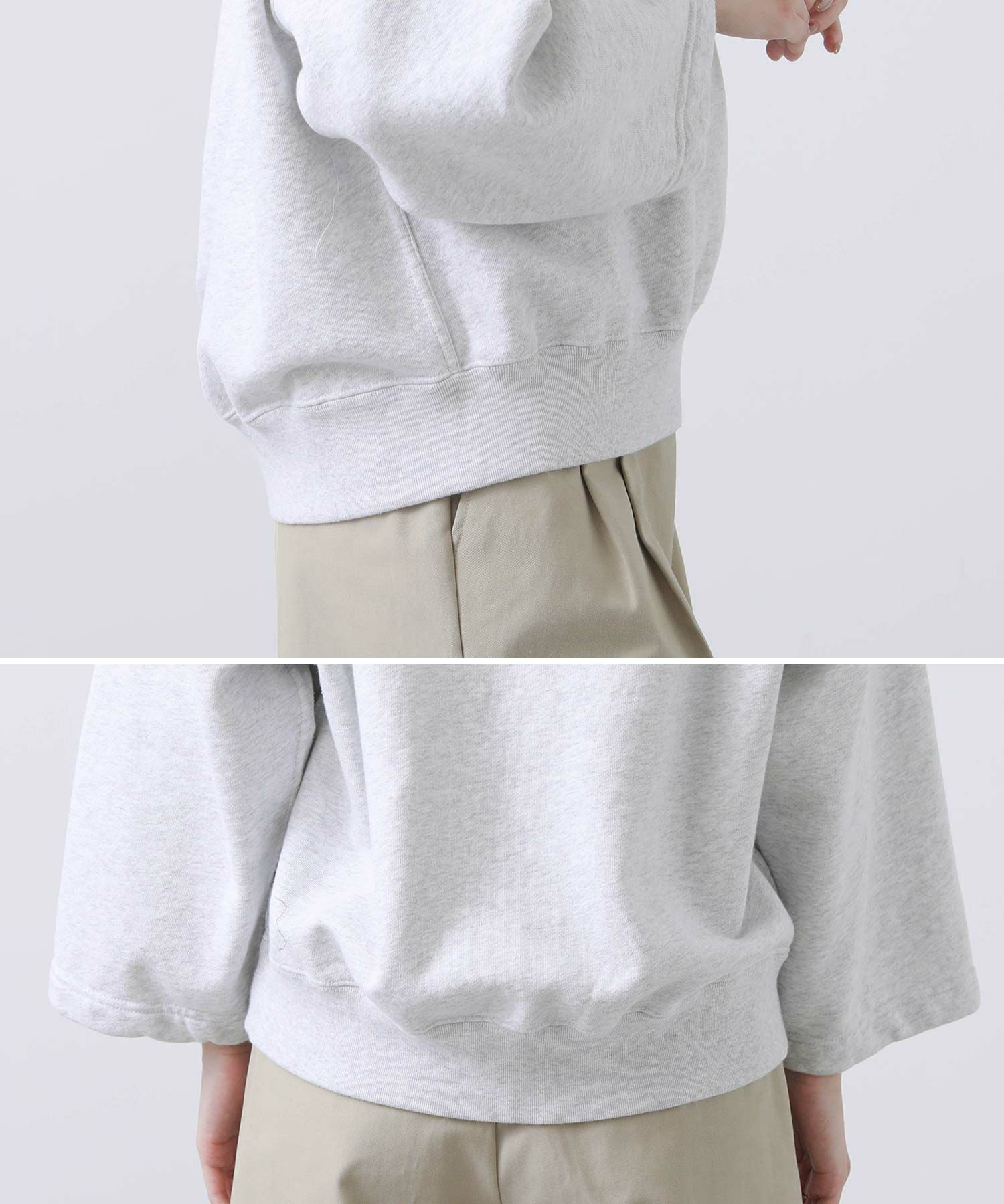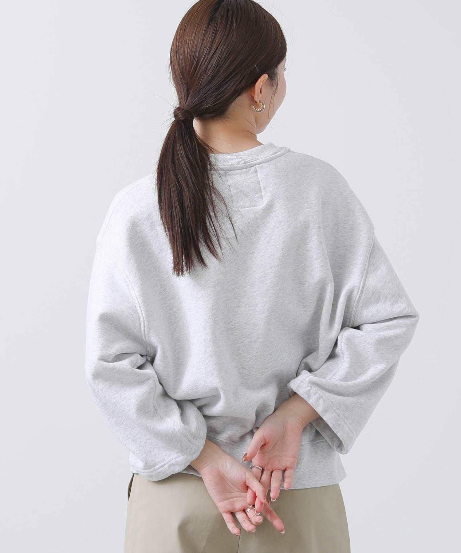 しっかりとした厚みのある裏パイルスウェットを使用し、プリント後に製品洗いをかけ、馴染んだ雰囲気に仕上げた一着。