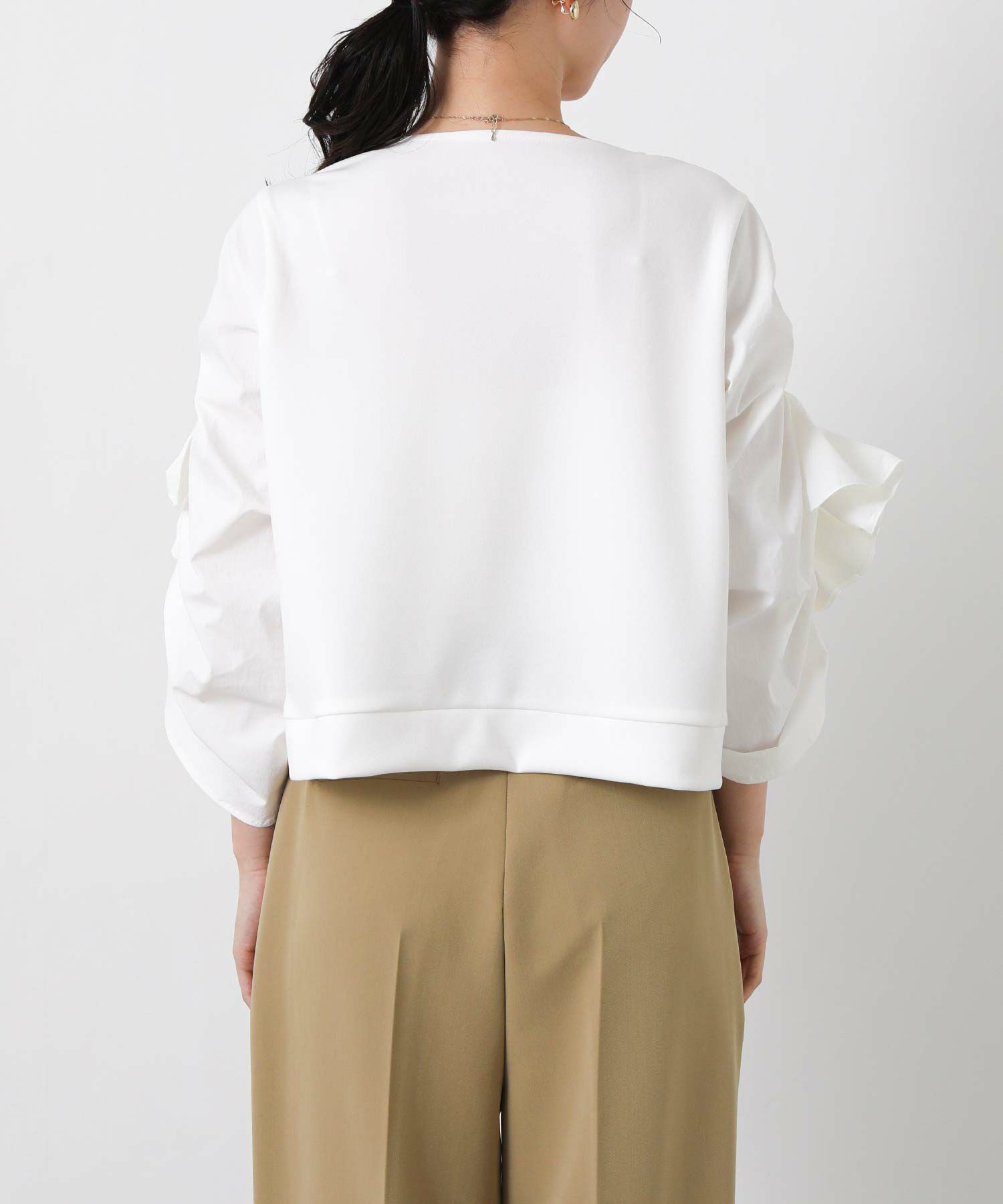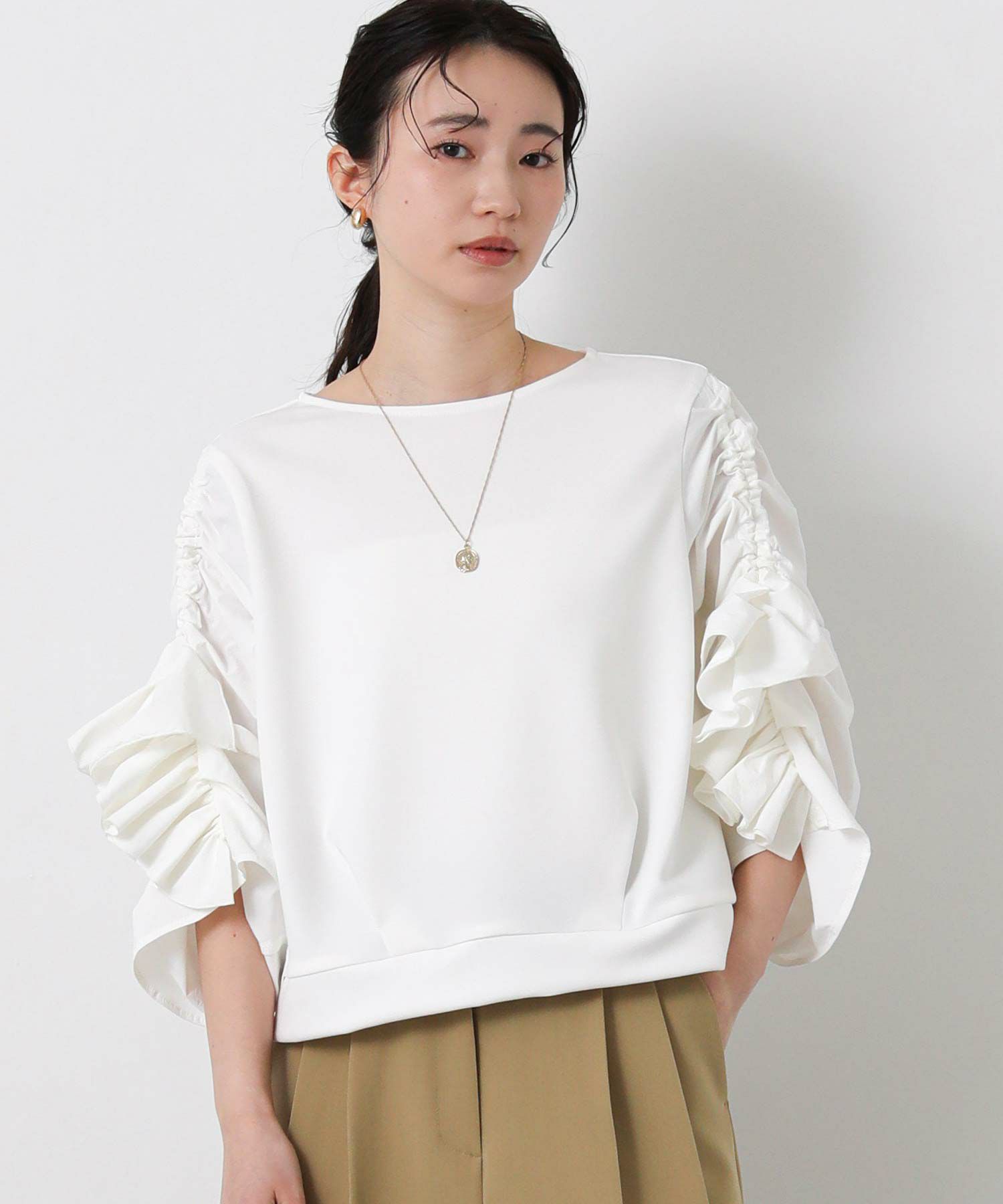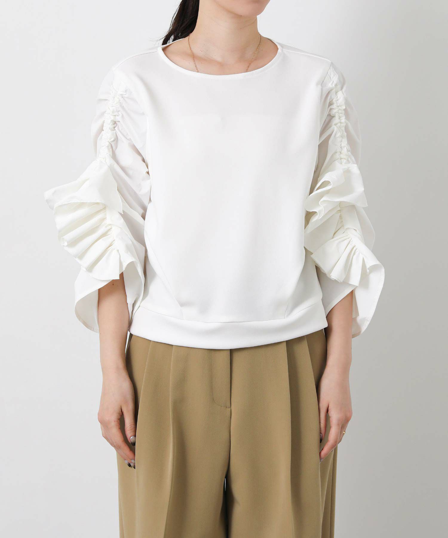 【MARECHALTERRE(マルシャルテル)】から、フェミニンなフリルギャザーが華やかに揺れるボリューム袖が特徴のプルオーバーをセレクト。