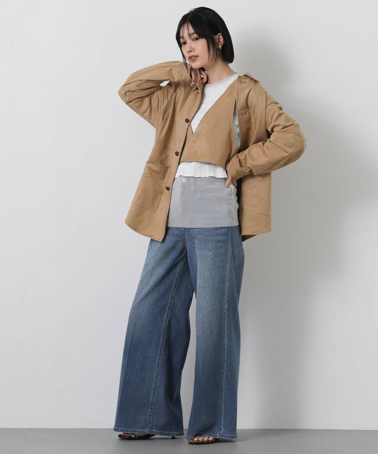 ※着用画像は撮影状況、光の当たり具合で色みが違って見える場合がございます。実際の色みについては、画像一覧の最後に掲載している詳細画像をご参照ください。