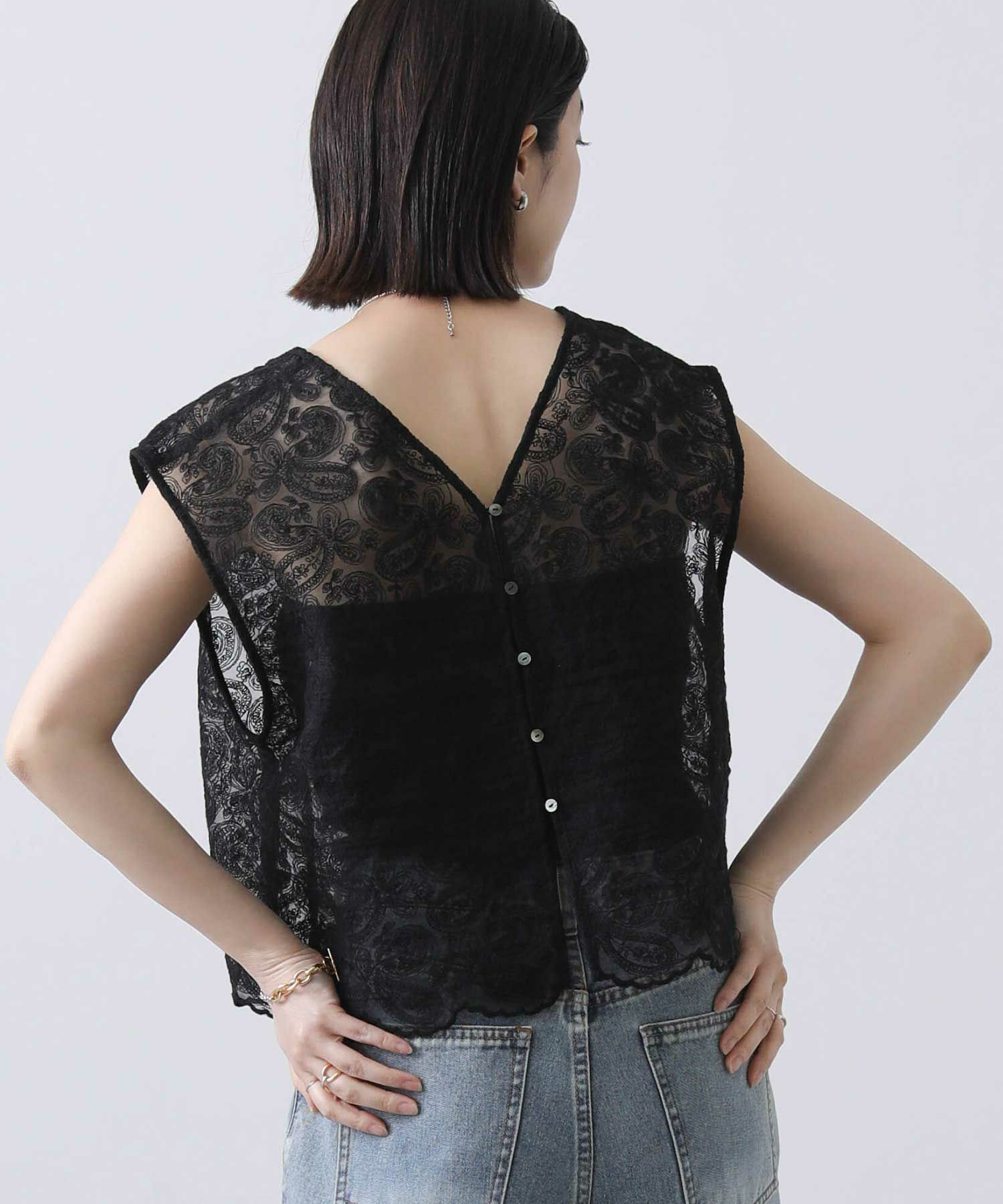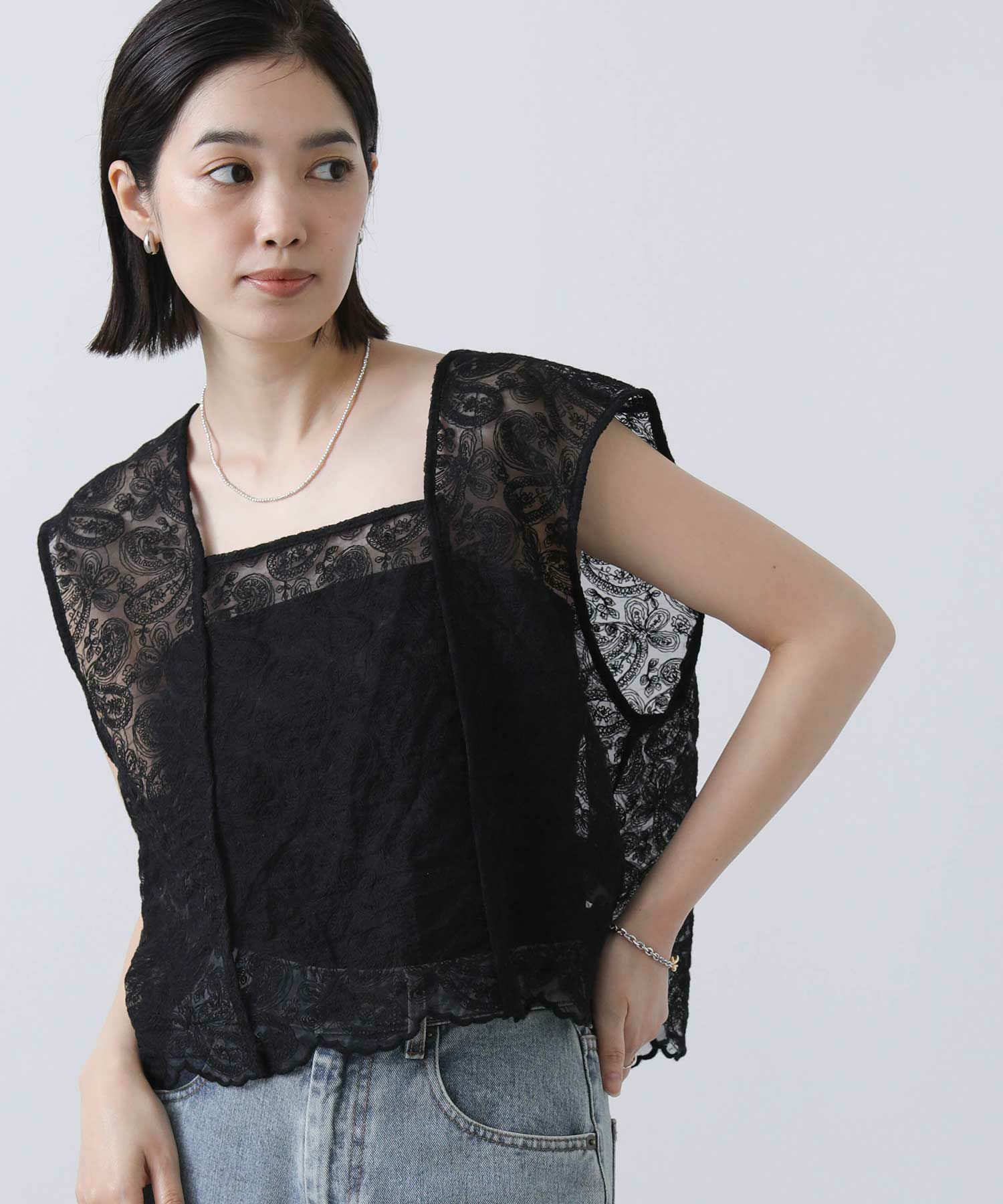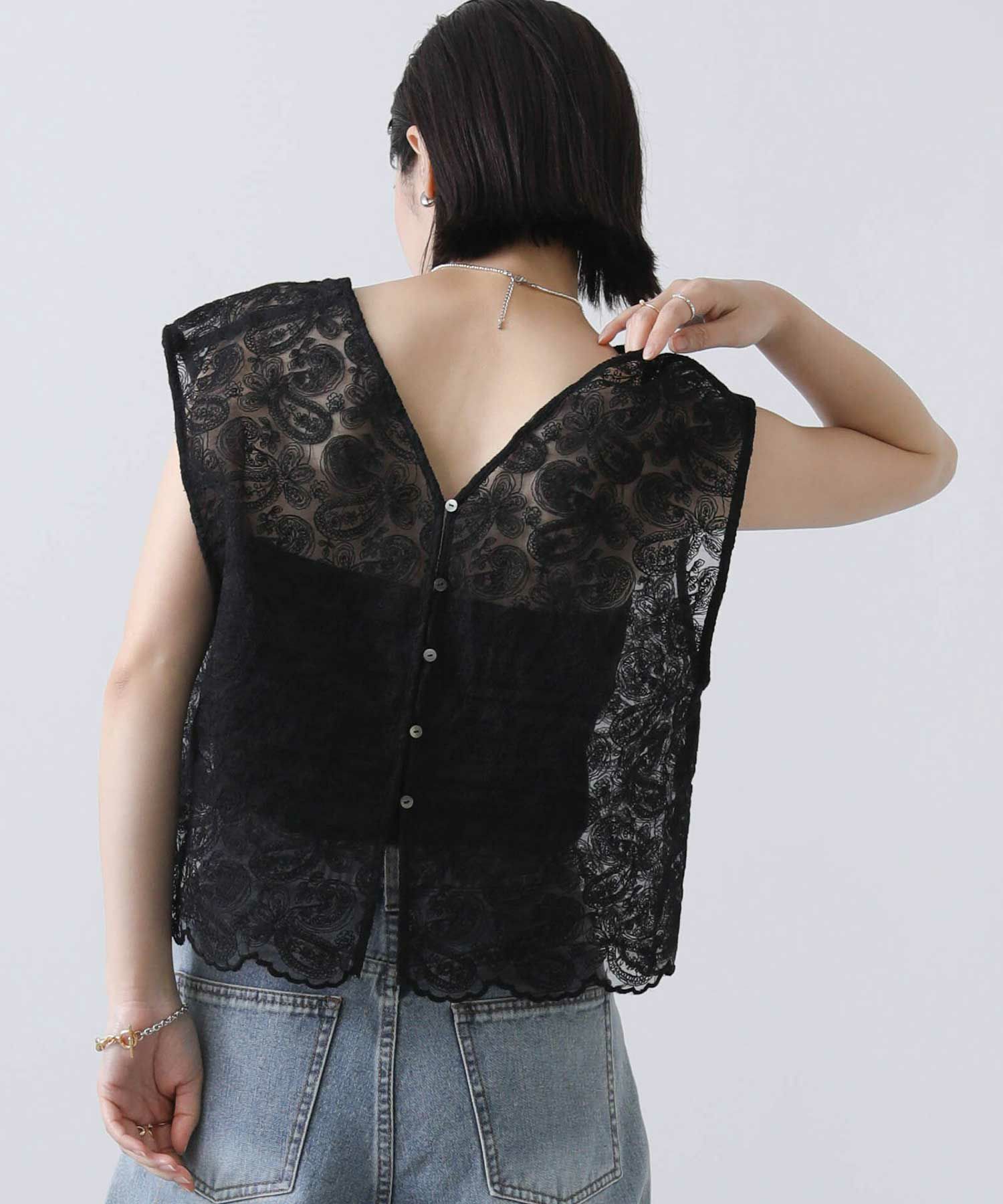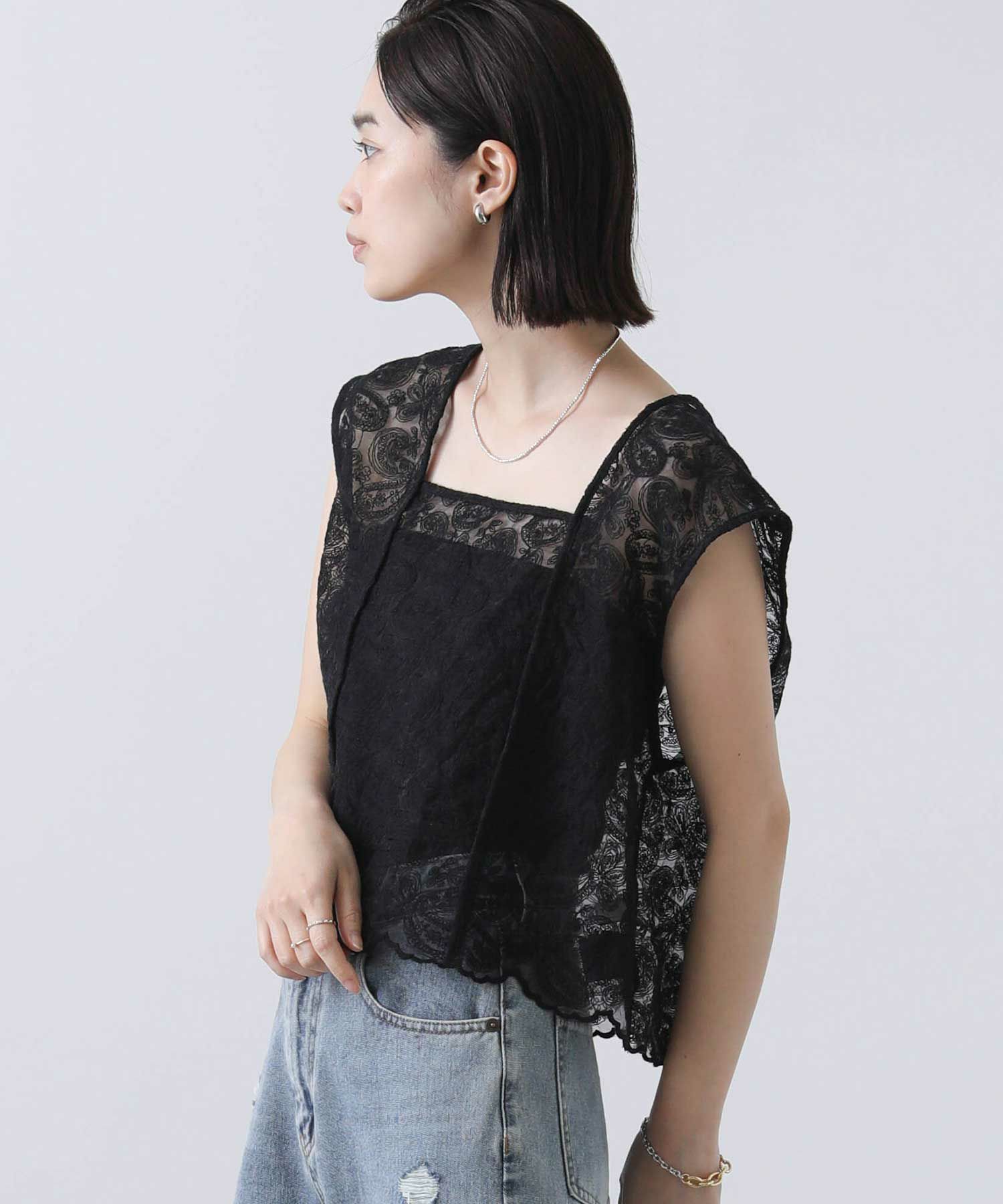カジュアルに着崩したい、フェミニンなレースブラウス。