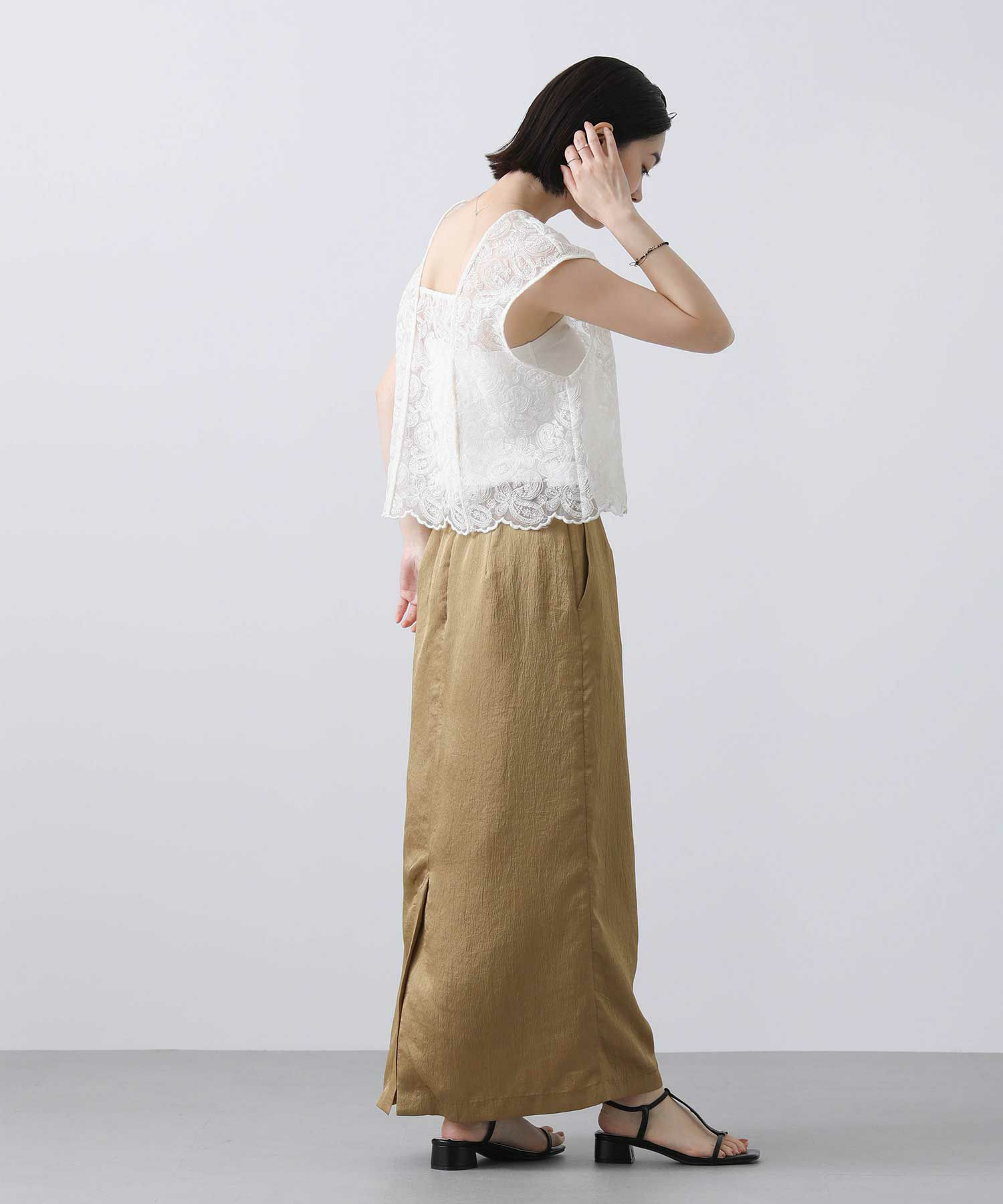 ※着用画像は撮影状況、光の当たり具合で色みが違って見える場合がございます。実際の色みについては、画像一覧の最後に掲載している詳細画像をご参照ください。