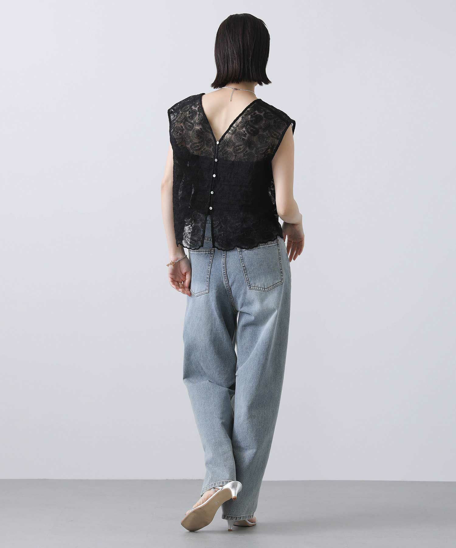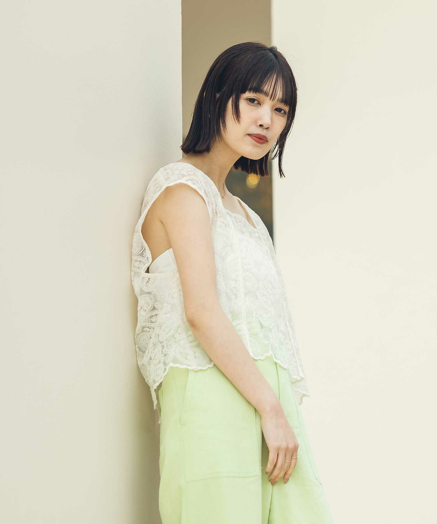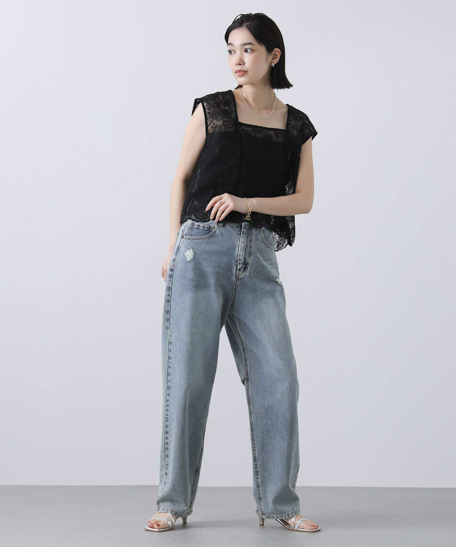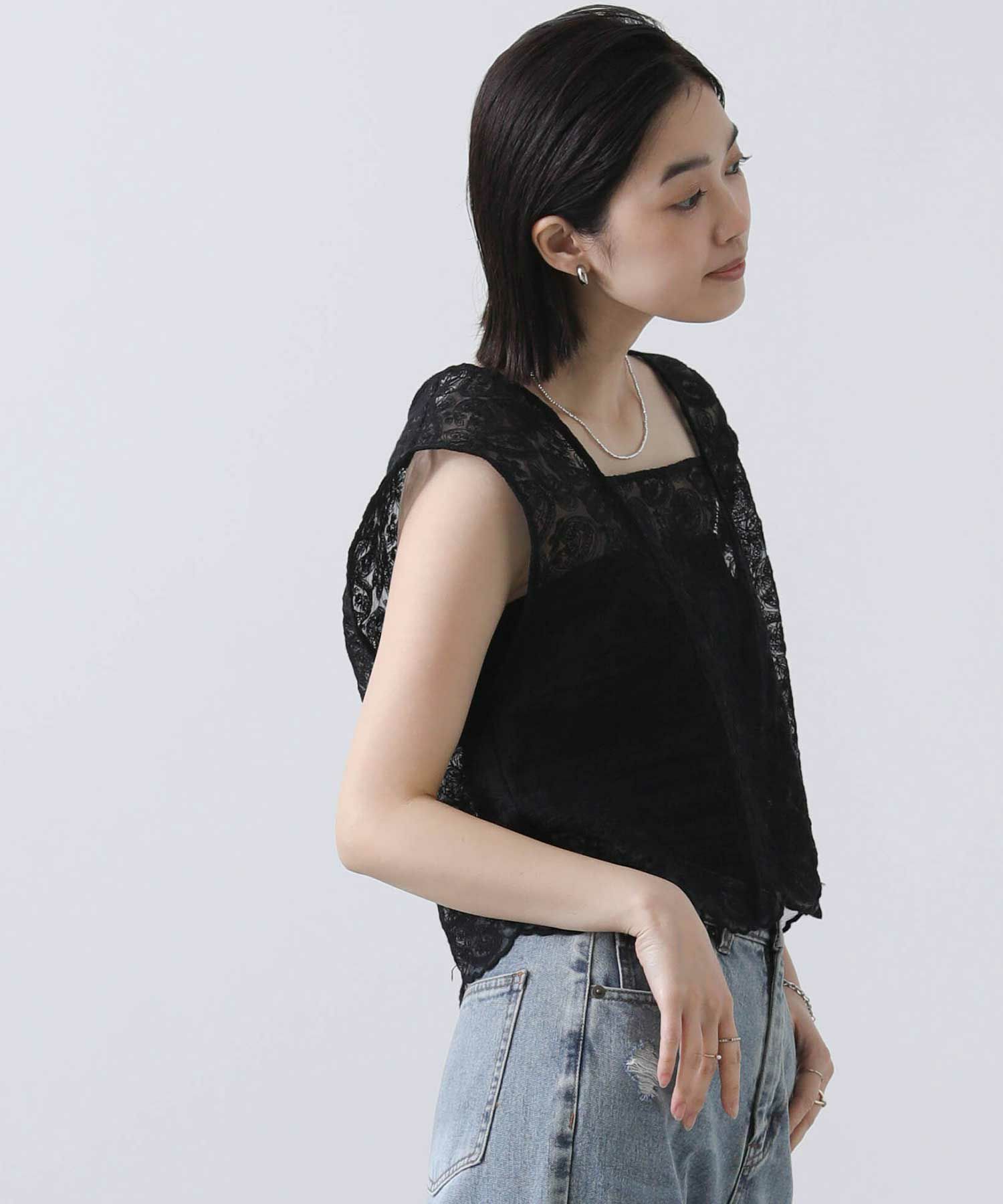 カジュアルに着崩したい、フェミニンなレースブラウス。