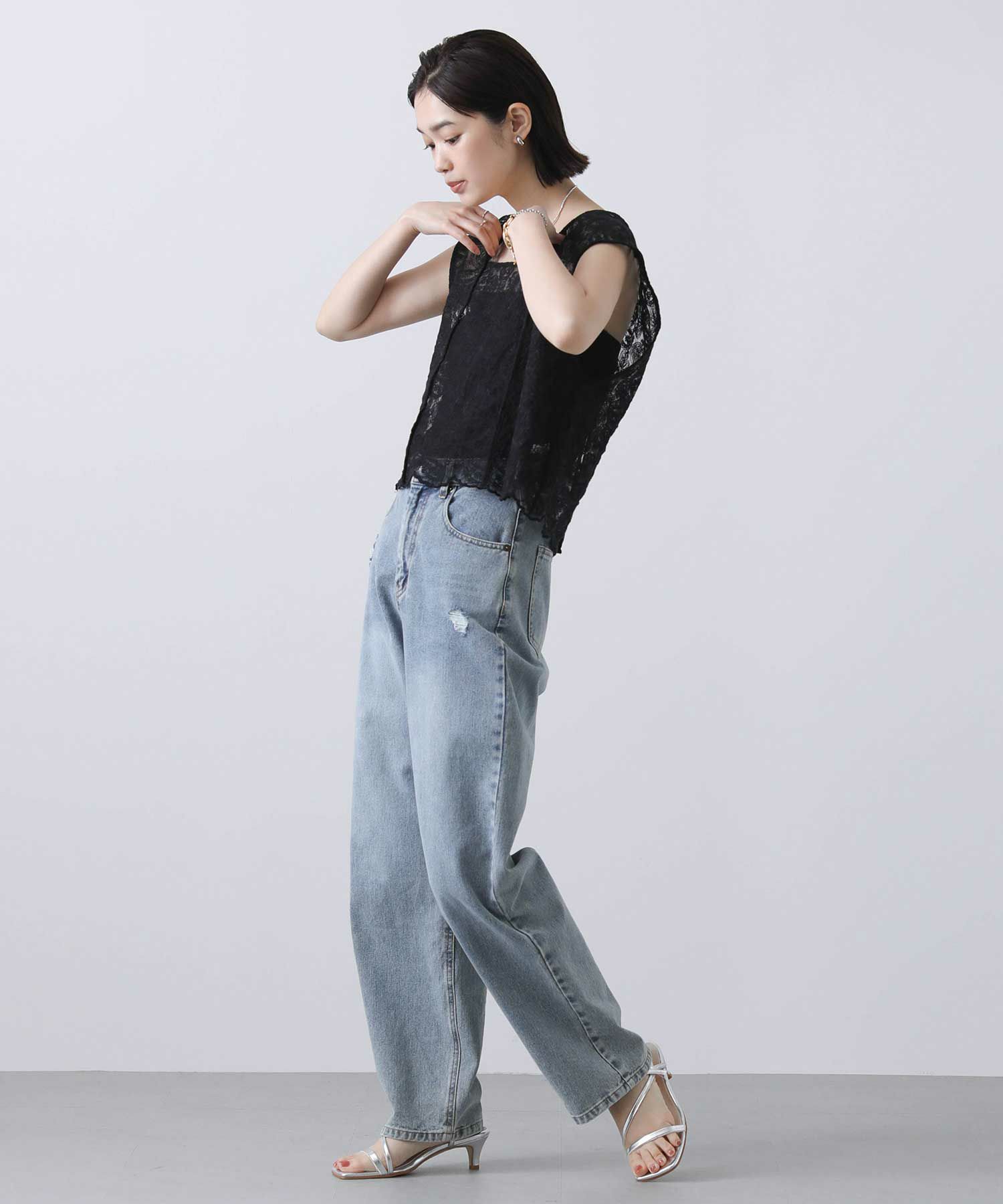 カジュアルに着崩したい、フェミニンなレースブラウス。