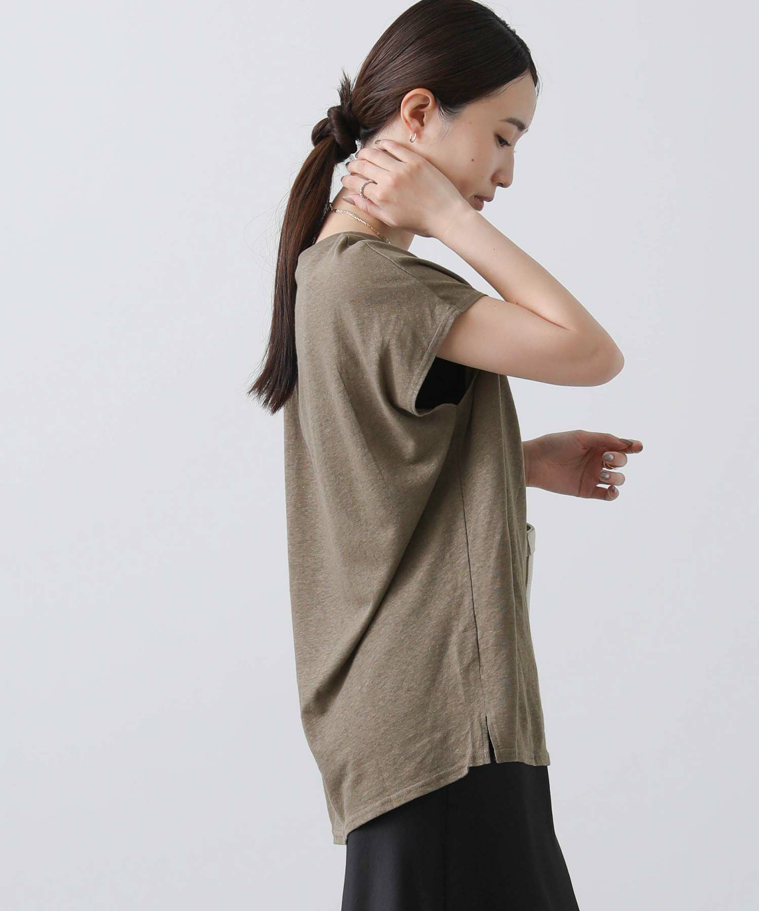 綿麻の肌当たりが柔らかで程よい透け感のあるカットソー。