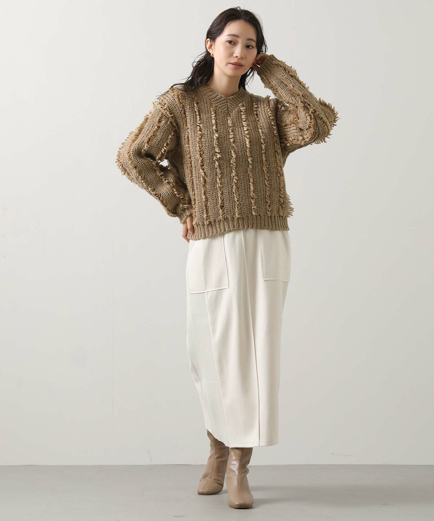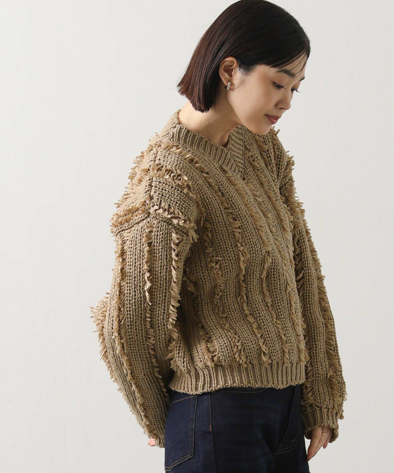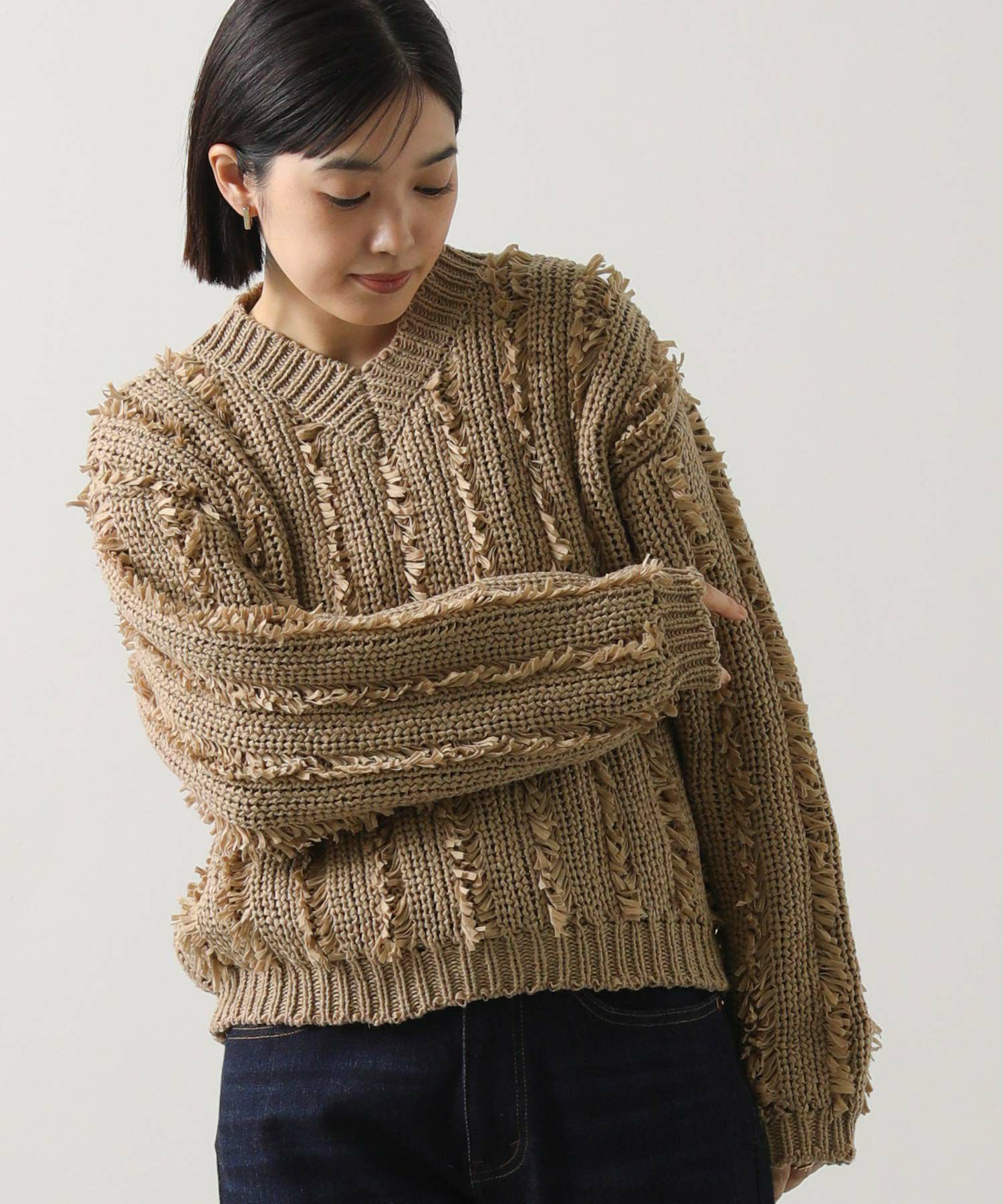 【Liyoca(リヨカ】から、独特なテープヤーンで編まれたフリンジニットプルオーバーをセレクト。