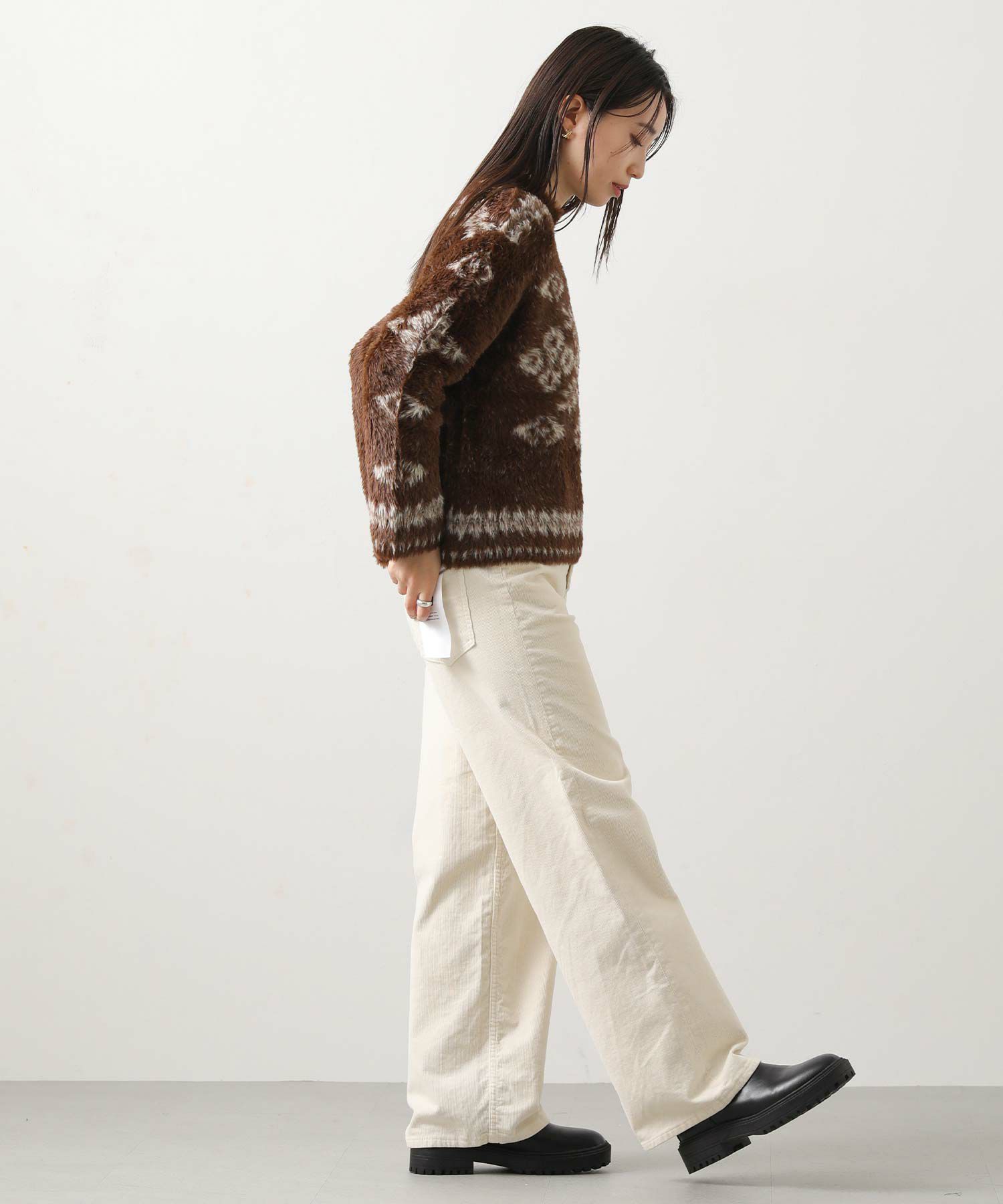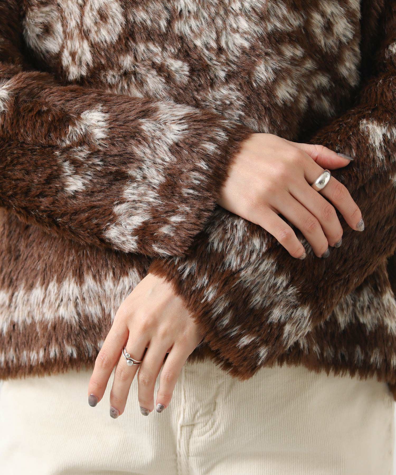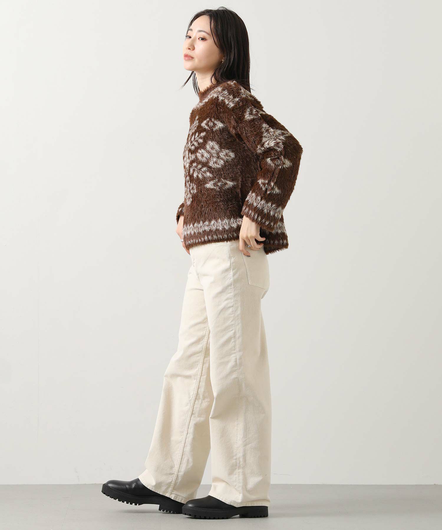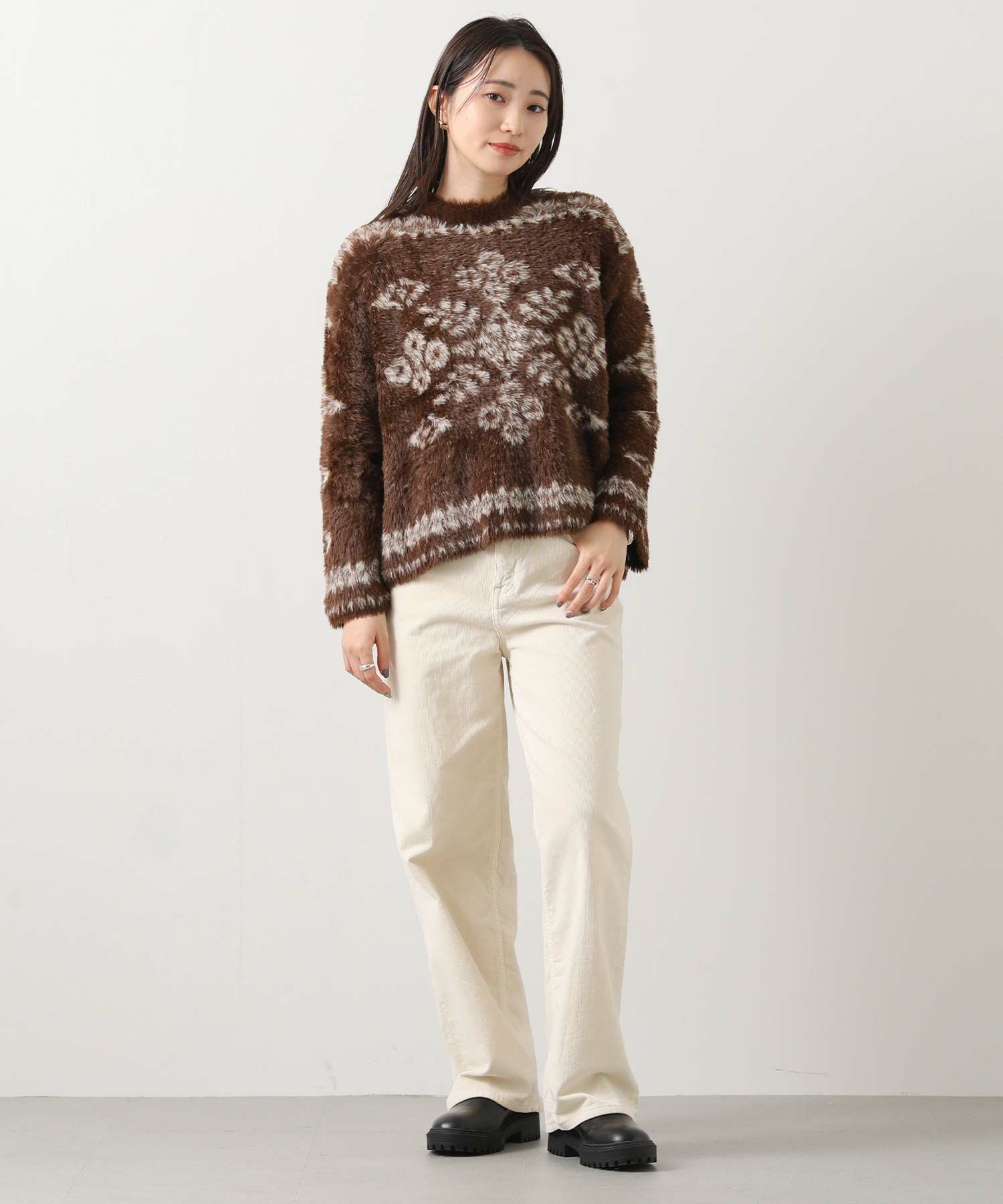 シャギーのふわっとした柔らかい糸で大胆なパネル柄を作りだした、冬の気分が上がる主役ニット。