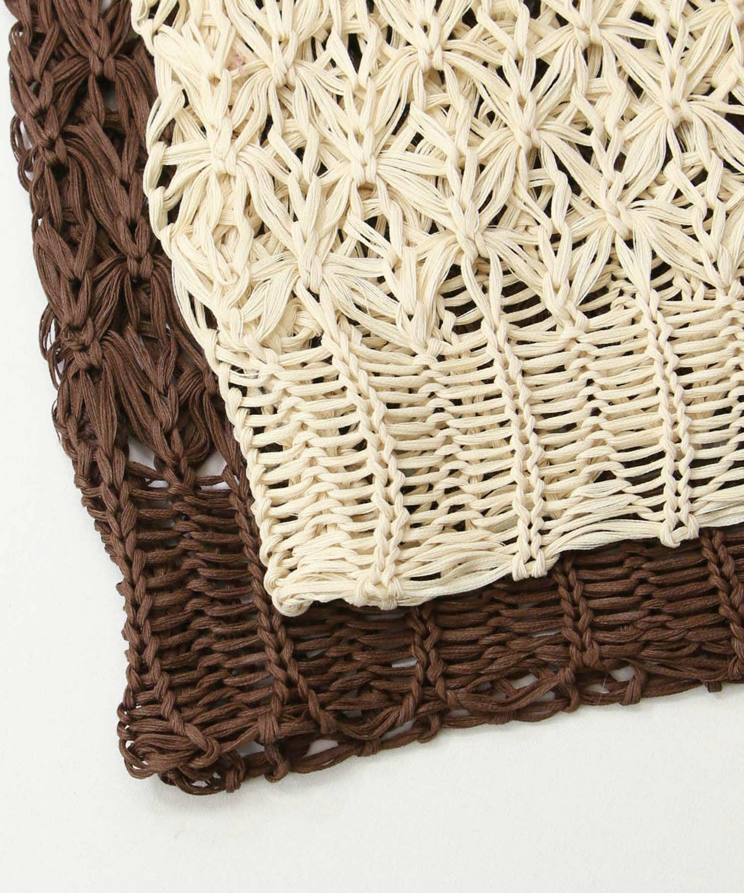 上質なギマ加工糸綿をざっくりと編み込んだ立体的な編み地が存在感を放ち、スタイリングに華やかさをプラス。